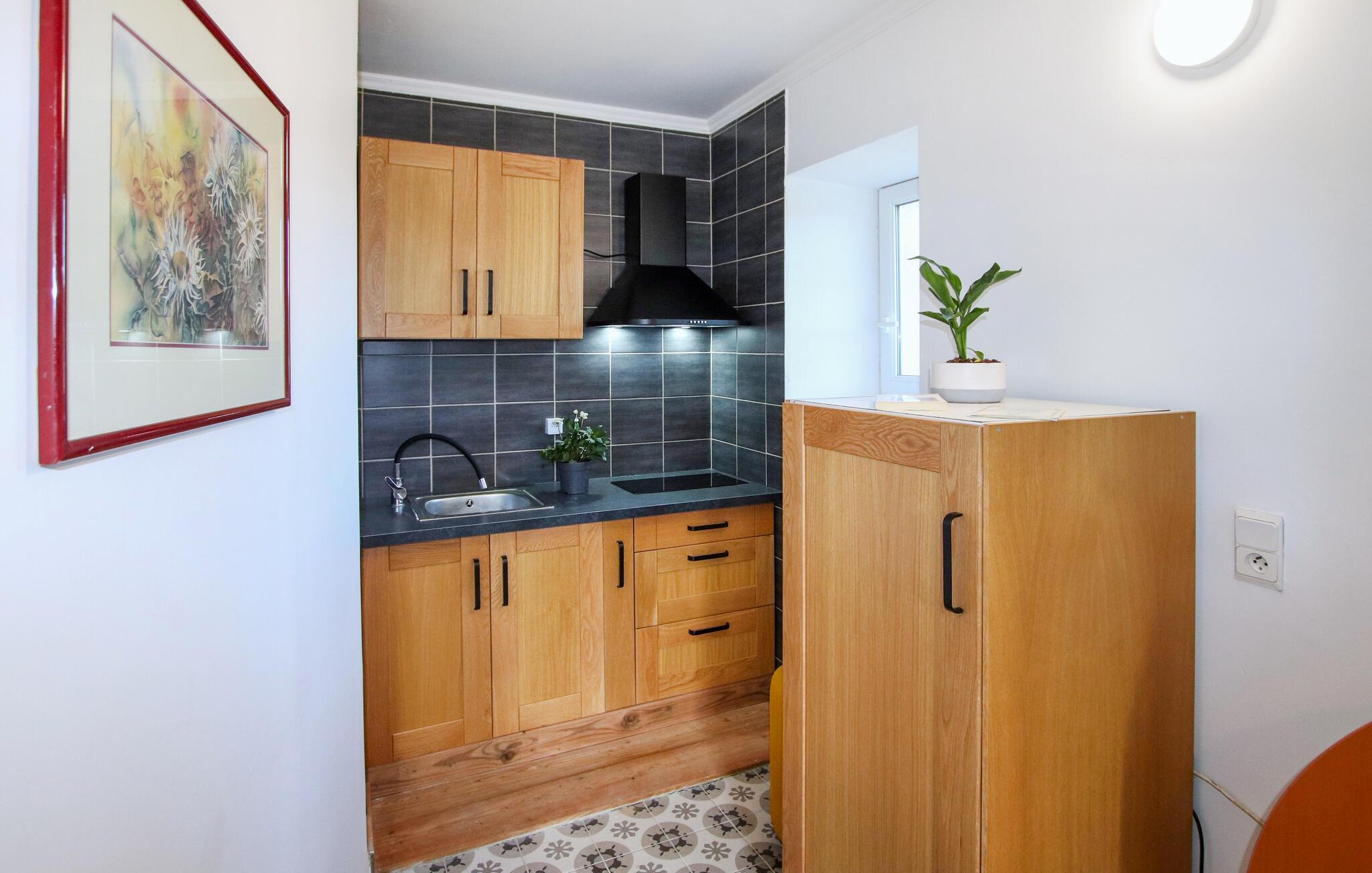 Der er lagt op til en vidunderlig ferie for den lille familie i denne kompakte feriebolig, der er indrettet i fine materialer, og som fremstår både hyggelig og komfortabel.