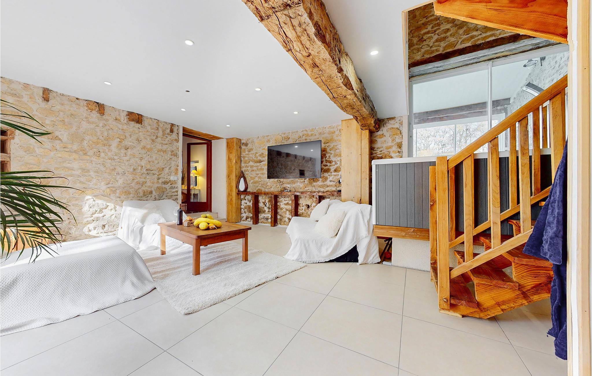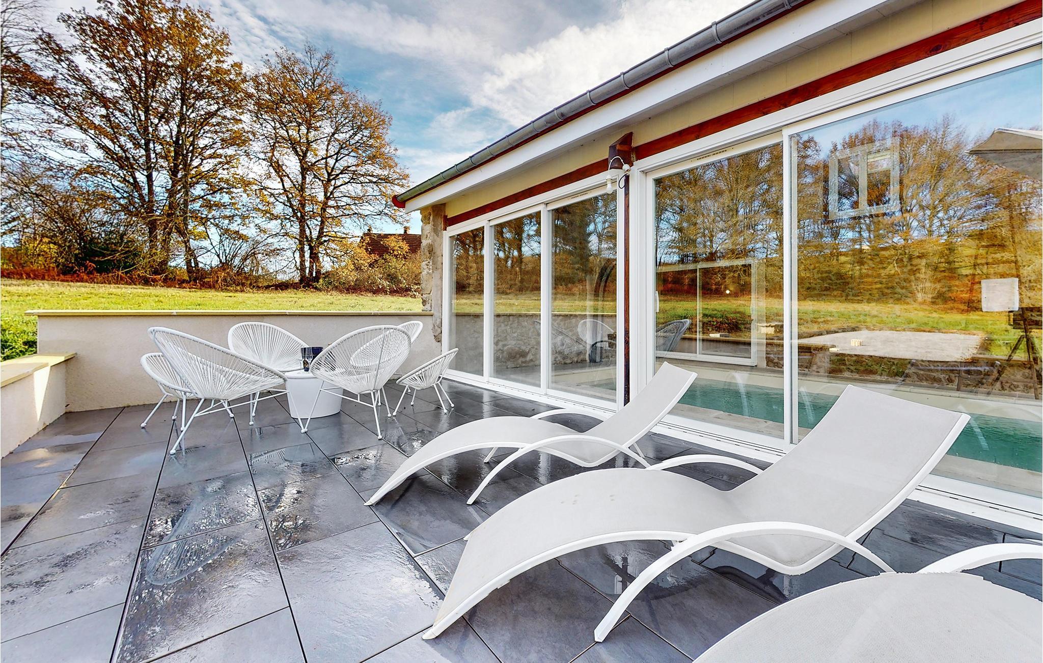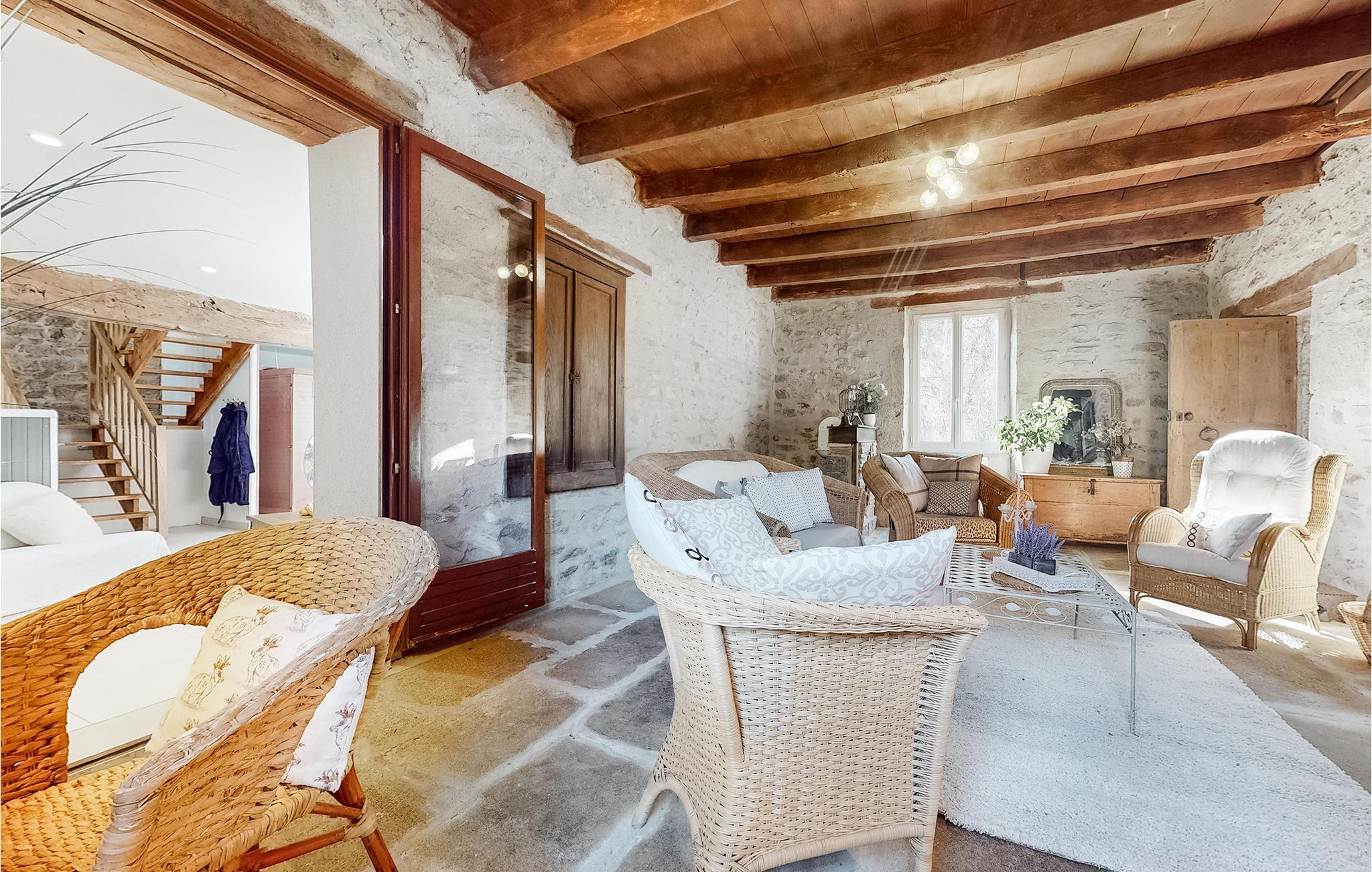 Ønsker I høj komfort og en særlig boligoplevelse? Er I en stor familie eller måske flere familier, der holder ferie sammen? Så er dette landsted med topfaciliteter nær en lille sø perfekt til jer. Beliggende i smukke landlige omgivelser, vil dette enorme hus i to etager med udendørs pool, indendørs pool, spabad og sauna give jer en vidunderlig ferie. Det rummelige hus er noget særligt med sine rustikke detaljer, herunder loftsbjælker i naturligt træ og synlige stenvægge, og samspillet mellem træ og hvidt giver huset et særligt præg. Amatørkokke kan trylle retter frem i det store køkken, mens andre finder det behageligt i en af ??stuerne. Solbad på terrassen, og på køligere dage kan I nyde den indendørs pool.