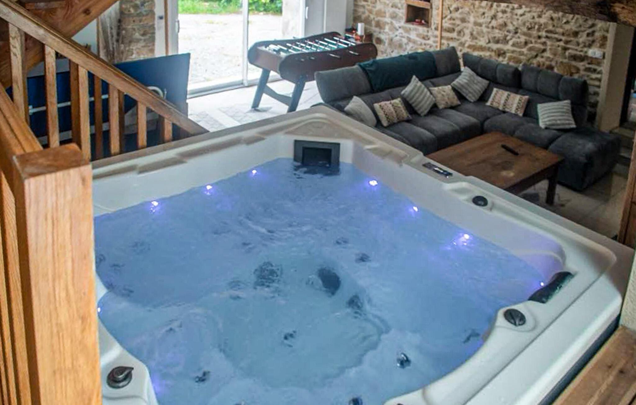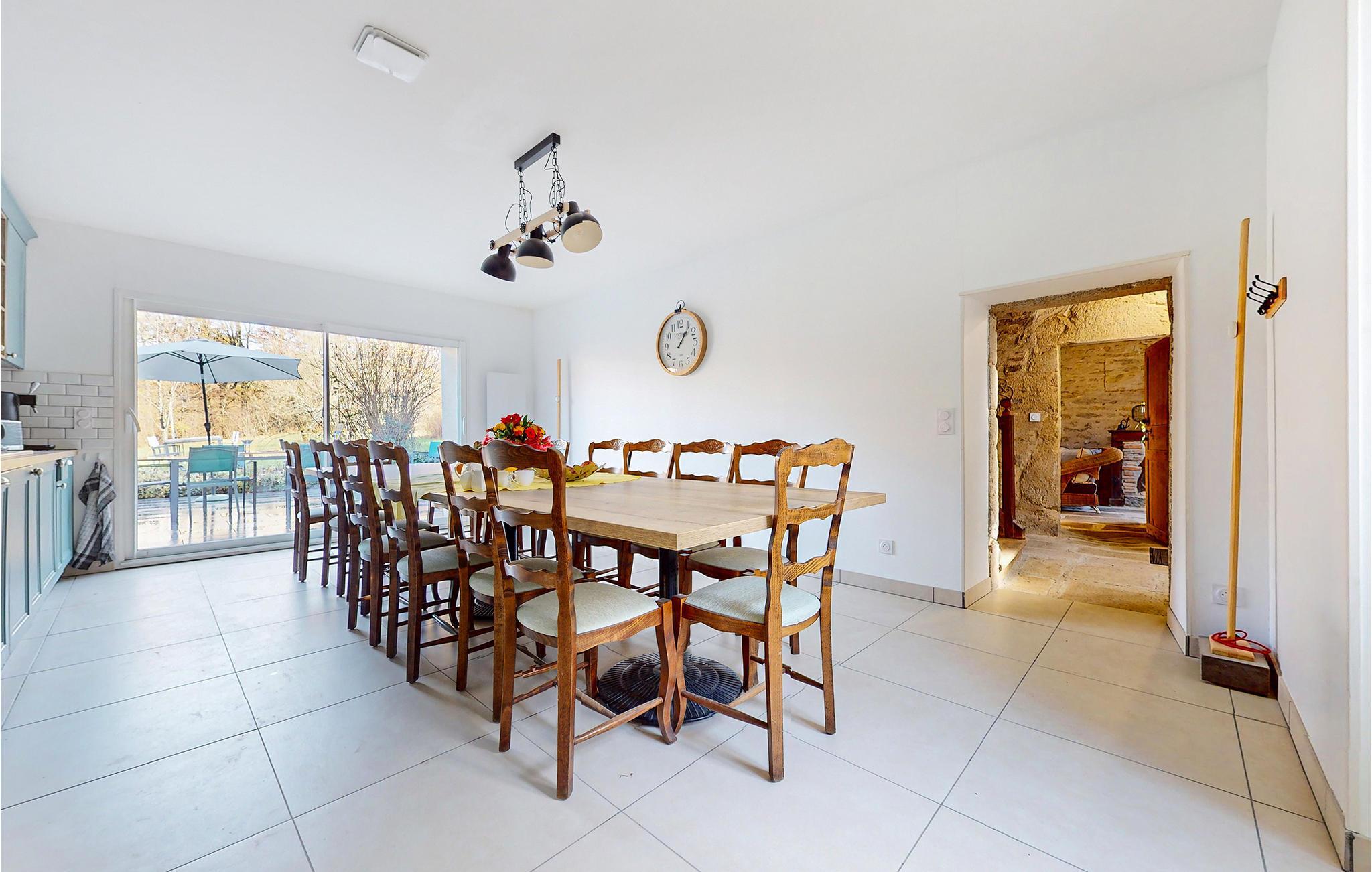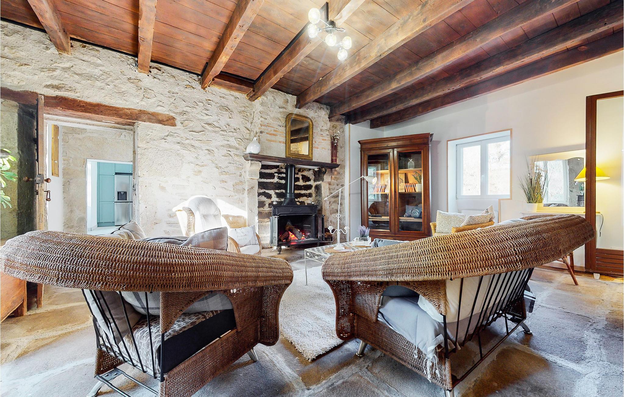 Ønsker I høj komfort og en særlig boligoplevelse? Er I en stor familie eller måske flere familier, der holder ferie sammen? Så er dette landsted med topfaciliteter nær en lille sø perfekt til jer. Beliggende i smukke landlige omgivelser, vil dette enorme hus i to etager med udendørs pool, indendørs pool, spabad og sauna give jer en vidunderlig ferie. Det rummelige hus er noget særligt med sine rustikke detaljer, herunder loftsbjælker i naturligt træ og synlige stenvægge, og samspillet mellem træ og hvidt giver huset et særligt præg. Amatørkokke kan trylle retter frem i det store køkken, mens andre finder det behageligt i en af ??stuerne. Solbad på terrassen, og på køligere dage kan I nyde den indendørs pool.