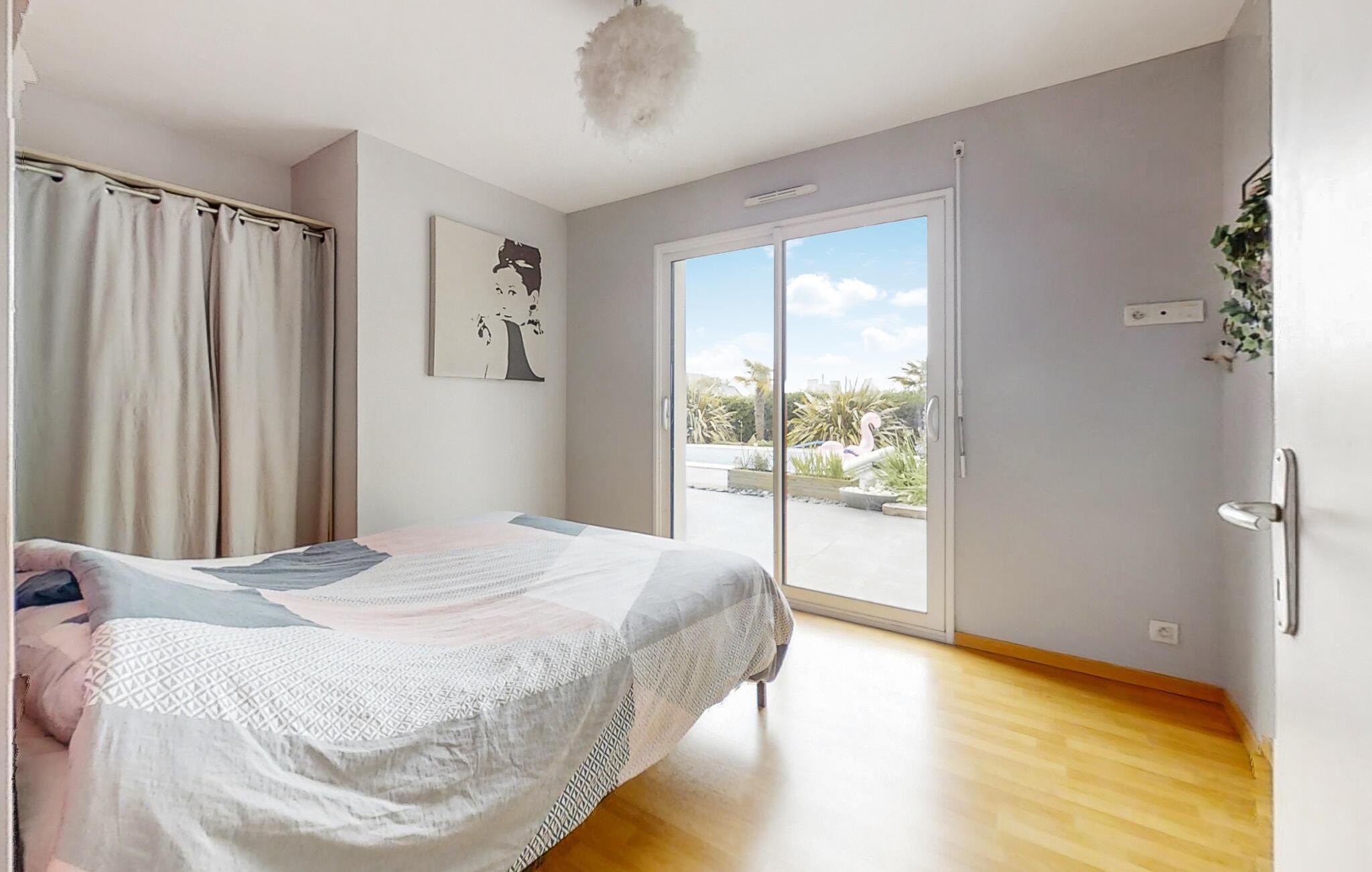 Glæd jer til en dejlig ferie i dette indbydende og veludstyrede feriehus. Her kan I se frem til nogle afslappende nætter i soveværelserne, som alle har direkte udgang til terrassen, og så kan I mødes til en fælles, lækker morgenmad i den åbne stue. I kan også gå ud på terrassen med jeres morgenkaffe og nyde solens første stråler. Og så kan I hoppe i poolen efter morgenmaden og slappe helt af i den indhegnede have.