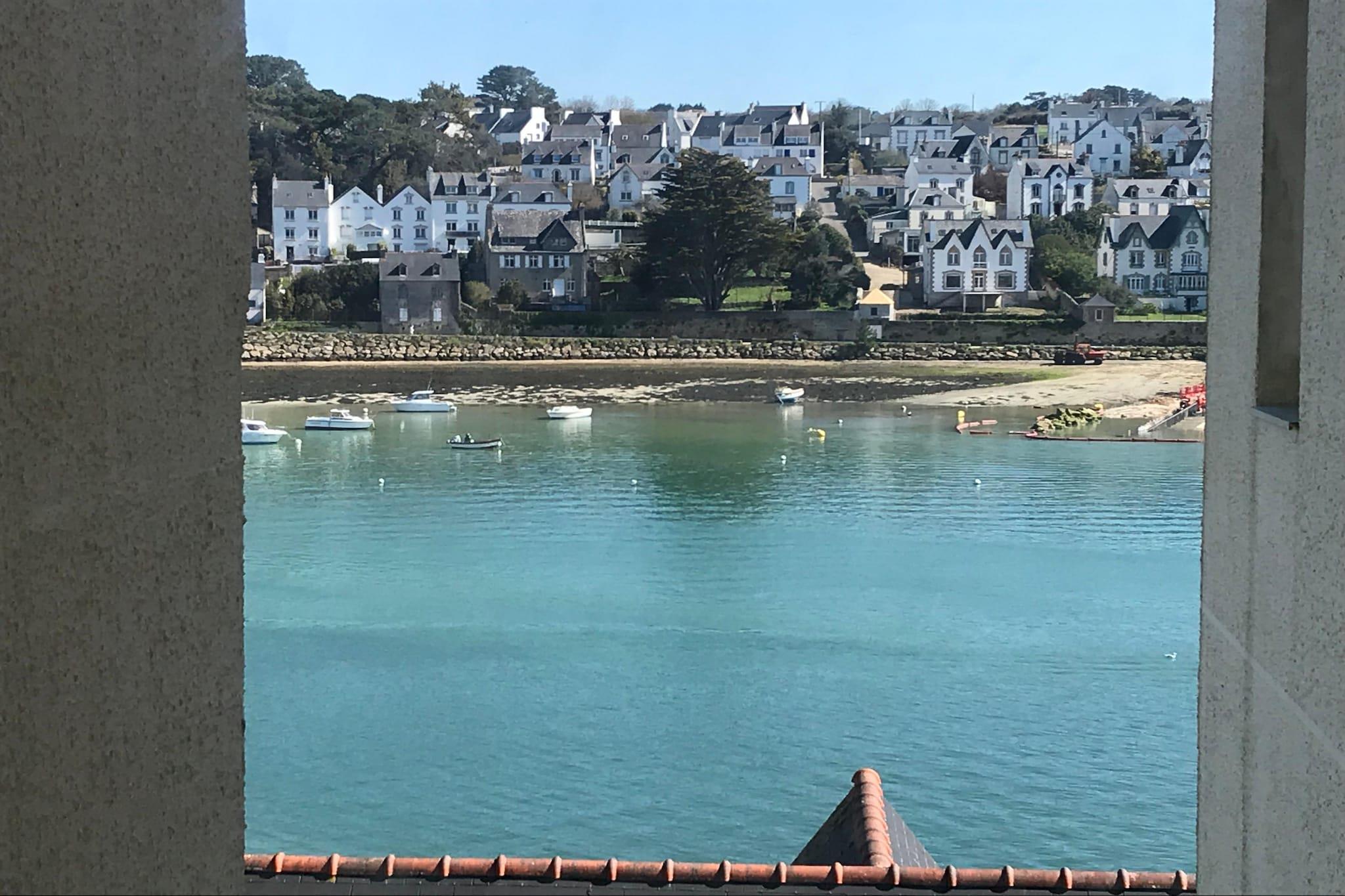 Denne lyse lejlighed, renoveret i 2023, er ideelt beliggende på 2. sal i en velholdt bolig, kun 200 m fra en lille sandbugt. Den tilbyder en storslået udsigt over havnemundingen og har to balkonterrasser: en på landsiden, hvor man kan nyde eftermiddagssolen, den anden på havsiden, hvor man kan beundre bådenes komme og gå samt tidevandets rytme. Indretningen omfatter en behagelig stue, to soveværelser, et veludstyret køkken og et moderne badeværelse. Der er privat parkeringsplads og cykelopbevaring. Fra boligen er der direkte adgang til havnepromenaden med caféer, crêperier og restauranter. Den store, berømte strand Audierne/Esquibien ligger kun få minutters gang derfra. Talrige vandrestier løber langs kysten til den spektakulære Pointe du Raz.