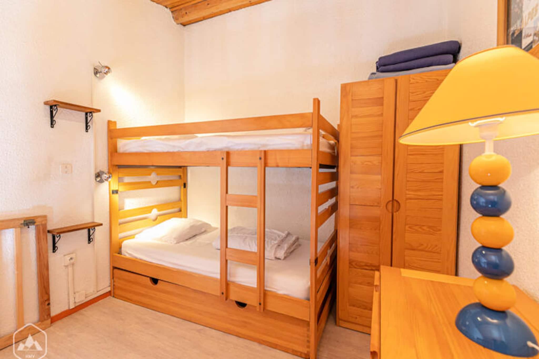 I den maleriske landsby Aussois, hvor charmen ved traditionel savoyard-arkitektur møder spændingen ved alpine eventyr, tilbyder denne hyggelige lejlighed i residensen 'Les Sétives' et indbydende tilflugtssted for din bjergferie. Med sin sydøstvendte balkon vågner du op til uhindret udsigt over de omkringliggende tinder, mens du soler dig i morgensolen, mens du planlægger din dag i hjertet af de franske alper. Residensen er bekvemt placeret kun 300 meter fra skilifterne, hvilket gør den til en ideel base for både vintersportsentusiaster og naturelskere. \n\nLejligheden, der er vurderet til 2**, er omhyggeligt designet til at rumme op til fire gæster. Stuen har en komfortabel dobbeltsofa, mens mezzaninen tilbyder en charmerende køjeseng, perfekt til familier eller små grupper. Køkkenet er udstyret med alt det nødvendige, herunder køleskab, elektrisk kogeplade og ovn, så du kan tilberede solide måltider efter en dag på pisterne. Et separat badeværelse med badekar og håndvask samt et separat toilet sikrer bekvemmelighed og privatliv under dit ophold. Yderligere faciliteter inkluderer et skirum og adgang til fælles parkering med en underjordisk parkeringsplads reserveret til din brug.\n\nTræd udenfor, og du vil befinder dig kun få øjeblikke fra lokale butikker, restauranter og den pulserende landsbyatmosfære. Om vinteren giver de nærliggende skilifte problemfri adgang til pisterne, mens sommeren forvandler området til et paradis for vandreture, cykling og udforskning af Maurienne-dalens naturlige skønhed. Uanset om du søger adrenalinpumpende eventyr eller fredelige øjeblikke omgivet af alpin ro, tilbyder denne lejlighed det perfekte udgangspunkt for uforglemmelige minder.\n\nMed sin blanding af komfort, bekvemmelighed og fantastiske omgivelser inviterer dette charmerende tilflugtssted dig til at opleve det bedste af Aussois i enhver sæson. Book dit ophold i dag, og lad magien i de franske alper fortrylle dig.