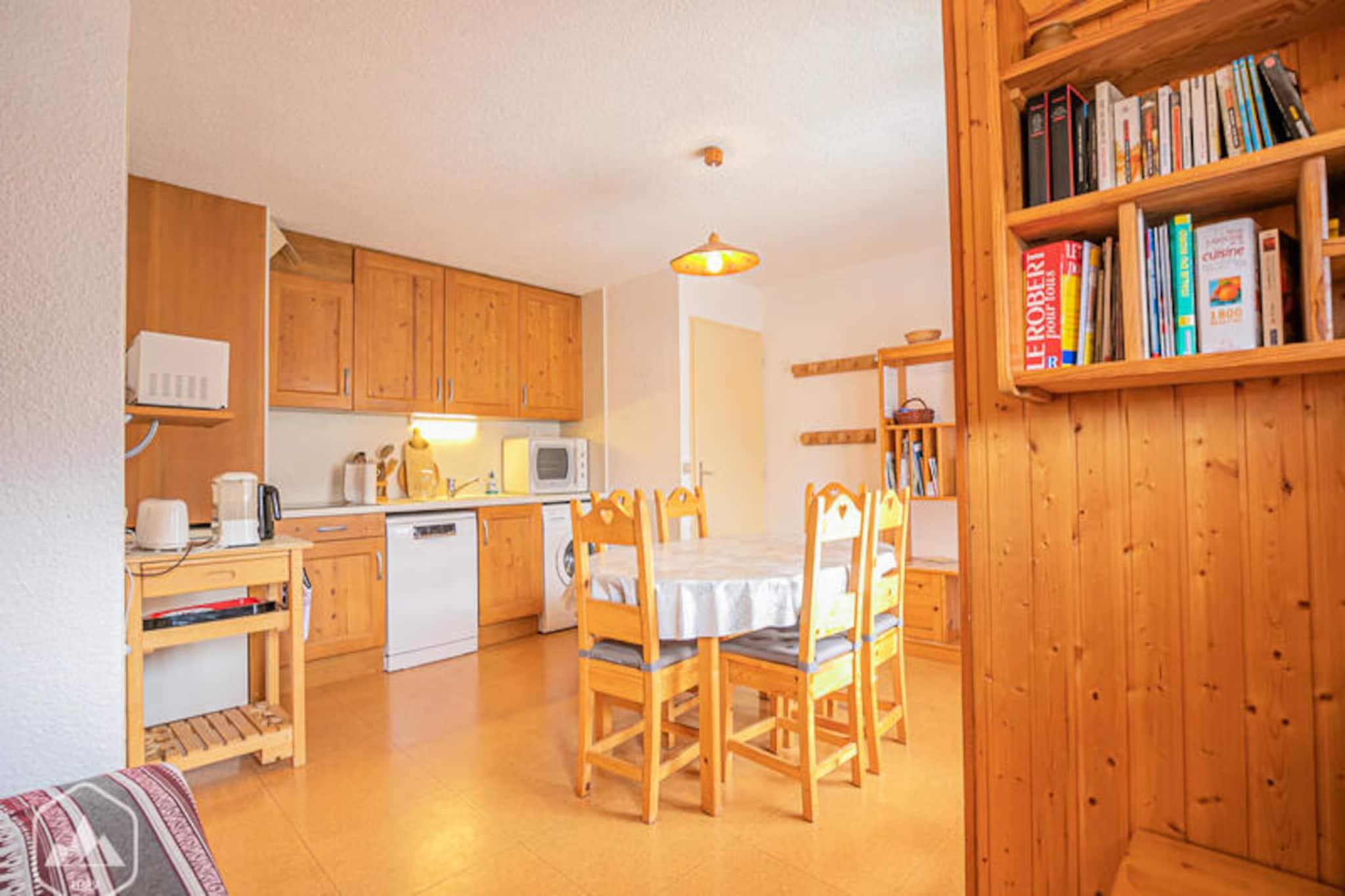 I hjertet af den charmerende landsby Aussois tilbyder denne dejlige lejlighed et varmt og indbydende tilflugtssted for dit alpine eventyr. Med sin sydvendte balkon vågner du op til den blide solglød og en malerisk udsigt over de snedækkede tinder. Med en perfekt beliggenhed på snefronten sikrer boligen ubesværet adgang til skilifter og pister, hvilket gør den til et ideelt valg for både vintersportsentusiaster og naturelskere. Uanset om du er her for at sno dig gennem pudrede stier eller blot nyde den fredfyldte bjergatmosfære, lover denne ejendom et uforglemmeligt ophold. \n\nLejligheden er designet til komfort og bekvemmelighed og har plads til op til seks gæster fordelt på sine omhyggeligt indrettede rum. Soveværelset har en hyggelig dobbeltseng, mens stuen tilbyder en udtrækssovesofa og et soveområde med køjesenge, ideelt til familier eller små grupper. Det veludstyrede køkken inkluderer moderne apparater såsom køleskab, ovn, mikrobølgeovn og opvaskemaskine, hvilket sikrer, at du har alt, hvad du behøver for at tilberede solide måltider efter en dag med eventyr. Yderligere faciliteter som Wi-Fi, et tv og et skiskab bidrager til dit opholds bekvemmelighed og nydelse. \n\nTræd udenfor, og du vil blive fordybet i Aussois pulserende landsbyliv. Butikker, restauranter og essentielle faciliteter ligger kun en kort gåtur væk, mens de nærliggende pister og stier indbyder til udforskning. Om sommeren forvandles regionen til et paradis for vandrere og cyklister med betagende udsigter og frisk alpeluft. Uanset om du søger spændende nedkørsler eller rolige vandreture, tilbyder Aussois den perfekte kulisse for din ferie. \n\nDenne lejlighed er mere end bare et sted at bo - den er en port til skønheden og eventyret i de franske alper. Skab varige minder i denne hyggelige og velbeliggende bolig, hvor hvert øjeblik er indrammet af de majestætiske bjerge.