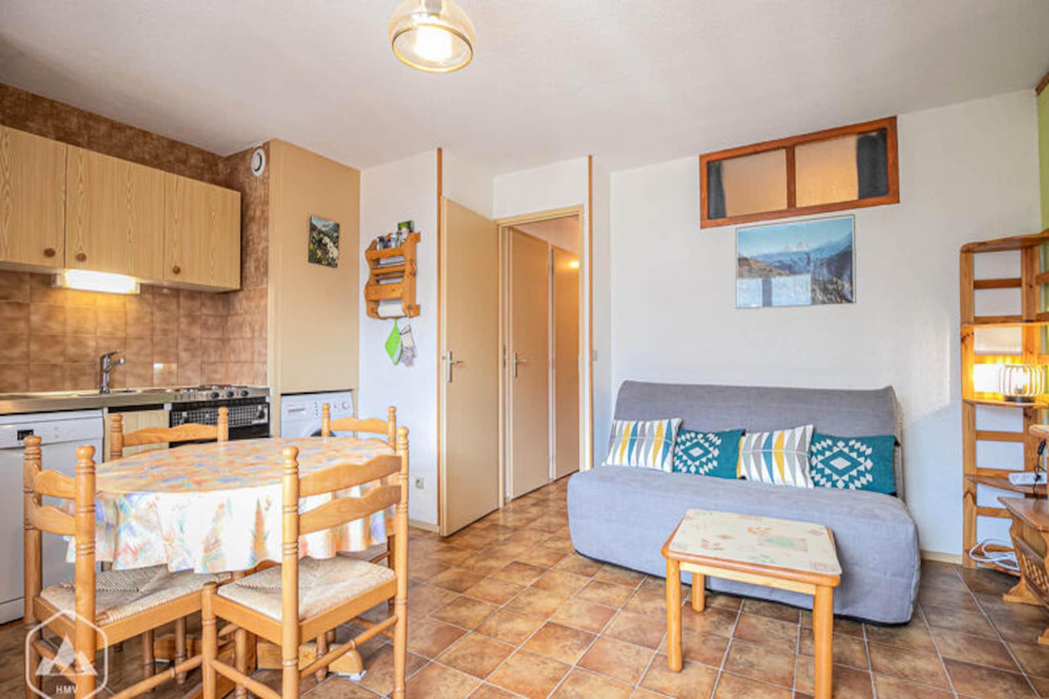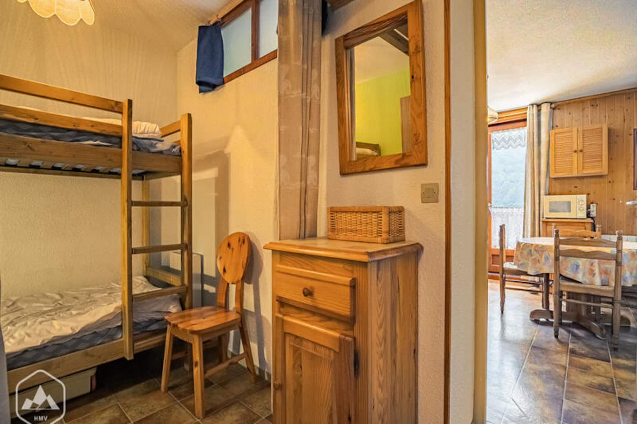 I hjertet af den charmerende landsby Aussois tilbyder denne hyggelige studiohytte en dejlig flugt for dem, der søger den perfekte blanding af alpint eventyr og rolig afslapning. Med sin sydvendte balkon kan gæsterne nyde den betagende udsigt over de snedækkede tinder, mens de nyder den friske bjergluft. Boligen er ideelt beliggende på snefronten, hvilket sikrer ubesværet adgang til skilifternes afgange og nærliggende butikker, hvilket gør den til et bekvemt valg for både vintersportsentusiaster og dem, der ønsker at udforske den lokale kultur og faciliteter. \n\nDette gennemtænkt designede studio er på 30 m² og har komfortabel plads til op til fire gæster. Stuen har en dobbelt sovesofa, mens sovealkoven er udstyret med en køjeseng, hvilket giver en hyggelig, men funktionel indretning. Lejligheden er udstyret med moderne bekvemmeligheder, herunder køleskab, elektrisk komfur, ovn, mikrobølgeovn, vaskemaskine, opvaskemaskine og tv, hvilket sikrer et behageligt ophold. Der er også et skiskab til opbevaring af udstyr efter en dag på pisterne. Badeværelset har badekar og håndvask, med et separat toilet for ekstra bekvemmelighed. Bemærk venligst, at kæledyr ikke er tilladt, og at dette er en ikke-ryger lejlighed.\n\nBeliggende i den maleriske Saint-Sébastien-residens, vil gæsterne sætte pris på de fælles parkeringsfaciliteter og den åbne garage i parkeringskælderen. Landsbykortet placerer residensen på C3, hvilket giver nem adgang til lokale attraktioner og faciliteter. Uanset om du er her for at grave dig gennem uberørt sne eller udforske de charmerende gader i Aussois, er denne ejendom den perfekte base for uforglemmelige alpine minder.\n\nMed sin førsteklasses beliggenhed, hyggelige atmosfære og veludstyrede faciliteter inviterer denne studiohytte dig til at opleve magien i de franske alper i enhver sæson. Fra spændende skidage til rolige aftener på balkonen er denne residens din port til Aussois' vidundere.