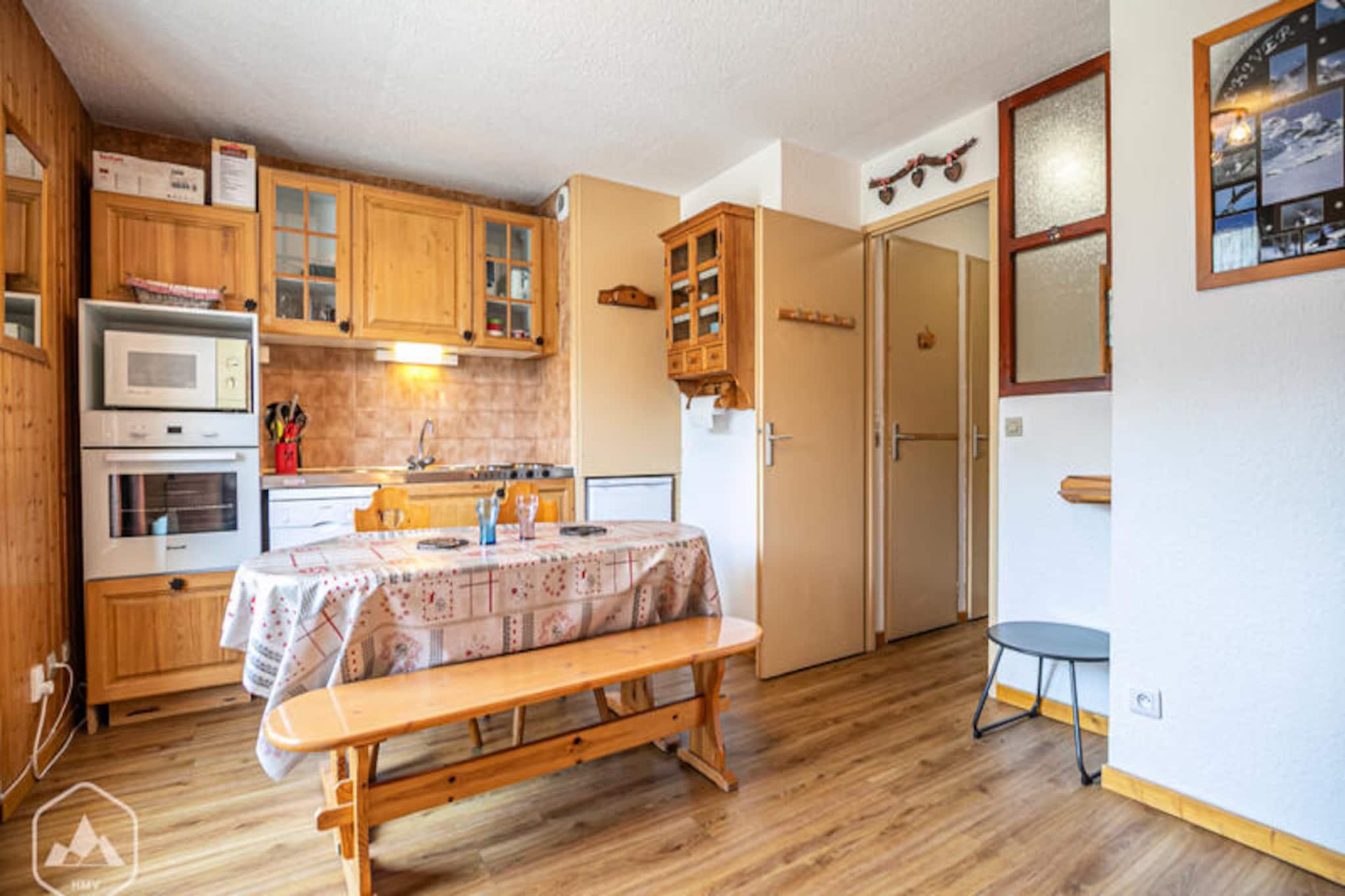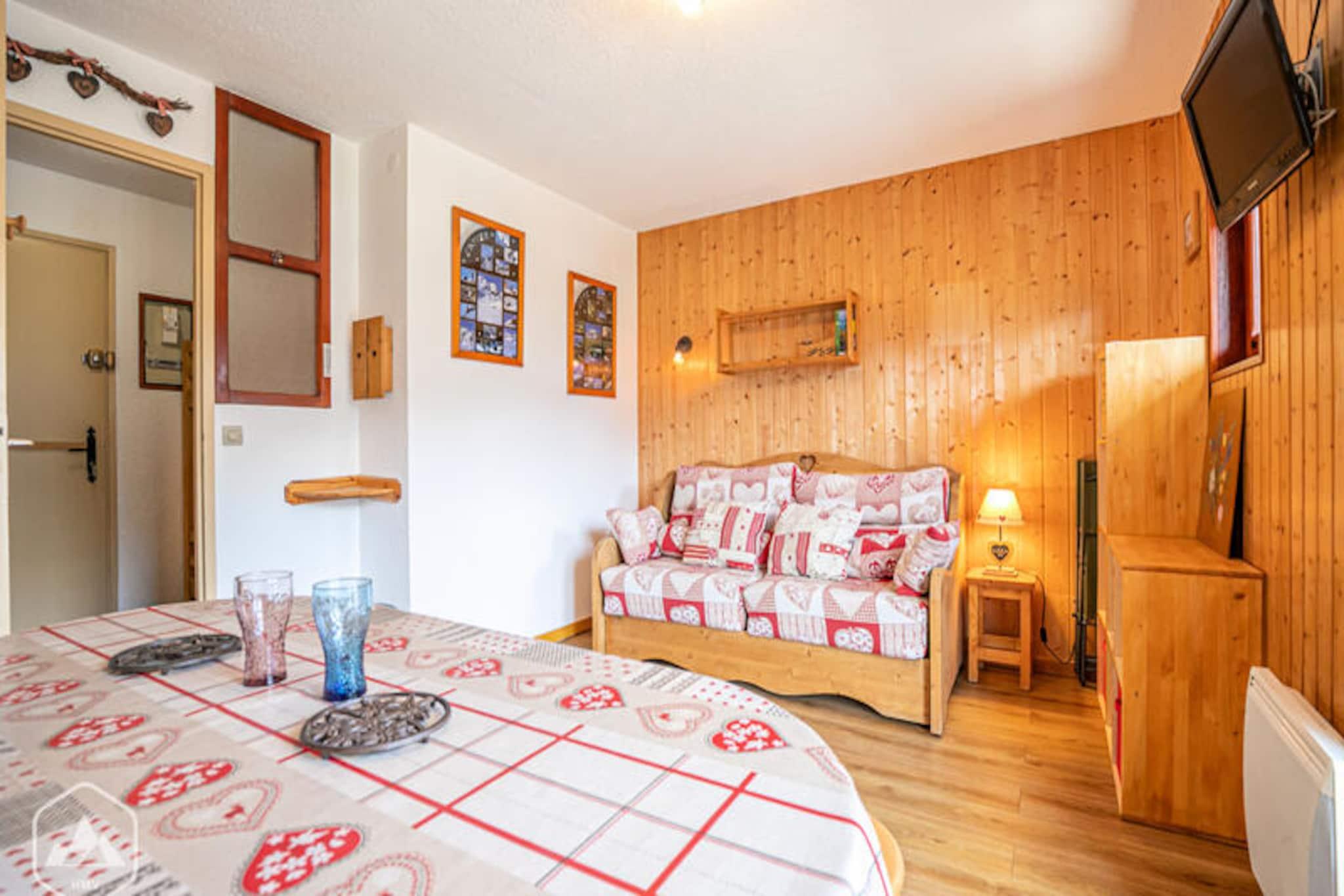 I den charmerende landsby Aussois, hvor de majestætiske tinder af de franske alper rejser sig mod horisonten, tilbyder denne hyggelige studiohytte et indbydende tilflugtssted for rejsende, der søger både eventyr og afslapning. Beliggende på snefronten i 'Saint-Sébastien'-residensen, kan denne lejlighed i stueetagen prale af en sydvendt balkon, der bader rummet i naturligt lys og giver en fredfyldt udsigt over den omkringliggende alpine skønhed. Uanset om du planlægger en vinterferie eller en sommerferie, placerer denne ejendom dig i hjertet af det hele. \n\nDet kompakte, men gennemtænkte design, 24 m² store studio har komfortabel plads til op til tre gæster. Stuen har en dobbelt sovesofa, mens entréområdet har en enkeltseng, hvilket gør det ideelt for par eller små familier. Det veludstyrede køkken inkluderer køleskab, elektrisk kogeplade, ovn, mikrobølgeovn og opvaskemaskine, så du har alt, hvad du behøver for at tilberede måltider efter en dag med udforskning. Lejligheden har også et tv, et skiskab til dit udstyr og et badeværelse med badekar og separat toilet for ekstra bekvemmelighed. Sengelinned og håndklæder er tilgængelige efter reservation, så du kan rejse let og fokusere på at nyde dit ophold.\n\nBeliggende kun få skridt fra skilifternes afgange og lokale butikker, tilbyder boligen uovertruffen bekvemmelighed for friluftsentusiaster. Om vinteren giver den snedækkede beliggenhed direkte adgang til uberørte pister, mens sommeren inviterer dig til at udforske naturskønne vandrestier og betagende udsigter. Der er fælles parkering foran boligen, hvilket gør det nemt at komme og gå, som du vil.\n\nUanset om du er her for at grave dig gennem puddersne, vandre gennem alpine enge eller blot nyde den rolige bjergatmosfære, lover denne studiohytte i Aussois et mindeværdigt ophold. Med sin uovertrufne beliggenhed og hyggelige faciliteter er det den perfekte base for dit næste alpine eventyr.