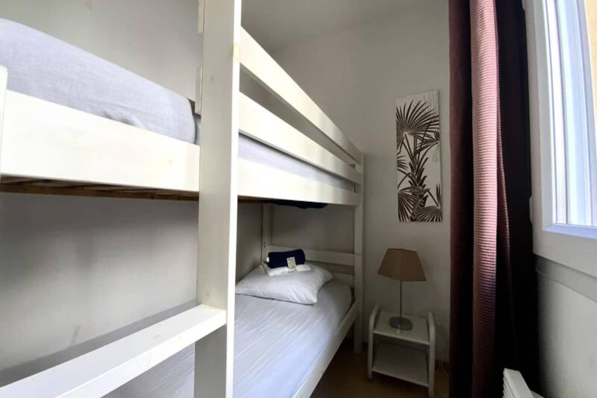I den fredfyldte Upper Orb-dal, hvor Cévennes-bjergene møder Haut-Languedoc Regional Naturpark, tilbyder denne charmerende bolig en rolig oase kun 10 minutters gang fra den berømte Avène Thermal Spa. Omgivet af frodige landskaber og maleriske stier er det et sted at genoprette forbindelsen med naturen og nyde den foryngende atmosfære i denne unikke region. Uanset om du søger et fredeligt tilflugtssted eller et aktivt eventyr, lover denne ejendom en uforglemmelig oplevelse. Lejligheden, der ligger på første sal, er omhyggeligt designet til komfort og bekvemmelighed. Den har en rummelig åben opholdsstue med et fuldt udstyret køkken, spiseplads og en hyggelig sovesofa. Gå ud på den udendørs terrasse for at nyde din morgenkaffe midt i den friske bjergluft. To soveværelser tilbyder fleksible sovearrangementer, herunder to enkeltsenge og en køjeseng, perfekt til familier eller grupper. Moderne faciliteter som gratis Wi-Fi, et tv og en vaskemaskine sikrer et problemfrit ophold. Gæsterne kan også drage fordel af gratis sengetøj, håndklæder og adgang til en stor fælles parkeringsplads. I sommermånederne kan du slappe af ved residensens swimmingpool, der er åben dagligt fra juni til september. Det omkringliggende område er et paradis for friluftsentusiaster med utallige vandrestier, cykelruter og betagende landskaber. Udforsk de nærliggende kløfter Héric og Colombières-sur-Orb, den fortryllende landsby Olargues eller de majestætiske Monts d'Orb. For dem, der elsker kulturelle udflugter, er autentiske landsbyer og vinmarker kun en kort køretur væk. Uanset om du er her for en spabehandling eller en weekendtur, tilbyder denne residens den perfekte blanding af afslapning og udforskning. Lad Haut-Languedocs skønhed inspirere dit næste ferieeventyr.