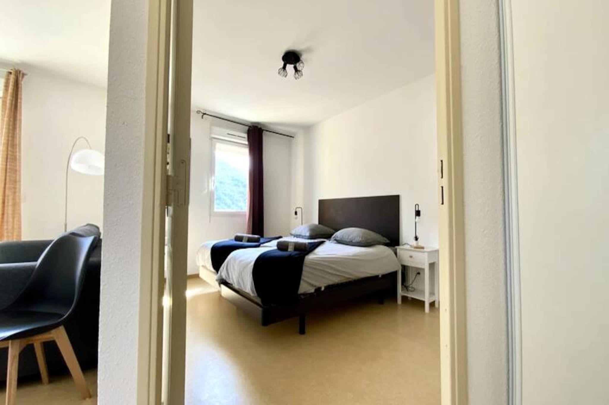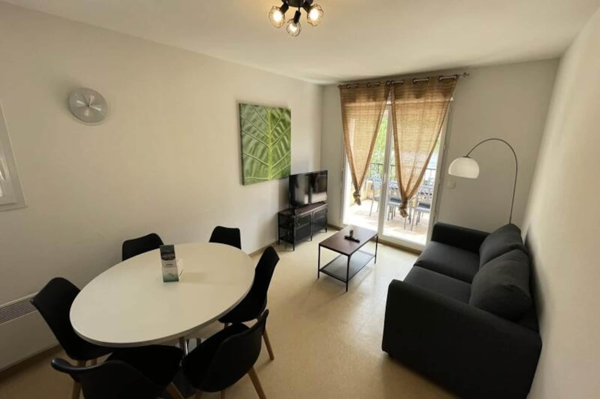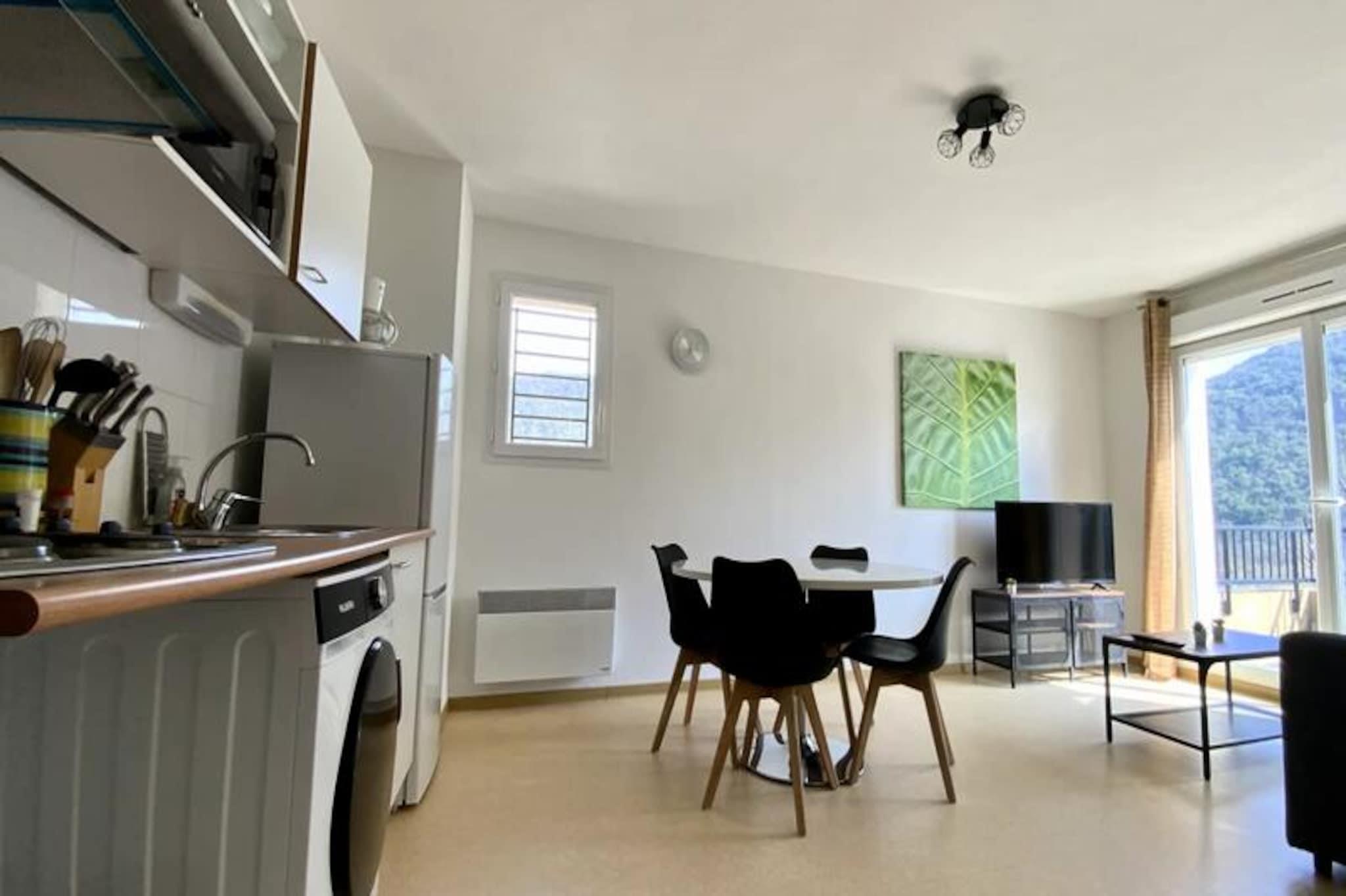 I hjertet af Haut-Languedoc Regional Naturpark, hvor Cévennes-bjergene rejser sig majestætisk, ligger et fredfyldt tilflugtssted, perfekt for dem, der søger ro og foryngelse. Kun 10 minutters gang fra den berømte Avène Thermal Spa og dens helbredende kilder tilbyder denne charmerende bolig en idyllisk tilflugtssted omgivet af frodigt grønt og betagende landskaber. Uanset om du er her for en spabehandling eller en naturfyldt ferie, lover omgivelserne at berolige både krop og sjæl. Lejligheden på anden sal er omhyggeligt designet til komfort og bekvemmelighed. Den rummelige åbne opholdsstue har et fuldt udstyret køkken med moderne apparater, en spiseplads og en hyggelig sovesofa, alt sammen badet i naturligt lys. Gå ud på terrassen for at nyde din morgenkaffe midt i den friske bjergluft. Lejligheden har også et badeværelse med badekar, et soveværelse med en køjeseng og et andet soveværelse med to enkeltsenge, der kan sættes sammen, hvilket sikrer fleksibilitet for familier eller grupper. Vigtige faciliteter såsom Wi-Fi, sengelinned, håndklæder og en fælles parkeringsplads er til rådighed for et problemfrit ophold. I sommermånederne kan gæsterne slappe af ved den udendørs swimmingpool, der er åben dagligt fra juni til september. Det omkringliggende område er et paradis for friluftsentusiaster. Udforsk utallige vandrestier, cykl gennem naturskønne grønne stier, eller tag en afslappet gåtur rundt om Avène-søen for at beundre de fantastiske Monts d'Orb. Oplev de nærliggende Héric- og Colombières-sur-Orb-kløfter, den maleriske landsby Olargues og de dramatiske bjerge Caroux og Espinouse. For et kulturelt præg kan du besøge den charmerende cirkulære landsby Avène eller tage til Lodève, kun 20 minutter væk i bil. Med Montpellier og Béziers lufthavne inden for rækkevidde er denne bolig den perfekte base for at udforske Sydfrankrigs skatte. Uanset om du søger eventyr, afslapning eller en blanding af begge dele, tilbyder denne bolig en uforglemmelig oplevelse i hjertet af naturen.