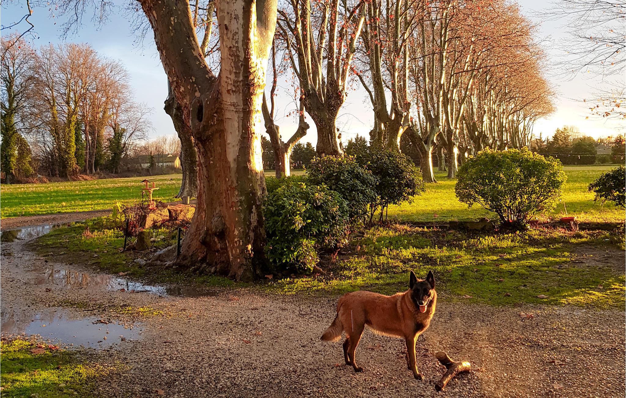 Træd udenfor og gå gennem det private område, der er reserveret helt til jer, og nyd de store træer, der giver behagelig skygge. Bemærk, at en lille bæk grænser op til ejendommen.