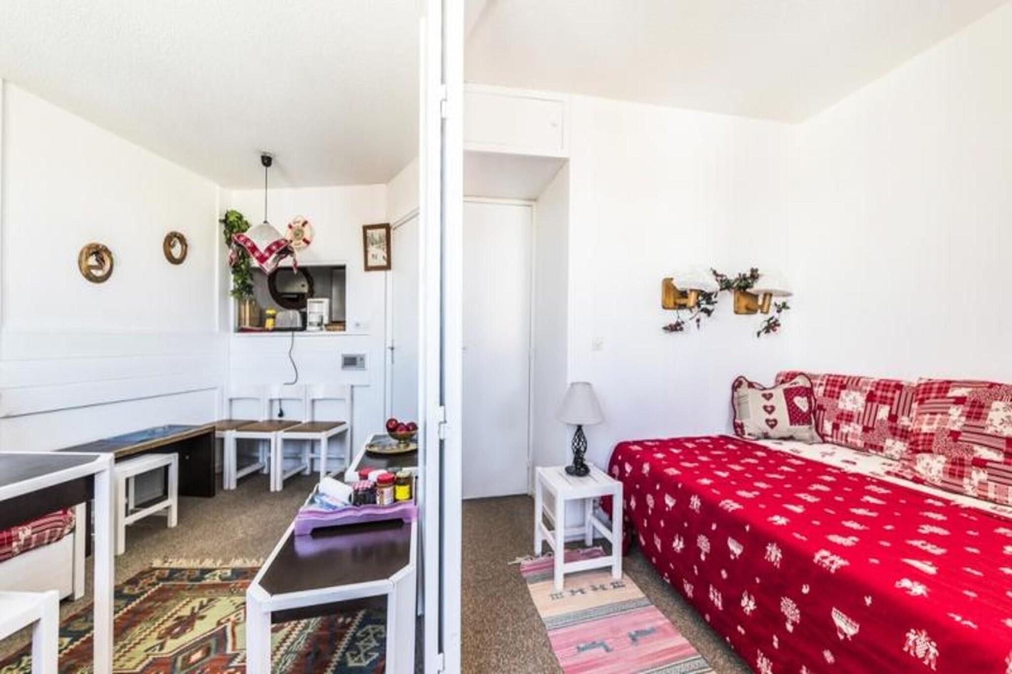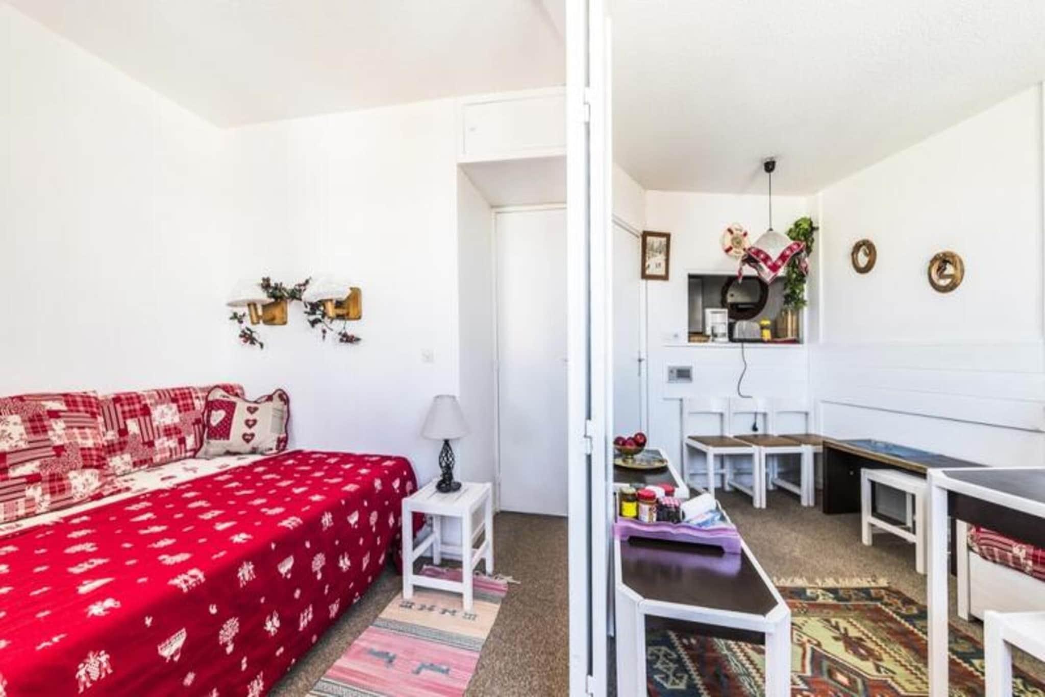 Beliggende i hjertet af feriestedet, er denne charmerende bygning med træfront ideelt placeret i nærheden af ??børnelandsbyen, der tilbyder nem adgang til alle butikker og underholdning. Boligen er perfekt for familier, med feriestedets hovedattraktioner kun få skridt væk. I nærheden kan gæsterne nyde en række aktiviteter, herunder en sø med rekreative muligheder, en golfbane og et wellness-center til afslapning. Børneklubben, "Le Village des Enfants d'Annie Famose," tilbyder betalte aktiviteter og en hytte på 1000 m² med legeområder, et projektionsrum og en restaurant. Indkvarteringen består af et enkelt ophold med et soveværelse, et åbent tekøkken, en stue med to sovesofaer (plus en ekstra udtræksseng) og et badeværelse med badekar og separat toilet. Opholdsområdet omfatter et spisebord med stole og er udstyret med moderne bekvemmeligheder såsom to tv'er, et Hi-Fi-system og en dvd-afspiller. Balkonen, med en smuk udsigt over feriestedets centrum, er møbleret med bord og liggestole. Gæster vil sætte pris på boligens bekvemme beliggenhed med ski ved dine fødder og nem adgang til elevatorer. Yderligere tjenester omfatter et skiskab, elevator og overdækket parkering (afhængig af tilgængelighed). Kæledyr er tilladt mod et ekstra gebyr.