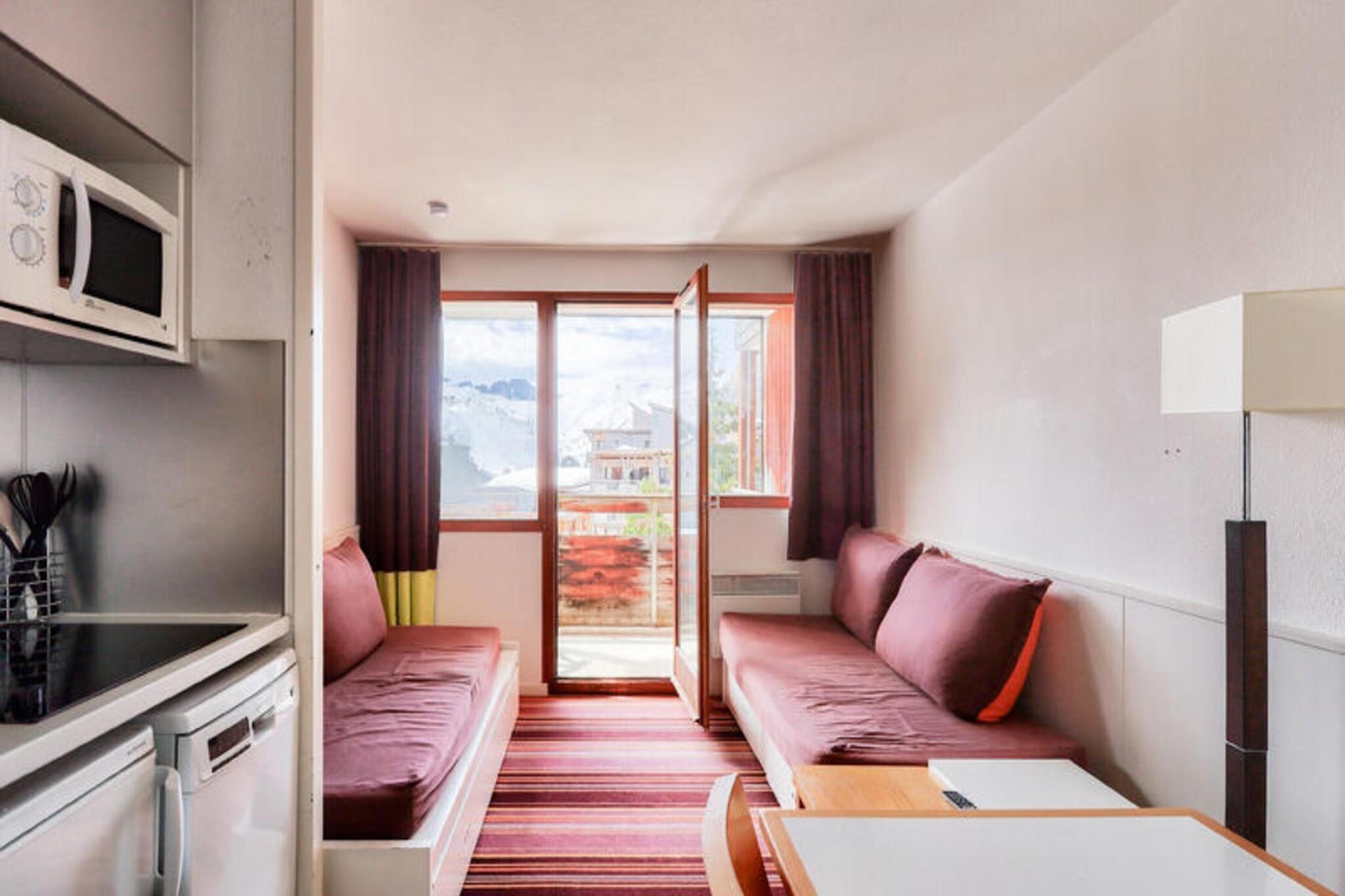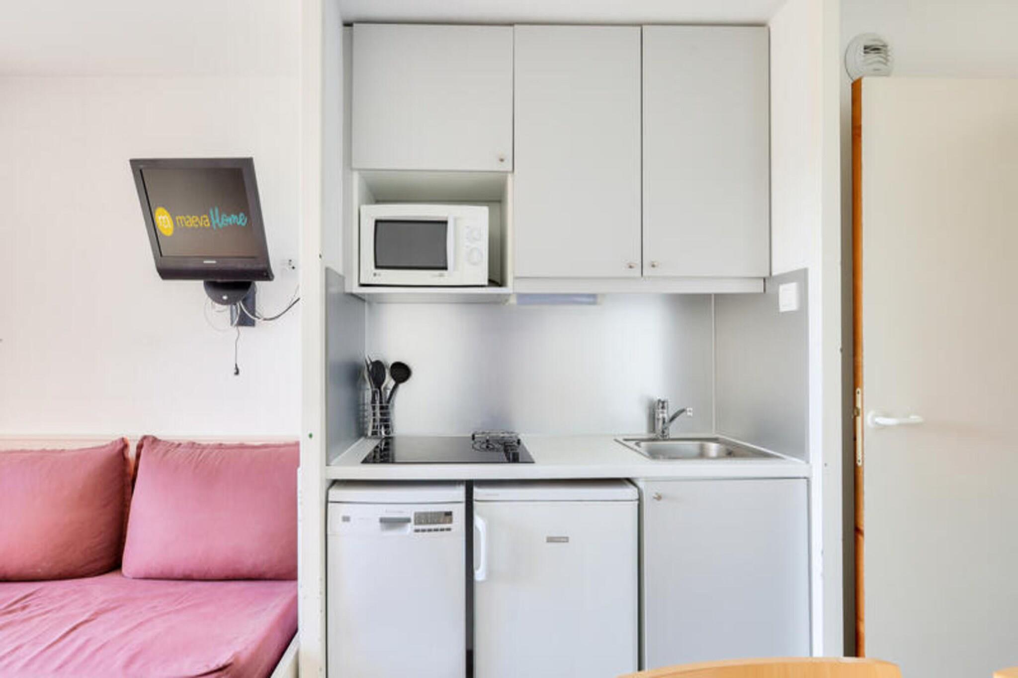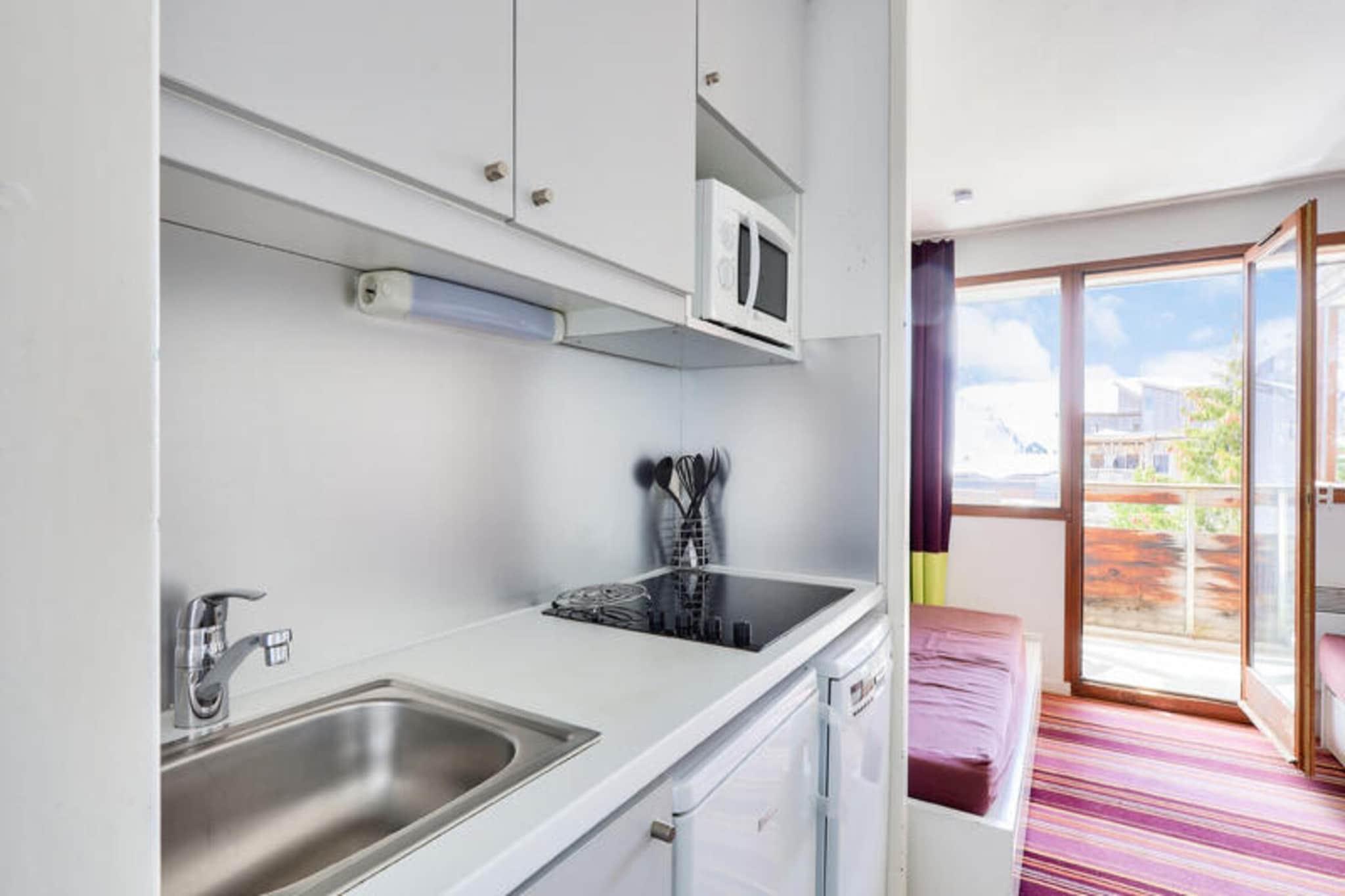 Dette 22 m² store ski-in-studie, beliggende på 6. etage i Malinka-bygningen i Falaise-distriktet, tilbyder komfortabel indkvartering til en skiferie. Studiet indeholder en stue, kabineområde med køjesenge, et fuldt udstyret køkken, et badeværelse, et separat toilet og en møbleret østvendt balkon med panoramaudsigt over Morzine-dalen. Boligen er ideelt beliggende inden for 100 meter fra pisterne, butikkerne og aktiviteterne i Avoriaz, hvilket gør det til en fremragende base for en bjergferie. Gæsterne kan nyde nem adgang til skiløb og resortfaciliteter, med overdækket parkering tilgængelig i nærheden mod et gebyr. Boligen byder også på panoramaudsigt over landsbyen med en balkon, hvor du kan slappe af efter en dag på ski. Den nærliggende Deep Nature Spa by Algotherm på den førsteklasses L'Amara-residens tilbyder et wellness-retræte, kun 200 meter fra overnatningsstedet, mod et tillægsgebyr. Studiet har et veludstyret køkken med vigtige apparater til at tilberede måltider, herunder køleskab og komfur. Det private badeværelse er i god stand, og toilettet er adskilt for ekstra bekvemmelighed. Sengelinned leveres, med mulighed for daglig skift af sengetøj mod et gebyr.