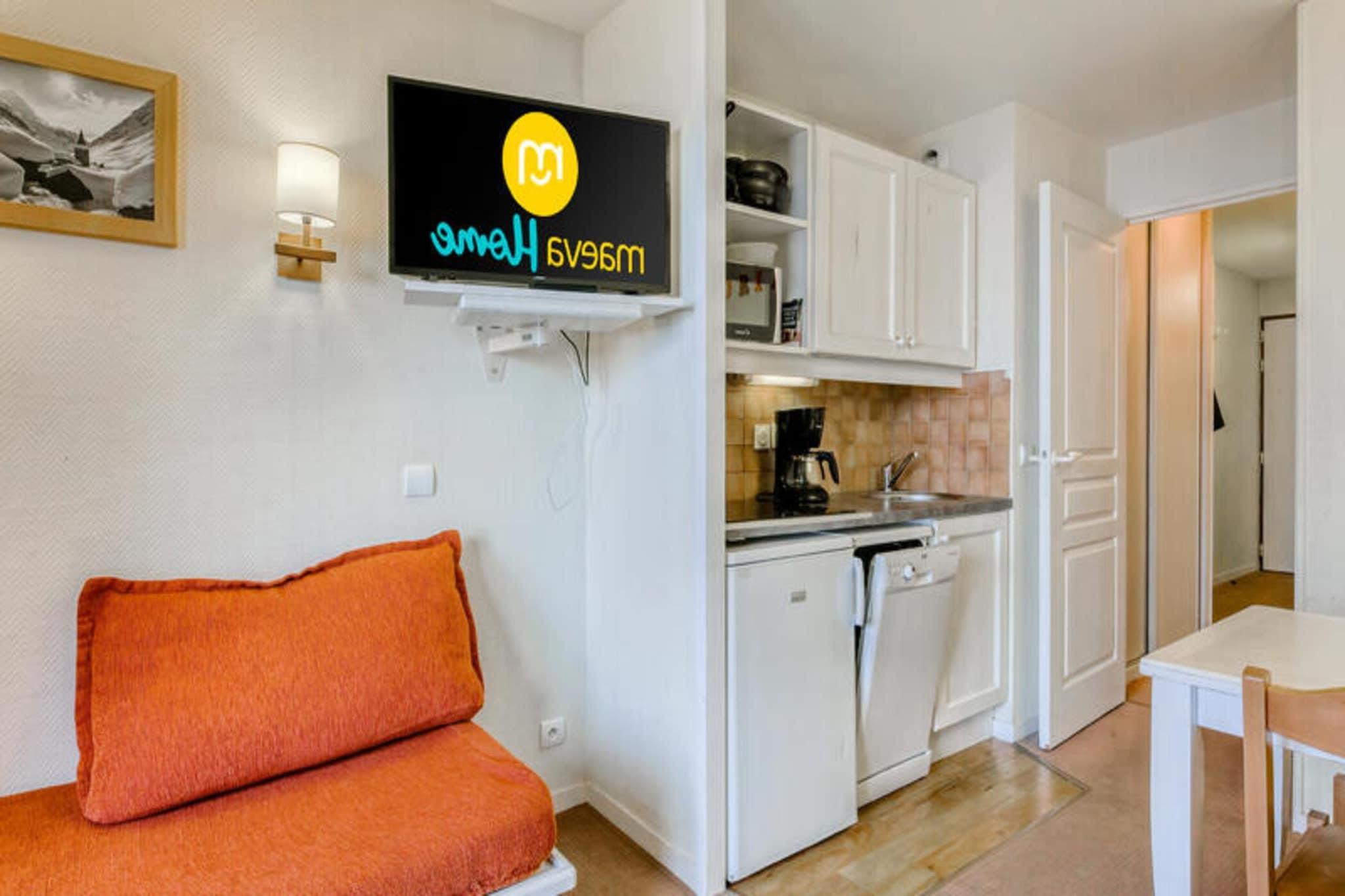 Ejendommen giver sammen med dets kompakte, men komfortable design et indbydende rum for op til 4 gæster. Opholdsområdet inkluderer en sofa, der kan omdannes til to bænkesenge, hvilket giver mulighed for fleksible sovearrangementer. En sydøstvendt altan byder på en bjergudsigt, ideel til at nyde de naturlige omgivelser. Indkvarteringen har et soveværelse med dobbeltseng, et badeværelse i god stand og et separat toilet. Mens kæledyr er tilladt mod et ekstra gebyr, kan gæster forespørge om priser direkte med boligen. Ejendommen tilbyder også en række tjenester, herunder sengelinned, slutrengøring og valgfri daglig rengøring, alt sammen med det formål at forbedre komforten under dit ophold. Ejendommen er beliggende i Falaise-distriktet og er ideelt placeret til at udforske det bedste ved feriestedet. Kun en kort afstand fra pisterne (mellem 100 m og 500 m), giver det gæsterne mulighed for at nyde en ski-in/ski-out-oplevelse, hvilket giver nem adgang til det omkringliggende skiområde. Det pulserende landsbycentrum ligger inden for gåafstand og byder på et udvalg af butikker, restauranter og aktiviteter. Derudover ligger boligen i nærheden af ??Aquariaz, det største bjergvandland, en perfekt mulighed for familier, der ønsker at slappe af efter en dag på pisterne. Overdækket parkering er tilgængelig i nærheden, selvom den skal reserveres på forhånd gennem den lokale parkeringsservice. Lejligheden er udstyret med et køkken i amerikansk stil, som indeholder væsentlige apparater til selvforplejning, såsom komfur, ovn og køleskab. Det har dog ikke et spisebord i køkkenet, men der er fire stole til rådighed til måltider i opholdsstuen. Ejendommen er også velholdt og inkluderer det grundlæggende for et behageligt ophold, såsom fjernsyn (afhængigt af boligen) og Wi-Fi. For et ekstra strejf af luksus kan gæsterne besøge Deep Nature Spa by Algotherm på den nærliggende premium-residens mod et tillæg.