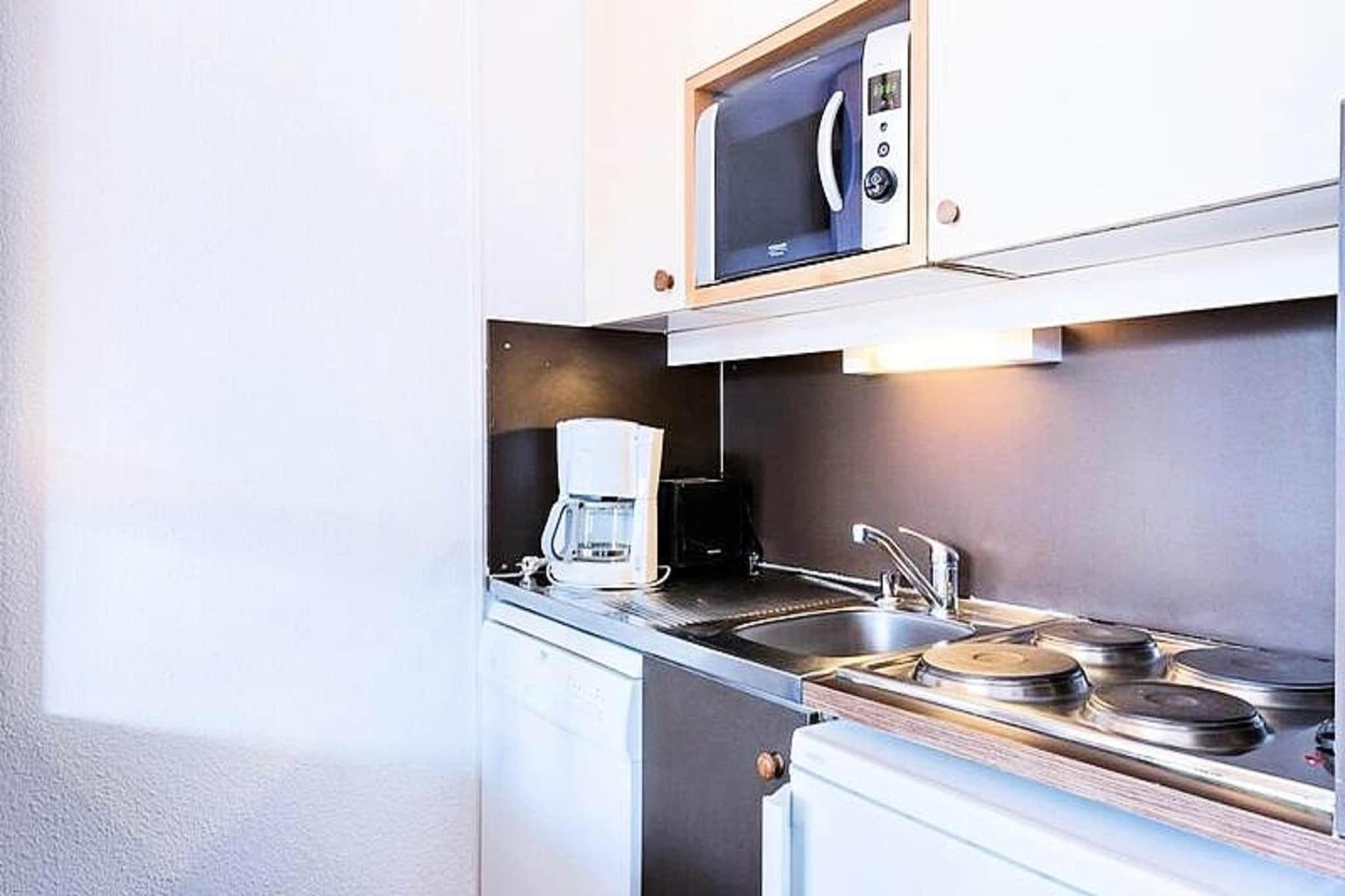 Denne hyggelige studiolejlighed i hjertet af feriestedet Avoriaz 1800 kan rumme op til 4 gæster. Det har en stue, et kabineområde og et køkken samt et badeværelse og separat toilet. Sengelinned er inkluderet, og gæsterne kan anmode om yderligere tjenester såsom daglige håndklædeskift og daglig rengøring mod et ekstra gebyr. Kæledyr er velkomne, selvom der muligvis opkræves ekstra gebyrer, og parkeringspladser kan reserveres i nærheden. Ejendommen kræver også et depositum og slutrengøringsgebyr, med muligheder for sidstnævnte mod et tillægsgebyr. Lejligheden ligger kun få skridt fra alle de pulserende aktiviteter på feriestedet og tilbyder nem adgang til en række attraktioner. Aquariaz vandsportsplads, som ligger midt i tropisk vegetation, er i nærheden, og byder på sjov for hele familien (ekstra gebyr). Gæsterne kan også nyde den naturskønne sø, en golfbane og resortets wellness-center til afslapning. Børnelandsbyen tilbyder underholdning for unge gæster, med forskellige betalte aktiviteter tilgængelige, hvilket sikrer, at alle har noget at nyde. Inde i lejligheden finder du et funktionelt køkkenområde udstyret med de nødvendige apparater til et behageligt ophold. Rummet er kompakt, men alligevel praktisk, og tilbyder en hyggelig atmosfære til din bjergrejse. Boligen leverer vedligeholdelsessæt for at sikre, at dit ophold forløber glat, og beliggenheden er ideel for nem adgang til butikker, restauranter og underholdning på feriestedet.
