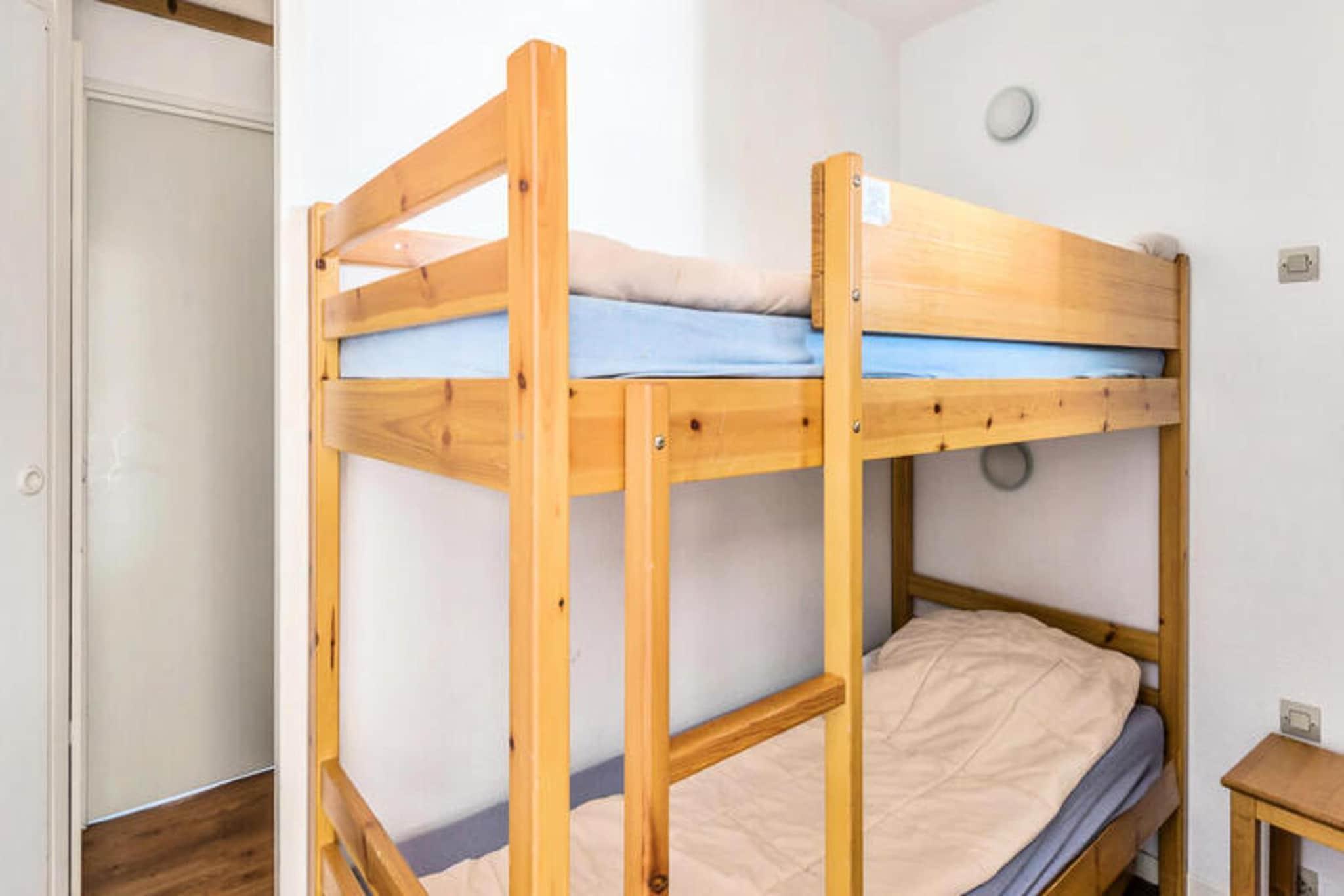 Beliggende i Falaise-distriktet i Avoriaz er dette charmerende ski-in/ski-out-studie perfekt for op til fire gæster. Boligen har en hyggelig opholdsstue, et separat kabineområde og et velindrettet badeværelse med toilet. Med sengetøj og et vedligeholdelsessæt inkluderet, vil du nyde et problemfrit ophold. Kæledyrsvenlige overnatningssteder er tilgængelige efter anmodning, hvilket gør det til et fremragende valg for dem, der rejser med lodne ledsagere. Babysæt, herunder vugger og høje stole, kan også leveres afhængigt af tilgængelighed. Studiet er ideelt beliggende til at tilbyde en betagende panoramaudsigt over feriestedet og Morzine-dalen. Gæster vil elske den bekvemme nærhed til butikker, restauranter og det berømte Aquariaz-vandland. Kun få skridt væk fra overdækkede parkeringspladser vil du nyde problemfri adgang til Avoriaz's fodgængerzone. Uanset om du leder efter afterski-spisning eller unikke lokale butikker, er denne placering ideel til at fordybe dig i feriestedets livlige atmosfære. Studiet er designet med funktionalitet i tankerne og inkluderer et fuldt udstyret køkken med essentielle apparater, en spiseplads og rigelig opbevaring. Håndklæder og slutrengøring tilbydes mod et tillægsgebyr, mens overdækkede parkeringspladser kan reserveres på forhånd. Denne indkvartering tilbyder den perfekte balance mellem komfort og bekvemmelighed, hvilket sikrer en mindeværdig bjergferie.