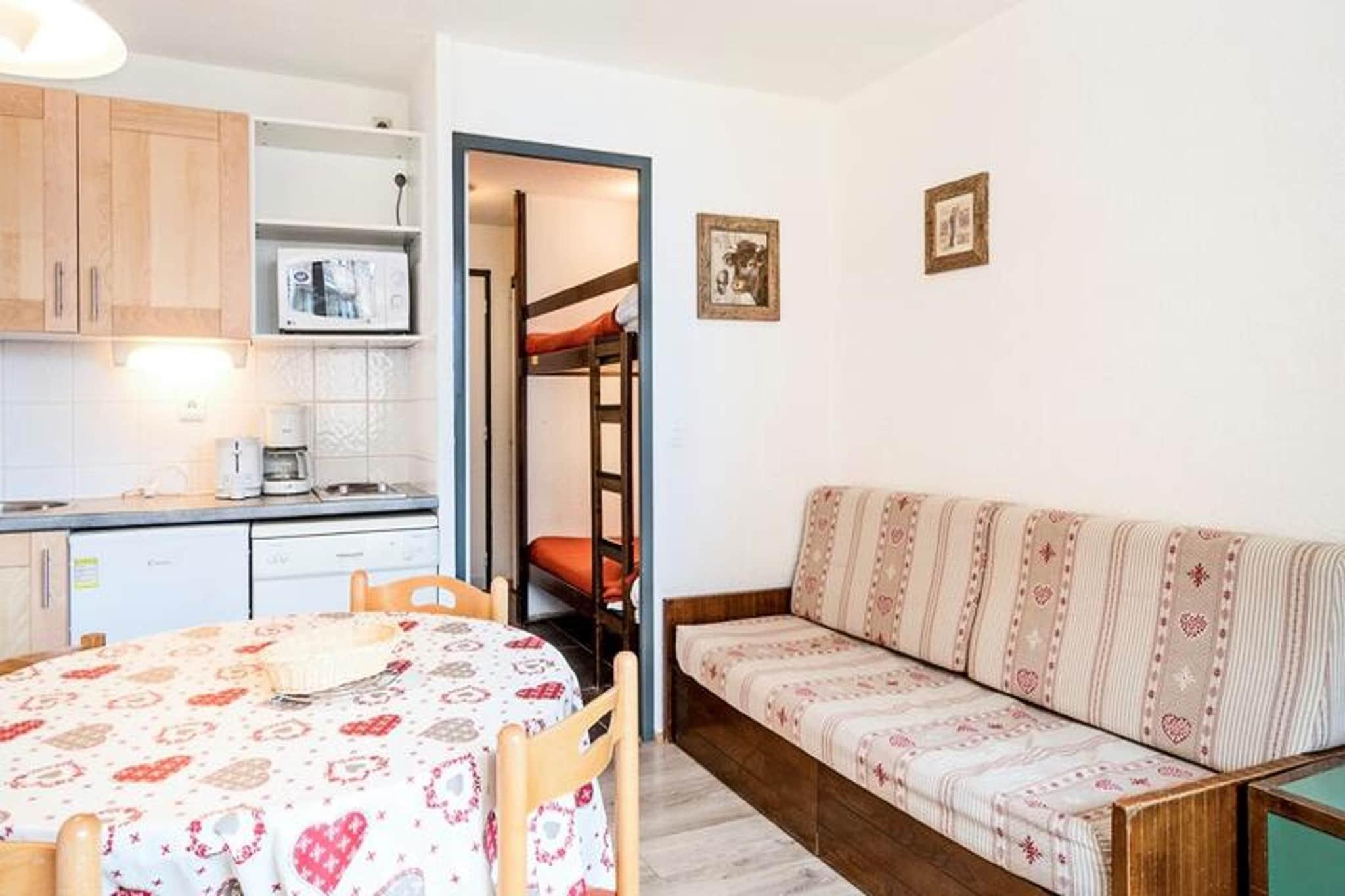Les Alpages-residensen, som ligger i den charmerende landsby Crozats i Avoriaz, tilbyder en ideel ramme for en ferie i bjergene. Denne ski-in/ski-out indkvartering ligger i gåafstand til butikker og restauranter, ligesom den er tæt på ESF (Ecole du Ski Français). Boligen byder på en veludstyret lejlighed med stue, kabineområde, køkkenafdeling, badeværelse og separat toilet, perfekt til 4-6 personer. Lejligheden, med et areal på cirka 21 m², indeholder to sovesofaer (plus en ekstra udtræksseng), to køjesenge i kabineområdet og et rundt spisebord til fire. Badeværelset er udstyret med badekar og toilet. Andre faciliteter inkluderer et tv, skiskab, balkon og opbevaringsplads. Lejligheden er nordvendt og byder på en fredelig atmosfære med nem adgang til vandrestier i skiområdet Portes du Soleil. De inkluderede tjenester omfatter sengelinned, med mulighed for at skifte håndklæder og sengetøj dagligt mod et ekstra gebyr. Slutrengøring er obligatorisk, og yderligere tjenester såsom daglig rengøring er tilgængelige. Kæledyr er tilladt, og parkering kan reserveres på nærliggende pladser. Boligen er også underlagt turistskatter, som kan betales via din personlige konto.
