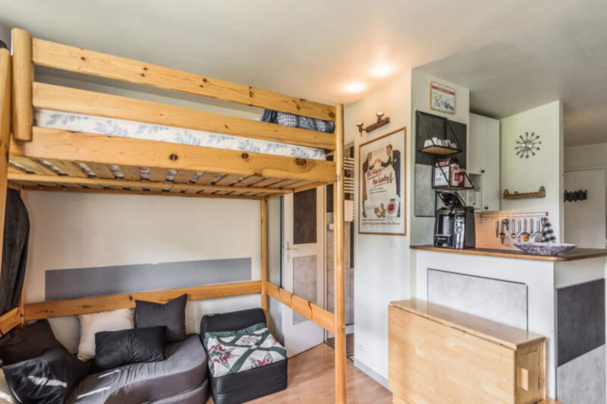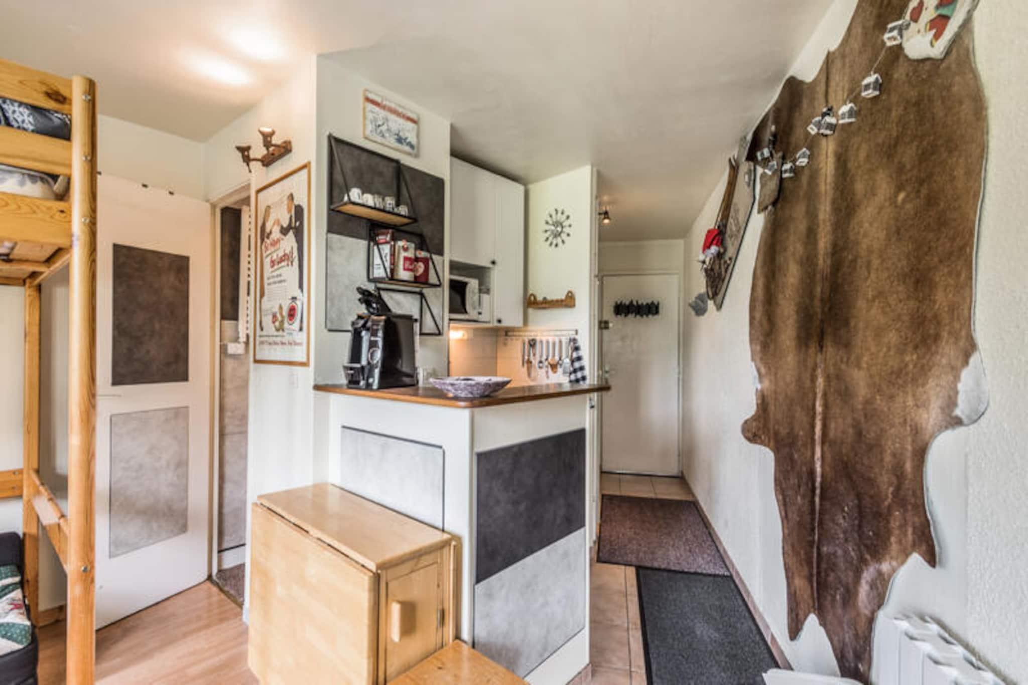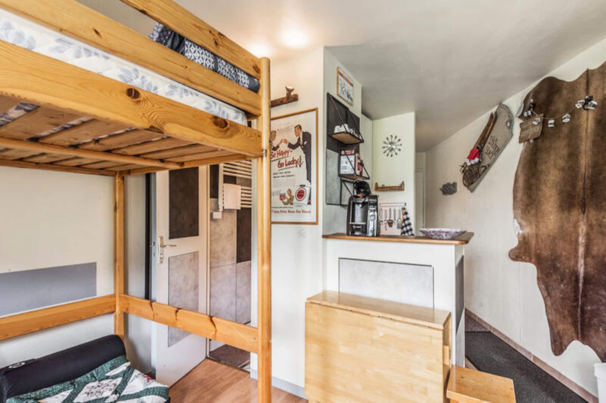 Denne hyggelige lejlighed, beliggende på 6. sal i en ski-in/ski-out bolig, tilbyder det perfekte tilflugtssted for små familier eller grupper på op til fire gæster. Stuen er indrettet med en sovesofa med plads til to, mens mezzaninen har to senge (ikke egnet til to voksne). Ejendommen er kæledyrsvenlig, så du kan tage dine lodne ledsagere med. Sengelinned er inkluderet, og gæsterne kan vælge ekstra håndklædeservice eller daglig skift af sengetøj for ekstra komfort. Lejligheden er ideelt beliggende kun en kort gåtur fra feriestedets centrum og tilbyder nem adgang til en række butikker, caféer og underholdningsmuligheder. Som en ski-in/ski-out ejendom giver det direkte adgang til pisterne, hvilket gør det til et godt valg for vintersportsentusiaster. Det omkringliggende område er fuld af aktivitet, med nærliggende skiskoler, snowboardfaciliteter og afterski-steder, som du kan nyde efter en dag i bjergene. Det fuldt udstyrede køkken, som er åbent til stuen, indeholder alt hvad du behøver til madlavning, med et spisebord og stole til fire. Badeværelset har bruser, mens der er separat toilet. For ekstra komfort har lejligheden også en balkon, hvor gæsterne kan slappe af og nyde den omkringliggende alpine udsigt. Internetadgang og fjernsyn er tilgængelige for underholdning, og parkering kan arrangeres ved nærliggende faciliteter.
