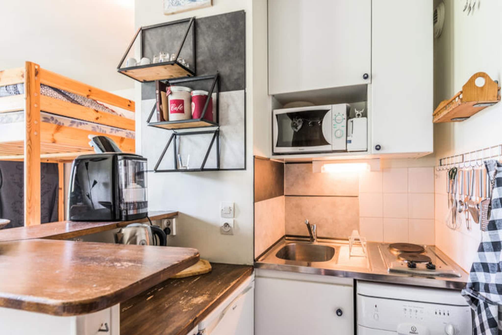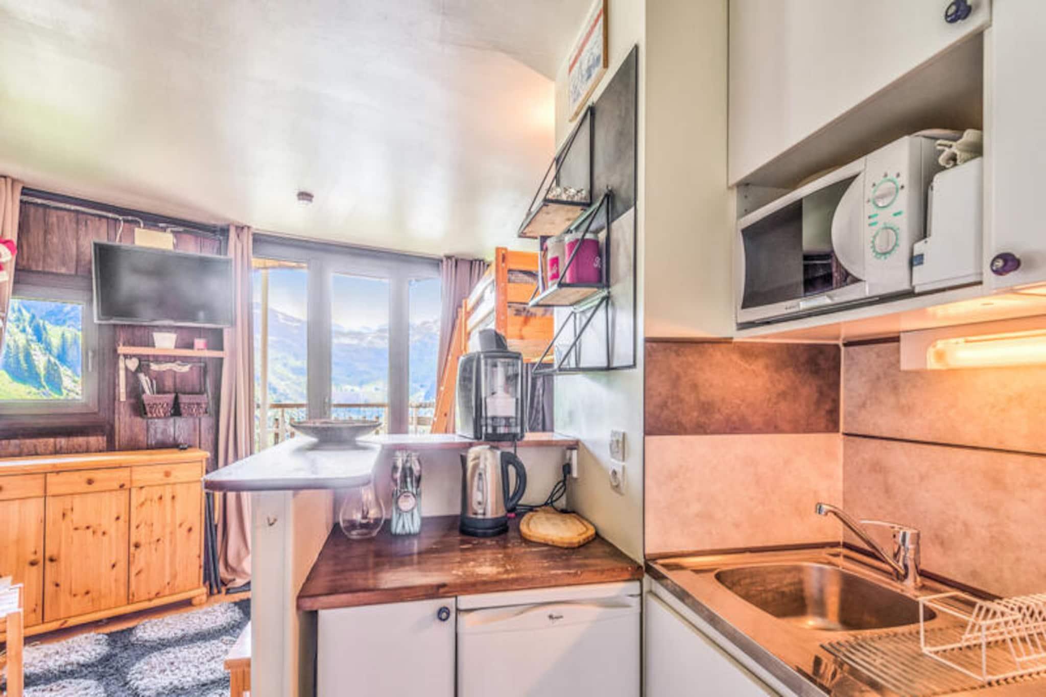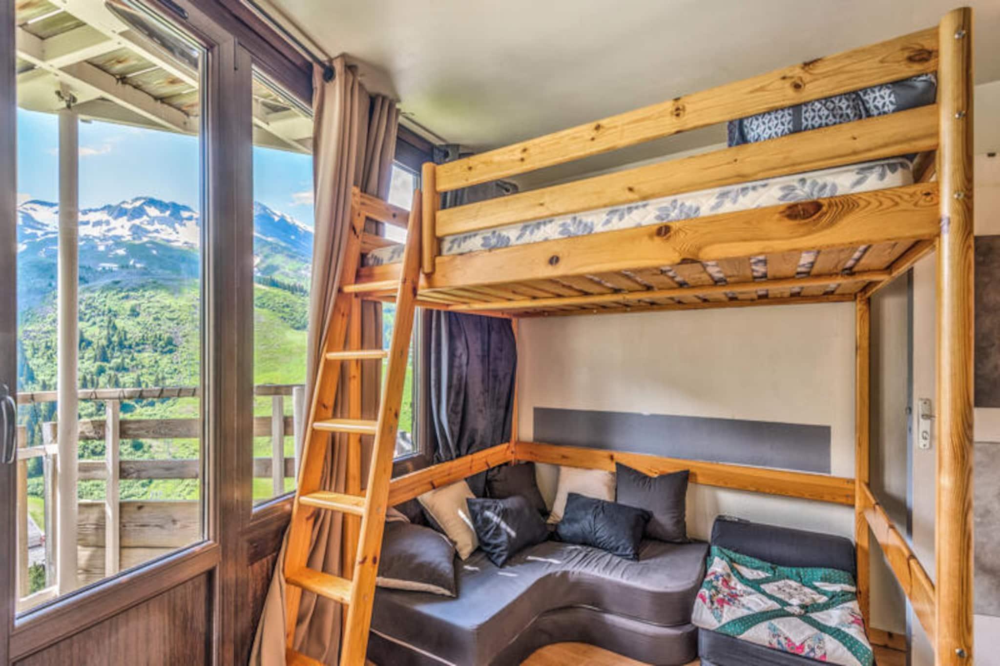 Denne hyggelige lejlighed, beliggende på 6. sal i en ski-in/ski-out bolig, tilbyder det perfekte tilflugtssted for små familier eller grupper på op til fire gæster. Stuen er indrettet med en sovesofa med plads til to, mens mezzaninen har to senge (ikke egnet til to voksne). Ejendommen er kæledyrsvenlig, så du kan tage dine lodne ledsagere med. Sengelinned er inkluderet, og gæsterne kan vælge ekstra håndklædeservice eller daglig skift af sengetøj for ekstra komfort. Lejligheden er ideelt beliggende kun en kort gåtur fra feriestedets centrum og tilbyder nem adgang til en række butikker, caféer og underholdningsmuligheder. Som en ski-in/ski-out ejendom giver det direkte adgang til pisterne, hvilket gør det til et godt valg for vintersportsentusiaster. Det omkringliggende område er fuld af aktivitet, med nærliggende skiskoler, snowboardfaciliteter og afterski-steder, som du kan nyde efter en dag i bjergene. Det fuldt udstyrede køkken, som er åbent til stuen, indeholder alt hvad du behøver til madlavning, med et spisebord og stole til fire. Badeværelset har bruser, mens der er separat toilet. For ekstra komfort har lejligheden også en balkon, hvor gæsterne kan slappe af og nyde den omkringliggende alpine udsigt. Internetadgang og fjernsyn er tilgængelige for underholdning, og parkering kan arrangeres ved nærliggende faciliteter.