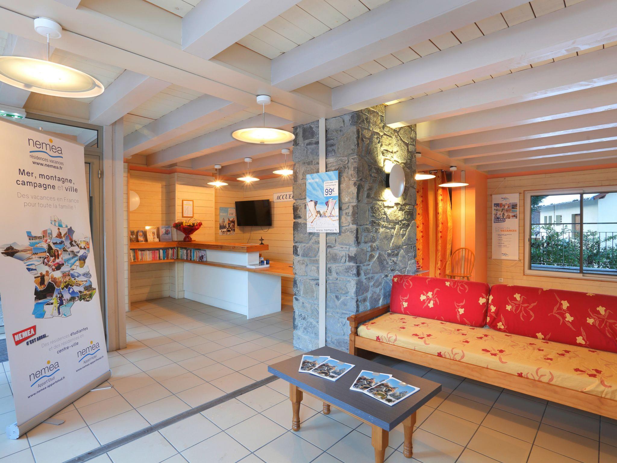 Residence "Les Grands Ax", 740 m a.s.l.. 59 apartments in the residence. In the centre of Ax-les-Thermes 45 km from the centre of Foix, 30 km from the centre of Andorre, 130 km from the centre of Toulouse/Perpignan, in the heart of the city. For shared use: indoor pool heated (10 x 5 m, depth 150 cm). In the complex: reception, WiFi, sauna, fitness room, storage room for skis, washing machine, tumble dryer (for shared use, extra). Breakfast (extra). Parking (limited number of spaces). Shop 200 m, supermarket 3 km, thermal baths 200 m. Gondola lift 100 m. Nearby attractions: Espagne 40 km, Carcassonne 110 km. Well-known ski regions can easily be reached: Télécabine Plateau de Bonascre 100 m. Please note: the photograph shows a typical example. The holiday properties may differ in living space, floorplan, equipment and furnishing.