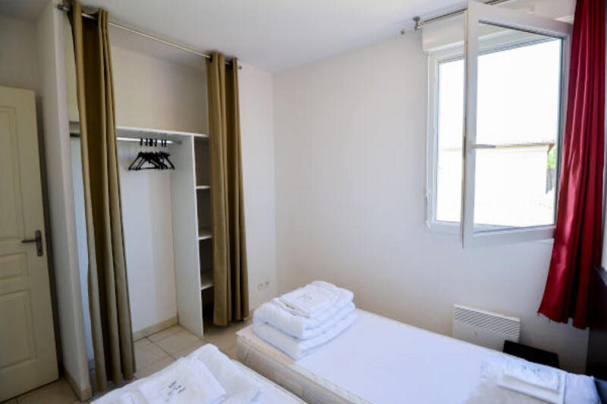 Ved bredden af ??Canal du Midi byder Résidence Le Château de Jouarres dig velkommen i hjertet af en 5 hektar stor skovklædt park. På stedet kan du nyde smukke solrige dage ved den udendørs swimmingpool, gåture i parken i skyggen af ??egetræerne og grillpladsen til dine sommermåltider! Residence Le Château de Jouarres er ideel til at tilbringe en rolig ferie med familie eller venner. Du vil sætte pris på de unikke omgivelser i denne bolig: i hjertet af vinmarkerne. På 1,5 km kan du nyde livets sødme ved bredden af ??søen Jouarres. På programmet: svømning og vandaktiviteter. Udendørsferier venter dig i disse unikke omgivelser, hvor der ikke er mangel på aktiviteter: besøg i Carcassonne, Minerve, vandaktiviteter på søen eller slutningen af ??dagen med udsigt over vinmarkerne, det er op til dig! 4-værelses duplex lejlighed til 8 personer: Stue med køkkenafdeling 1 soveværelse med 1 dobbeltseng 1 soveværelse med 2 enkeltsenge 1 soveværelse med 2 enkeltsenge (eller 1 dobbeltseng på mezzaninen) 1 kabineområde med 2 enkelt køjesenge 1 badeværelse med badekar og toilet 1 badeværelse med bruser separat toilet Balkon med havemøbler Wifi-adgang - Wifi-adgang i boligen. Gratis i receptionen Kæledyr tilladt - EURO45/kæledyr/uge eller EURO10/dag/kæledyr (maks. 2 kæledyr pr. indkvartering) Grill - grillplads Depositum (ekstra) - 300 Baby Kit - seng, høj stol, bad - gratis, afhængig af tilgængelighed Sengelinned - ekstra: 11€ / seng / skift - inkluderet for ophold på 1 til 6 nætter Håndklæder - ekstra: 10€ / person / skift - inkluderet for ophold på 1 til 6 nætter Slutrengøring - ekstra: 45 EURO; (studie), 50€ (Lejlighed 2 personer), 60€ (lejlighed 4 personer), 75€ (lejlighed 5 personer), 80€ (lejlighed 6 personer), 100€ (lejlighed 8 personer) Parkering - udendørs parkering Morgenmad - 11EURO/voksen/dag og 8EURO/barn/dag (-10 år) Svømmebassin - udendørs swimmingpool, åben fra 9.00 til 20.00. Turistskat (ekstra gebyr) - betales på stedet i henhold til gældende takst