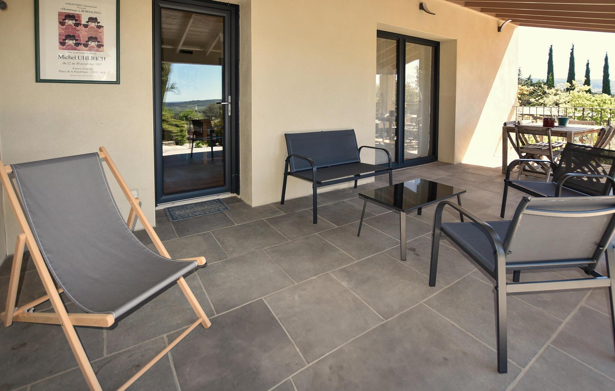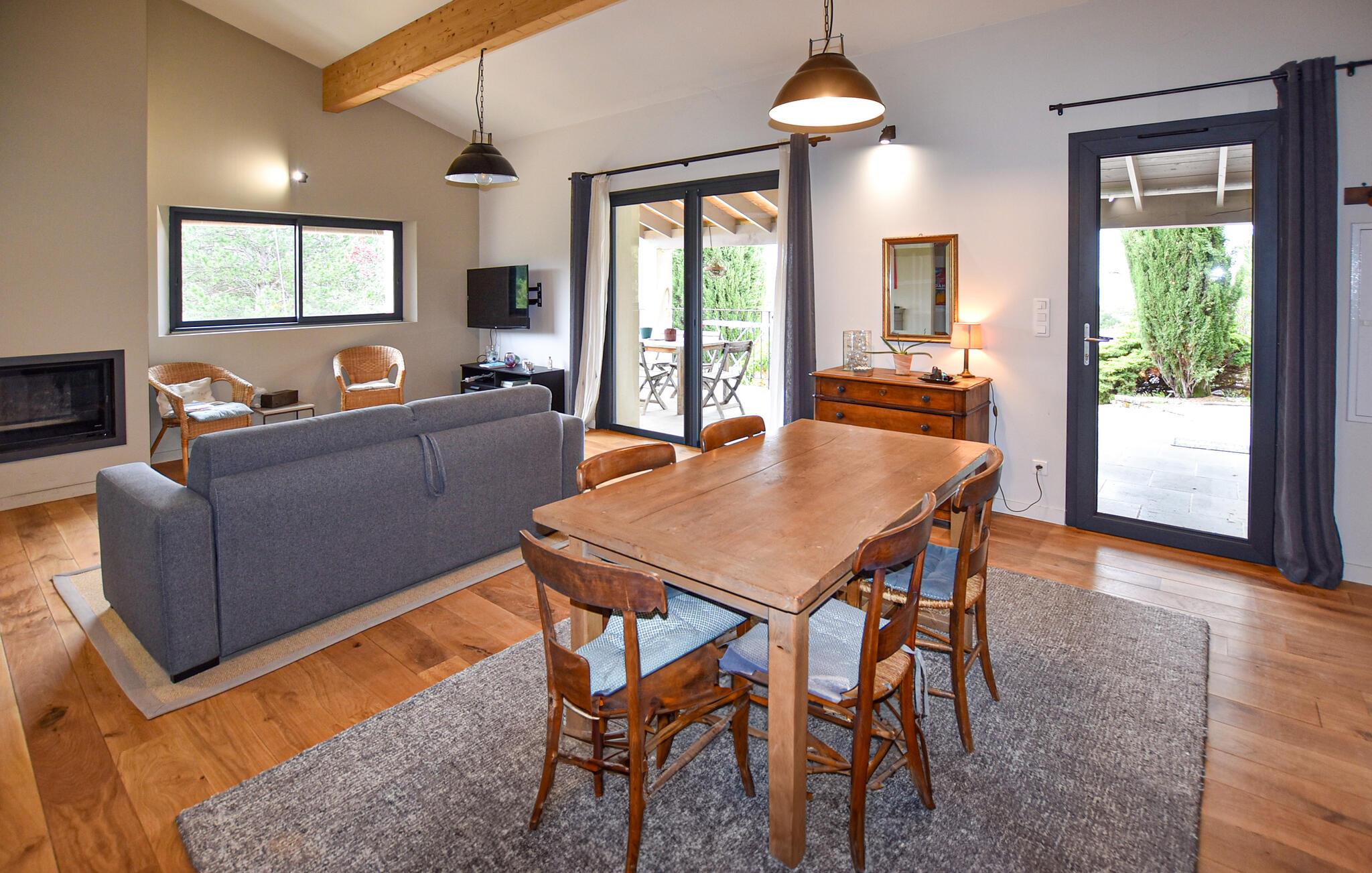 Dette smagfulde feriehus byder jer velkommen ved foden af ??Mont Ventoux og Dentelles de Montmirail og giver jer et komfortabelt og hyggeligt tilflugtssted, hvorfra I kan udforske denne naturskønne region. Glæd jer til harmoniske måltider i den komfortable, åbne stue, rolige læsetimer på den indbydende sofa eller muntre spilleaftener ved spisebordet.
