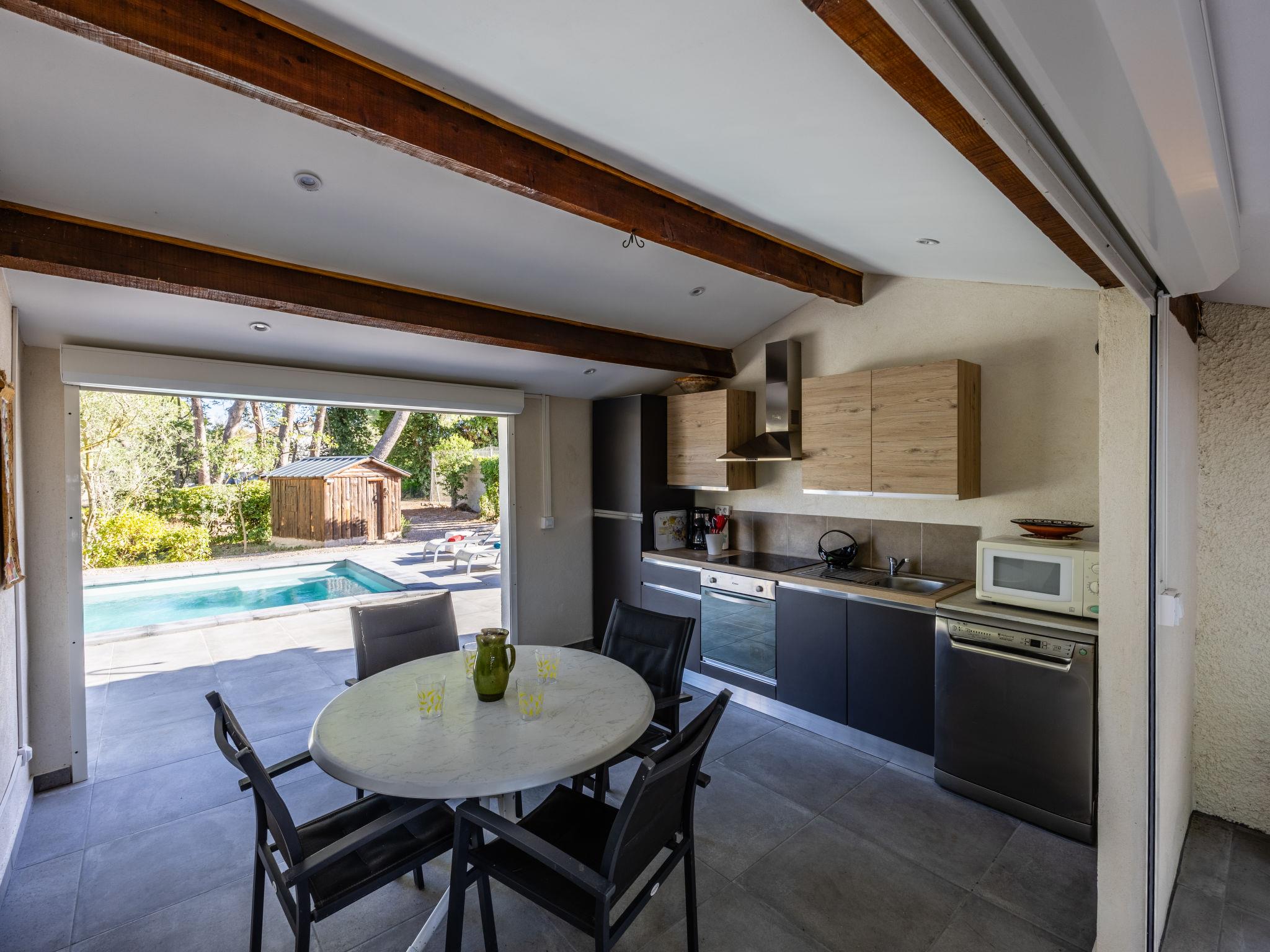 Béziers 10 km from VENDRES PLAGE: Very beautiful single-family house "Le Clos Saint Emilie". In the resort, 5 km from the centre, 10 km from the sea. Private: park, well-kept garden with wildlife garden and trees, swimming pool angular (6 x 3 m, depth 140 - 140 cm, seasonal availability: 01.Apr. - 30.Oct.) with shutter cover. Shower/WC in the pool area, pool house with fridge and cooking stove, tennis (1 x hard court), boules, barbecue house. In the house: storage room for bicycles. Parking (for 6 cars). Shop, supermarket 800 m, restaurant, bakery 500 m, bus stop 2.5 km, railway station "Béziers" 5 km, sandy beach "Vendres Plage" 10 km. Walking paths from the house, cycle lane 50 m. Nearby attractions: Carcassonne, Sète, Narbonne, Valras Plage, Cap d'Agde, Canal du Midi. Hiking paths: Circuit pédestre Ecluses de Fonséranes, Domaines Viticoles, Opidium d'Ensérune.