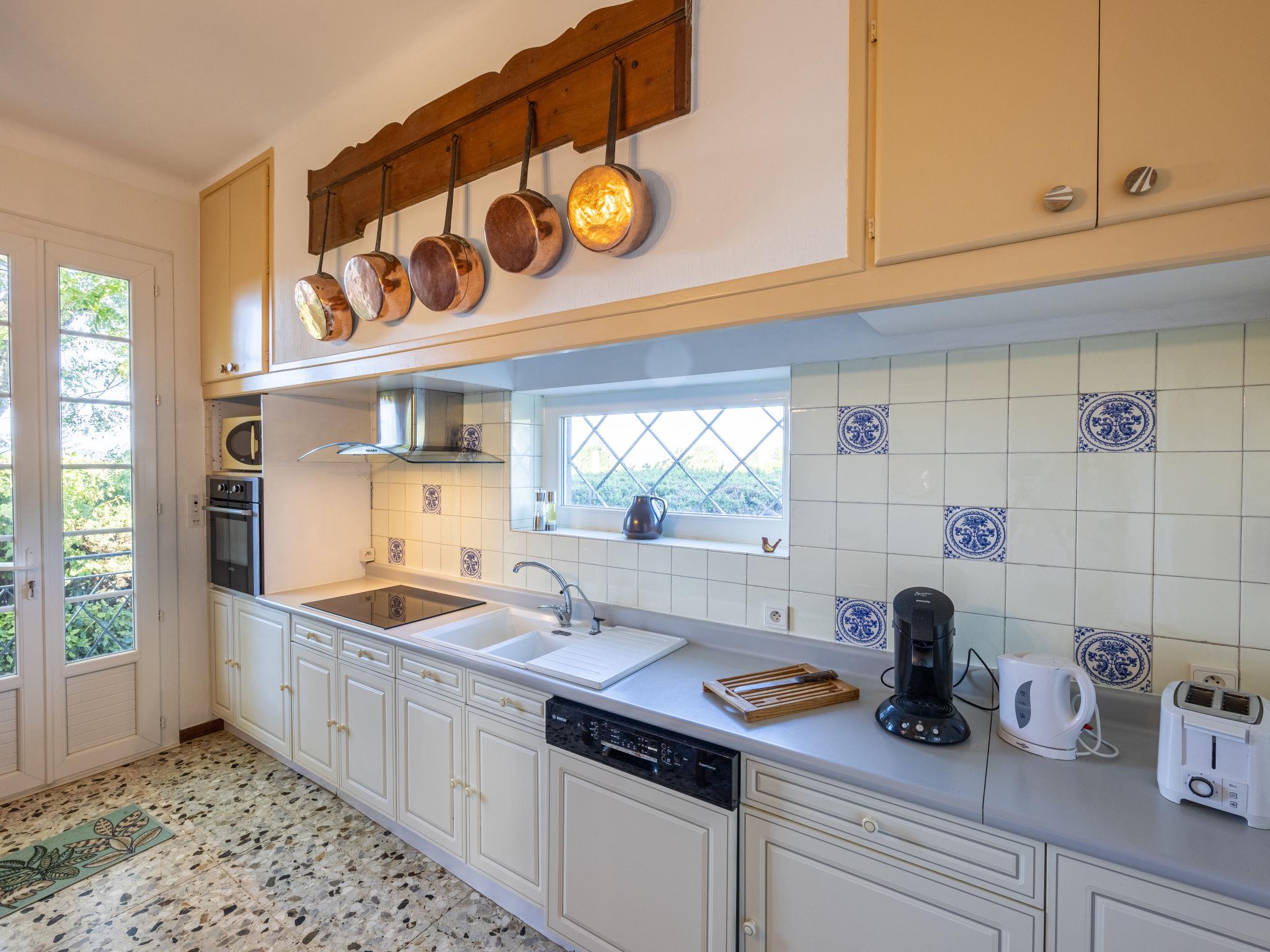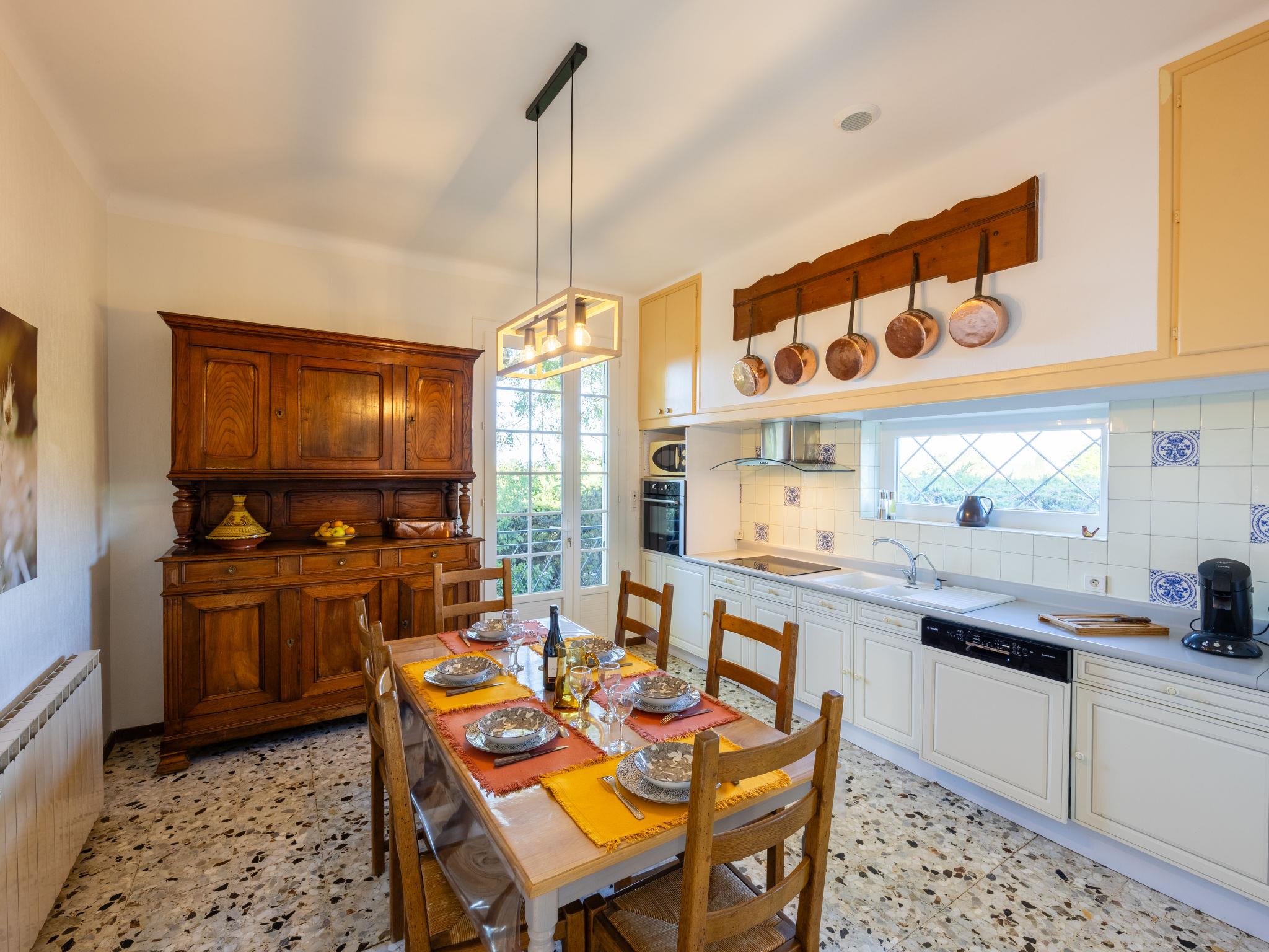 "Le Clos Saint Emilie (Tennis & piscine)", 6-room house 140 m2. Very beautiful furnishings: large living room with TV (flat screen), air conditioning. Dining room with dining table and air conditioning. Exit to the terrace. 1 room with 1 french bed (1 x 160 cm, length 200 cm), air conditioning. 1 room with 1 french bed (1 x 140 cm, length 190 cm), fan. 1 large room with 1 french bed (1 x 160 cm, length 200 cm), fan. 1 room with 2 beds (90 cm, length 200 cm), air conditioning. Kitchen (oven, dishwasher, 4 ceramic glass hob hotplates, toaster, kettle, microwave, freezer, electric coffee machine) with air conditioning. Bath/shower, shower/WC, sep. WC. Electric heating. Large terrace 25 m2. Balcony furniture, deck chairs, sitting area. Very beautiful view of the garden and the countryside. Facilities: washing machine, iron, children's high chair, baby cot for up to 2 year olds, hair dryer, logs (free). Internet (WiFi, free). Parking (6 cars). Please note: non-smoking house. Maximum 1 pet/ dog allowed. Smoke alarm. Tennis court, summer kitchen available with dishwasher, freezer. Offer by a private individual according to Art. 155, IV of CGI.