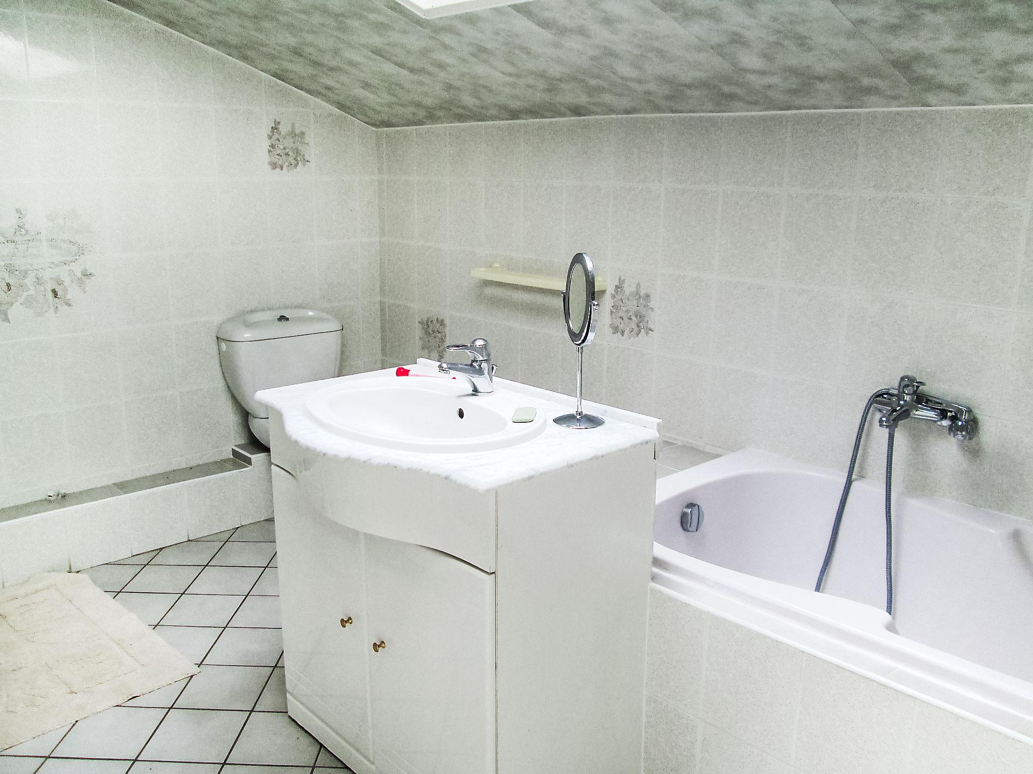 5-room house 270 m2 on 2 levels. Spacious, practical furnishings: entrance hall. Large living/dining room with open-hearth fireplace and satellite TV (flat screen), DVD. Exit to the terrace. 1 room with 1 french bed (140 cm, length 190 cm), TV. Exit to the garden. 1 room with 2 beds (90 cm, length 190 cm). Exit to the terrace. Open kitchen (oven, dishwasher, 2 induction hot plates, 2 gas rings, toaster, microwave, freezer, electric coffee machine, Capsules for coffee machine (Senseo) extra) with bar. Bath/shower, sep. WC, double hand-basin. Upper floor: 1 room with 2 beds (90 cm, length 180 cm). Exit to the terrace. 1 room with 1 french bed (1 x 160 cm, length 200 cm), bath/shower/WC, TV and DVD. Gallery with sloping ceilings, ceiling height 170 cm with 1 bed (80 cm, length 190 cm). 2 terraces covered. Terrace furniture, barbecue, deck chairs (6). Beautiful view. Facilities: washing machine, iron, children's high chair, baby cot, logs (free). Internet (WiFi, free). Please note: non-smoking house. Maximum 1 pet/ dog allowed. Smoke alarm. Instead of an enclosed bedroom, some sleeping areas are located in an open-plan area (gallery, alcove, etc.).