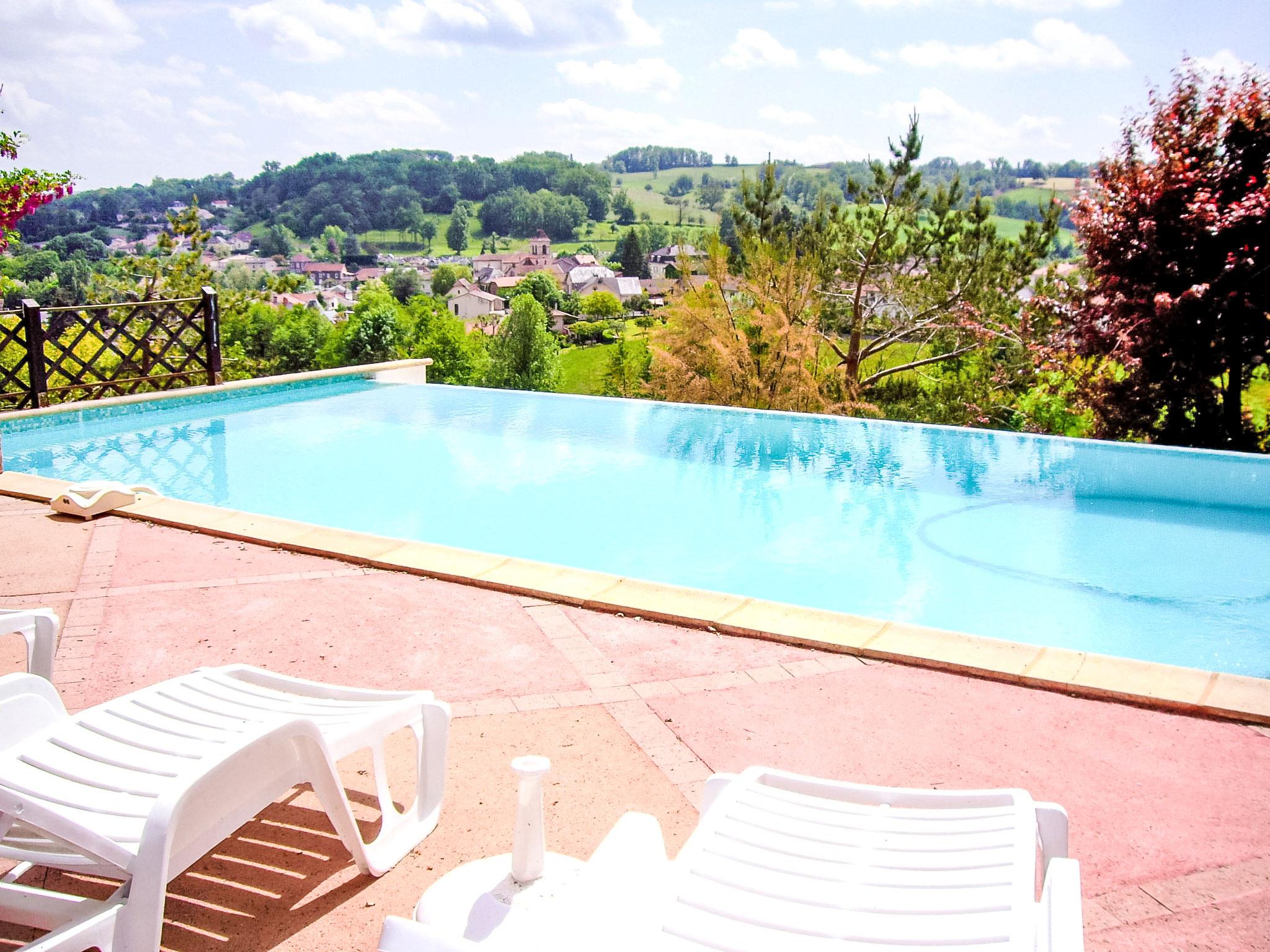 Single-family house "Fromental". 400 m from the centre of Bagnac-sur-Célé, 16 km from the centre of Figeac, 50 km from the centre of Aurillac, on a slope, in the residential district, in a cul-de-sac. Private: terraced garden, 4'000 m2 with trees, swimming pool fenced (5 x 10 m, depth 160 cm, seasonal availability: 15.May. - 15.Sep.). Paddling pool, table tennis. Stepped path (20 steps) to the house. Parking at the house on the premises, single garage. Shop, restaurant 400 m, bus stop "Figeac" 15 km. Tennis 1 km. Nearby attractions: Gouffre de Padirac 50 km, Rocamadour 60 km, Sarlat 100 km, Grottes de Lascaux 130 km. Please note: car recommended.