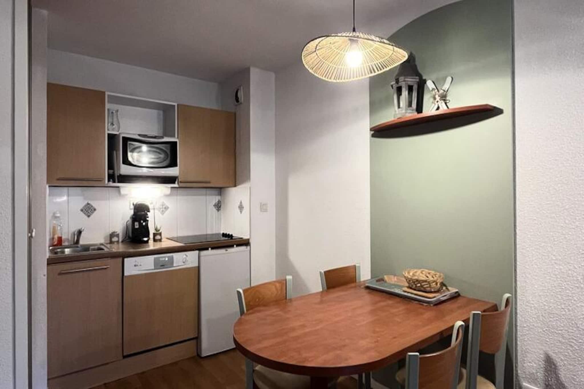 Højt beliggende i hjertet af de franske Pyrenæer, hvor tinderne rører skyerne, og luften er frisk og forfriskende, ligger Pic du Midi-residensen i La Mongie. Med udsigt over det vidtstrakte Grand Tourmalet-skiområde inviterer dette charmerende tilflugtssted dig til at omfavne bjergenes skønhed, uanset om det er dækket af sne eller badet i sommersolskin. Her føles hvert øjeblik som et postkort, der kommer til live. Residensen er en harmonisk blanding af traditionel pyrenæisk arkitektur med træ- og stenelementer, der udstråler varme og autenticitet. Din hyggelige lejlighed på 35 m² er omhyggeligt designet med en sydvendt balkon, der tilbyder uforstyrret udsigt over de majestætiske tinder. Indenfor finder du en komfortabel opholdsstue med en sovesofa, et fuldt udstyret åbent køkken og et roligt soveværelse med en dobbeltseng. Badeværelset har et badekar med bruser, perfekt til at slappe af efter en dag med eventyr. Moderne faciliteter, herunder valgfri Wi-Fi og babysæt, sikrer et stressfrit ophold for både familier og par. Lige uden for døren tilbyder residensen en opvarmet indendørs pool, et fitnessrum og praktisk salg af liftkort og udlejning af udstyr. I nærheden finder du en restaurant, et pizzeria og et bageri, der tilfredsstiller dine kulinariske lyster. Om vinteren lover Grand Tourmalet-området spændende skiløjper og snefyldt sjov, mens sommeren forvandler regionen til et paradis for vandreture, cykling og whitewater-sport. Uanset om du søger adrenalinpumpende aktiviteter eller rolige øjeblikke omgivet af natur, er Pic du Midi-residensen din port til uforglemmelige minder i Pyrenæerne. Lad bjergene inspirere dit næste eventyr.