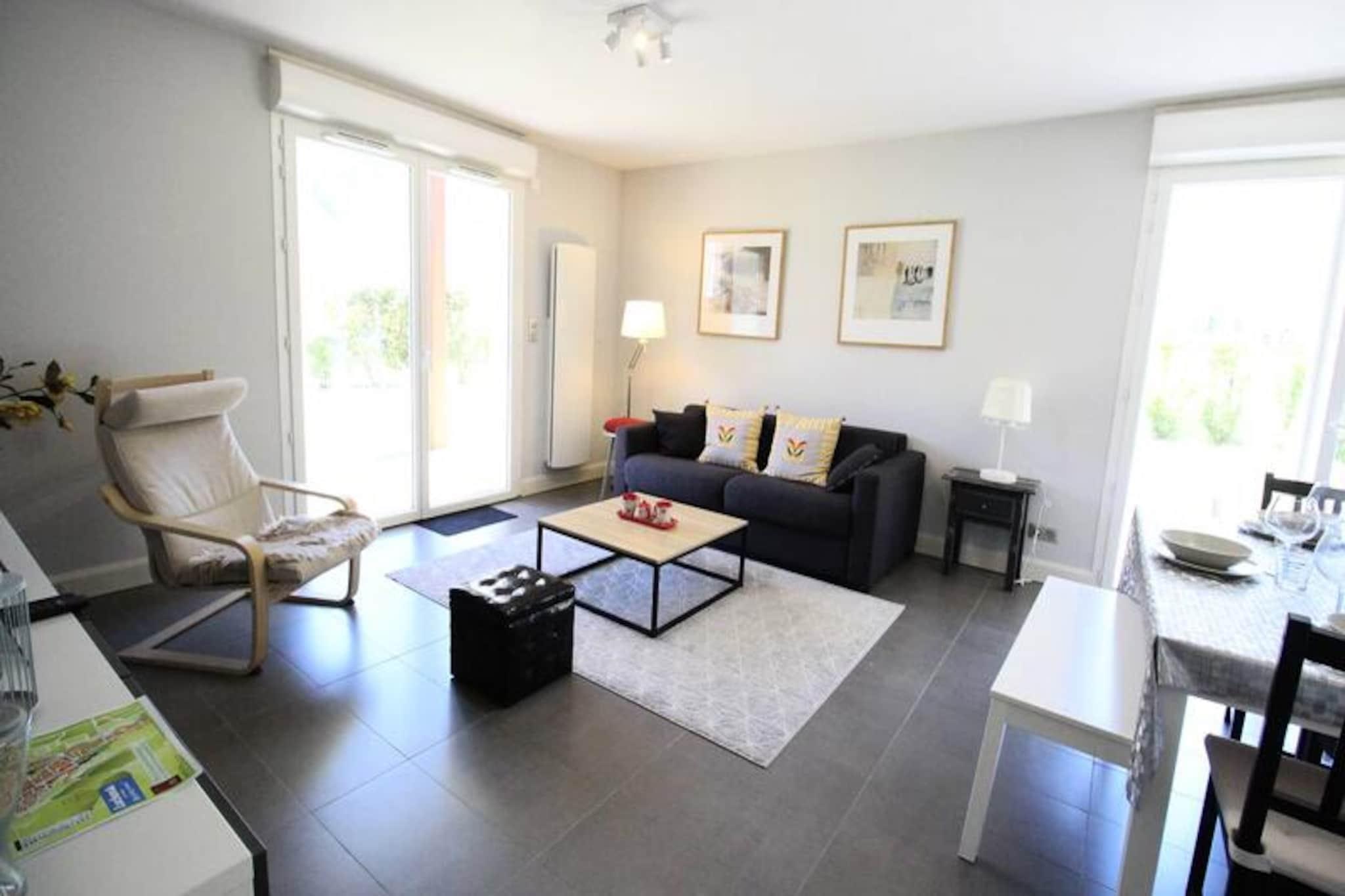 I den maleriske by Luchon, hvor Pyrenæerne udfolder deres majestætiske skønhed, tilbyder denne charmerende lejlighed en fredfyldt tilflugtssted omgivet af naturens vidundere. Forestil dig at vågne op til en betagende udsigt over bjergene, med svævefly og paraglidere, der lander yndefuldt i nærheden og tilføjer et strejf af eventyr til de rolige omgivelser. Boligen er perfekt beliggende til at fordybe dig i regionens unikke blanding af udendørsaktiviteter og fredelig afslapning. Uanset om du søger et roligt tilflugtssted eller en aktiv ferie, er denne ejendom den ideelle base. \n\nTræd indenfor i denne smukt designede 51 m² store lejlighed i stueetagen og oplev en harmonisk blanding af komfort og moderne bekvemmeligheder. Opholdsstuen har en hyggelig dobbelt sovesofa, et fladskærms-tv og et fuldt udstyret tekøkken med keramisk kogeplade, multifunktionsovn, brødrister, Nespresso-maskine og opvaskemaskine. Soveværelset kan prale af en luksuriøs queensize-seng og rigelig garderobeplads, der sikrer afslappende nætter efter dages udforskning. Badeværelset har bruseniche og vaskemaskine, mens det separate toilet øger bekvemmeligheden. To terrasser og en 130 m² sydvendt have inviterer dig til at nyde solen og den fantastiske udsigt. I nærheden finder du uendelige muligheder for eventyr og opdagelser. Fra vandrestier, der snor sig gennem Pyrenæerne, til de charmerende gader i Luchon, er der noget for enhver smag. Flyvepladsen lige uden for døren tilbyder et unikt skue med svævefly og paraglidere, der skaber en dynamisk og inspirerende atmosfære. For cykelentusiaster tilbyder lejligheden opbevaring til to cykler og adgang til fælles faciliteter. Vælg denne bolig for et mindeværdigt ophold, hvor komfort møder Pyrenæernes charme. Uanset om du er her for at slappe af eller udforske, er denne lejlighed din port til en uforglemmelig oplevelse i en af ??Frankrigs mest fortryllende regioner.