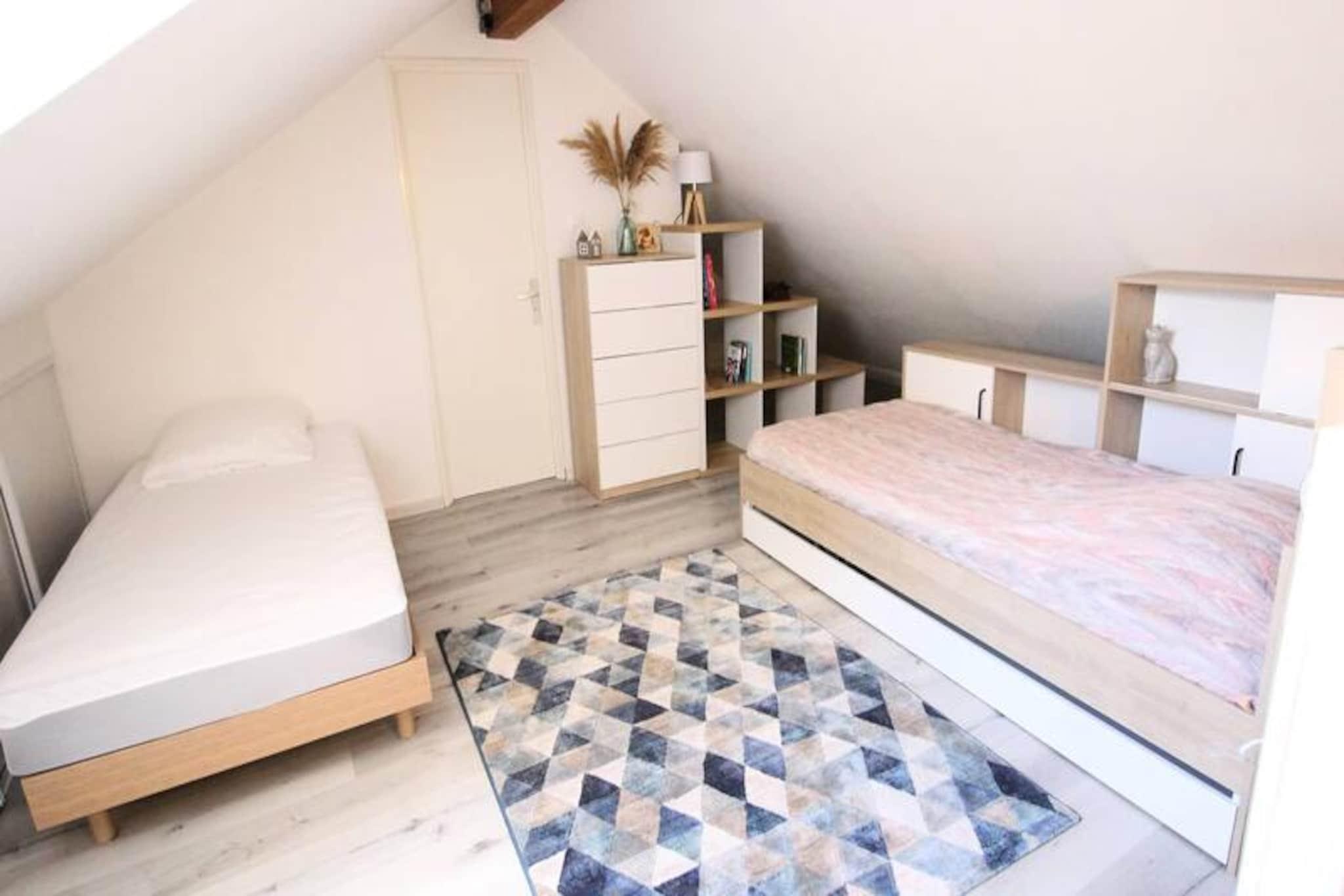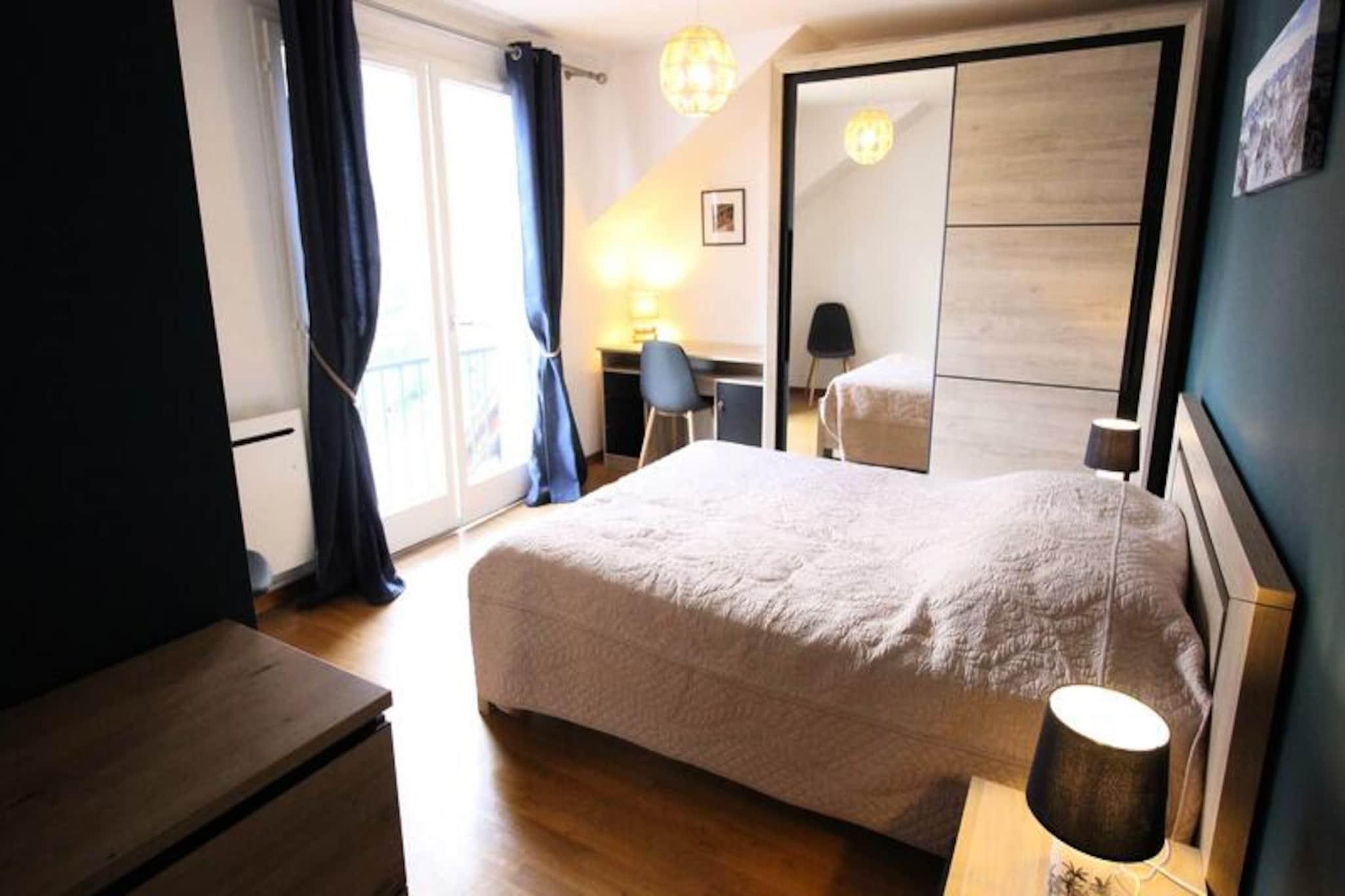 Højt over Luchons charmerende gader tilbyder denne elegante duplexlejlighed et roligt tilflugtssted med en betagende udsigt over Pyrenæerne. Uanset om du besøger stedet for de berømte termiske bade eller den pulserende lokale kultur, er denne ejendom perfekt placeret til at fordybe dig i regionens skønhed og ro. Fra det øjeblik du træder ud på den vestvendte balkon, vil du blive betaget af det maleriske landskab og den fredelige atmosfære, der omgiver dig. Denne lejlighed med to sider har et gulvareal på 108 m² og et boligareal på 70,45 m² og kan komfortabelt rumme op til seks gæster. Stueetagen har en indbydende stue med en dobbelt sovesofa, lænestole og et fladskærms-tv, der åbner ud til balkonen med udsigt over solnedgangen. Det fuldt udstyrede tekøkken inkluderer moderne apparater såsom køleskab, induktionskogeplade, ovn, mikrobølgeovn, opvaskemaskine og en Senseo-kaffemaskine, hvilket gør det nemt at tilberede måltider efter en dag med udforskning. Det største soveværelse har en hyggelig dobbeltseng, garderobe og skrivebord, mens ovenpå er der et andet soveværelse med to enkeltsenge og et ekstra toilet med vaskemaskine. Lejligheden ligger kun få skridt fra Luchons termiske bade og livlige butikker og er ideel for dem, der søger afslapning og bekvemmelighed. Friluftsentusiaster vil sætte pris på nærheden til vandrestier, skisportssteder og cykelruter, mens byens rige historie og kulturelle begivenheder giver uendelige muligheder for opdagelser. Privat parkering over jorden og et opbevaringsrum bidrager til bekvemmeligheden og sikrer et problemfrit og behageligt ophold. Uanset om du er her for at slappe af i det termiske vand, udforske de majestætiske Pyrenæer eller blot nyde Luchons charme, tilbyder denne lejlighed den perfekte base for en uforglemmelig ferie.