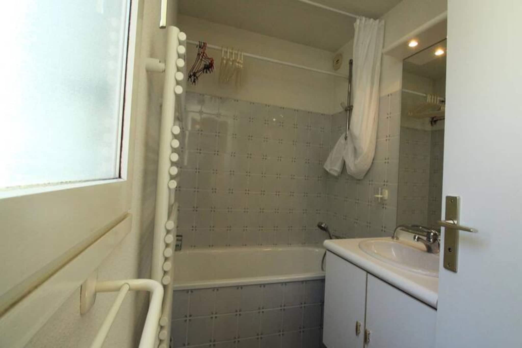 Højt over den charmerende kurby Luchon tilbyder denne hyggelige lejlighed på femte sal i Terrasses du Sacaron Residence et roligt tilflugtssted med betagende udsigt over bjergene. Uanset om du besøger stedet for at besøge de berømte termiske bade eller for at udforske det pulserende bycentrum, placerer denne ejendom dig i hjertet af det hele, samtidig med at den giver en fredelig flugt fra travlheden. Den sydvendte loggia inviterer dig til at nyde solskinnet og beundre de majestætiske tinder, der omgiver området. Forestil dig at nippe til din morgenkaffe her, mens solen står op over Pyrenæerne. Indenfor er lejligheden omhyggeligt designet til at maksimere komfort og funktionalitet. Den lyse stue, komplet med sofa, spisebord og fjernsyn, åbner direkte ud til loggiaen, hvilket skaber en problemfri inde-udendørs opholdsoplevelse. Det fuldt udstyrede tekøkken indeholder alle de nødvendige faciliteter, fra en miniovn til en kaffemaskine, hvilket gør det nemt at tilberede måltider derhjemme. Soveværelset har en hyggelig dobbeltseng, mens badeværelset er udstyret med en vaskemaskine for ekstra bekvemmelighed. Med laminatgulv overalt og et separat toilet er alle detaljer blevet tænkt over for at sikre et behageligt ophold. Gæsterne vil sætte pris på den private parkering og den fælles cykelopbevaring, perfekt for dem, der ønsker at udforske de naturskønne stier og maleriske gader i Luchon. Lejlighedens nærhed til de termiske bade, lokale butikker og restauranter gør den til et ideelt valg for par, der søger både afslapning og eventyr. Uanset om du er her for at lade op i det termiske vand, vandre gennem de fantastiske pyrenæiske landskaber eller blot slappe af i rolige omgivelser, tilbyder denne lejlighed den perfekte base for din ferie. Oplev Luchons charme og skab uforglemmelige minder i dette idylliske bjergparadis.