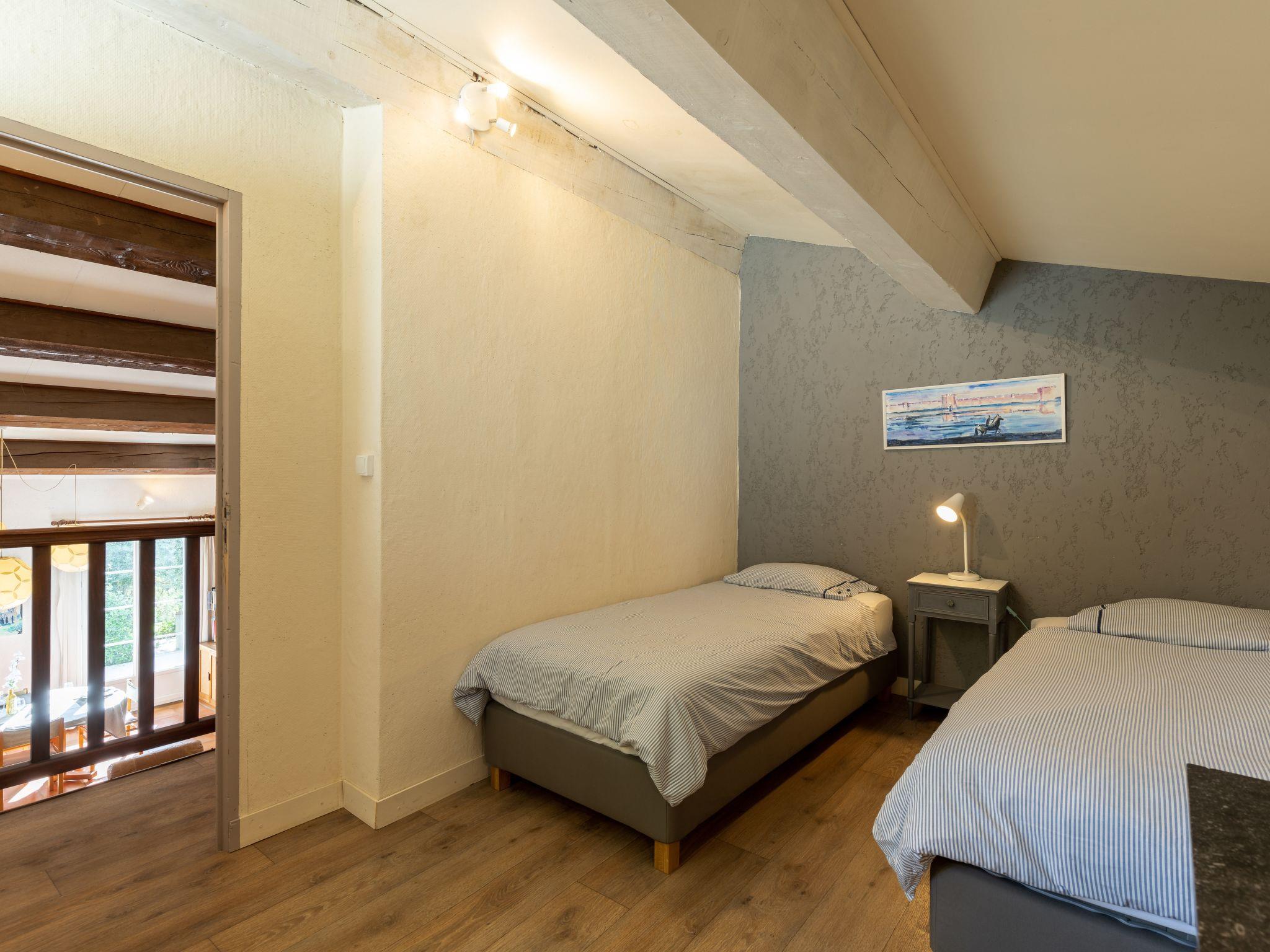 "La Rouveyrolle", 5-room house 150 m2 on 2 levels. Beautiful and cosy furnishings: living/dining room with open-hearth fireplace (only for decoration), dining table, TV, radio and CD-player. Exit to the terrace. 1 room with 1 double bed (160 cm). Exit to the garden. 1 room with 1 double bed (160 cm). 1 room with 2 beds. Open kitchen (oven, dishwasher, 4 induction hot plates, toaster, kettle, microwave, freezer, electric coffee machine) with dining table. Exit to the terrace. Bath/WC, shower, sep. WC, double hand-basin. Upper floor: 1 room with 2 beds. Electric heating. Large terrace 50 m2. Terrace furniture, barbecue, deck chairs (6). View of the garden. Facilities: children's high chair, baby cot. Internet (WiFi, free). Please note: maximum 1 pet/ dog allowed. Smoke alarm. When there are less than the maximum number of guests staying at the property, one floor will not be available for use.