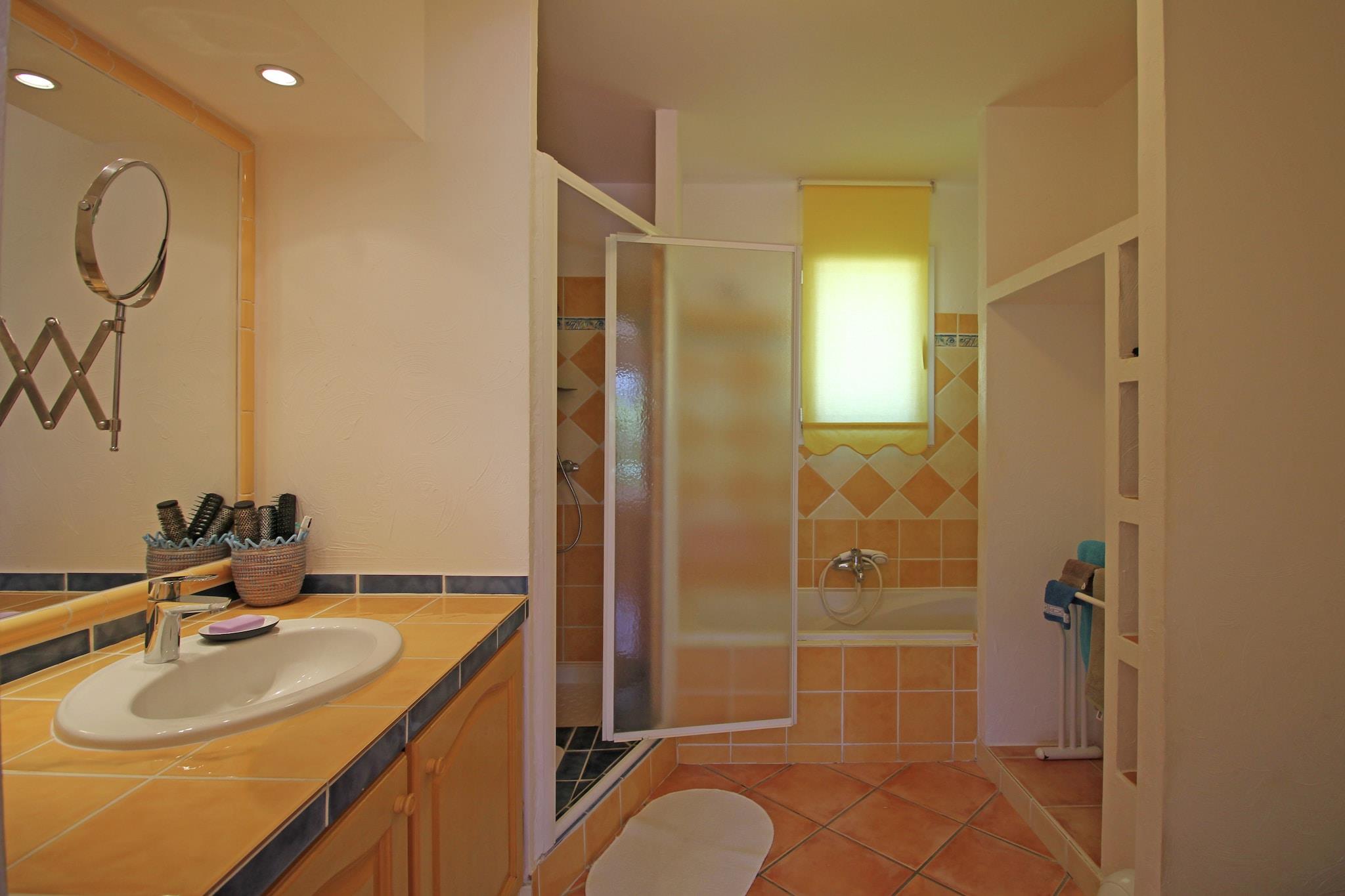 Stueetage: (Stue(dobbeltsovesofa, Fjernsyn(fladskærm, parabol, Internationale TV-kanaler), spisebord, pejs, sofahjørne, DVD-afspiller, CD-afspiller, stereoanlæg), Køkken(elkedel, brødrister, komfur(Komfur med fire kogeplader, elektrisk), kaffemaskine(kaffepude), ovn, mikrobølgeovn, opvaskemaskine , køle-fryseskab), soveværelse(dobbeltseng(140 x 200 cm)), soveværelse(dobbeltseng(140 x 200 cm)), Soveværelse med badeværelse(dobbeltseng(160 x 200 cm), Fjernsyn, badekar, bruser, håndvask, toilet), badeværelse(bruser, håndvask), badeværelse(bruser, håndvask), toilet, vaskerum (køle-fryseskab, tørretumbler, vaskemaskine)) varme(elektrisk), terrasse(overdækket), have(privat, indhegnet, anlagt have, oplyst, 25 hm2), havemøbler, grill(trækul), parkering, liggestole, Parasol, 2x swimmingpool(privat, vand alarm, 8 x 4 m., opened from Jan upto and including Dec), petanquebane, bordtennisbord, barneseng, barnestol, Pladegrill