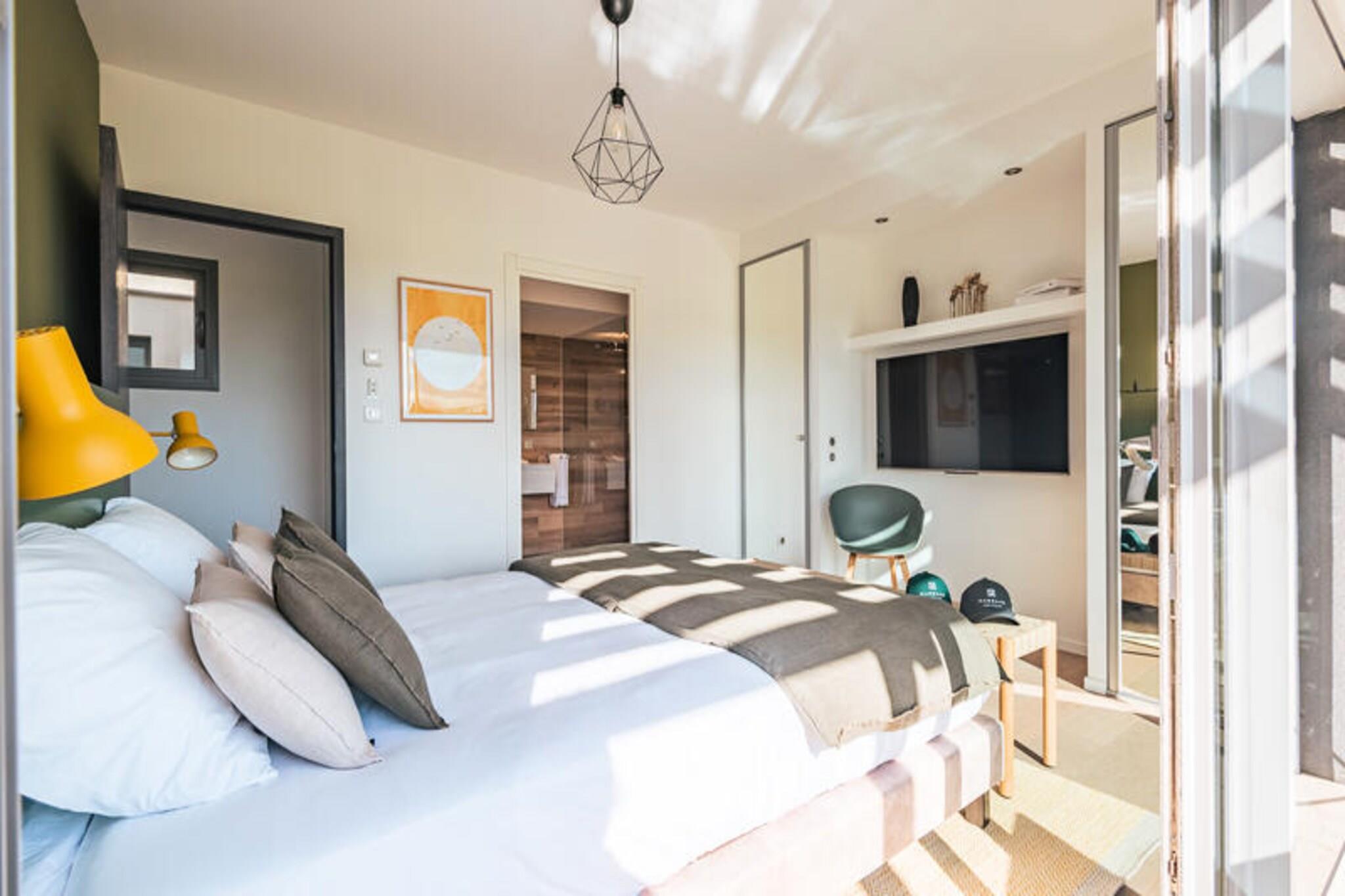 Denne rummelige villa tilbyder et luksuriøst ophold med en kombination af komfort og stil. Med tre soveværelser med kingsize-senge og et ekstra soveværelse med to enkeltsenge, er det ideelt for familier eller grupper. Villaen er kæledyrsvenlig og tillader et kæledyr pr. indkvartering mod et ekstra gebyr. Andre faciliteter inkluderer i alt fire badeværelser, et med badekar og hammam-bruser, og resten tilbyder praktiske faciliteter. Ejendommen omfatter også en komfortabel stue, et fuldt udstyret køkken og en privat terrasse med en swimmingpool til afslapning. Beliggende i den smukke Hérault-region giver denne villa nem adgang til lokale attraktioner med et fantastisk landskab, der inviterer til udforskning. Ejendommen byder på en golfbane og en wellness-spa med behandlinger og massager, som er tilgængelige mod et tillægsgebyr. For dem, der ønsker at slappe af, tilbyder den udendørs opvarmede swimmingpool en fredelig flugt. I nærheden finder du charmerende caféer, lokale markeder og lækre restauranter, hvor du kan opleve smagen fra Sydfrankrig. Villaens køkken er fuldt udstyret med moderne apparater til at tilberede måltider, mens en garage giver sikker parkering for din bekvemmelighed. Andre faciliteter omfatter gratis udendørs parkering, sengelinned, håndklæder og morgenbuffet. Ejendommen har også en ladestation til elbiler, hvilket gør det nemt at udforske området. Slutrengøring er inkluderet med undtagelse af affald og service.