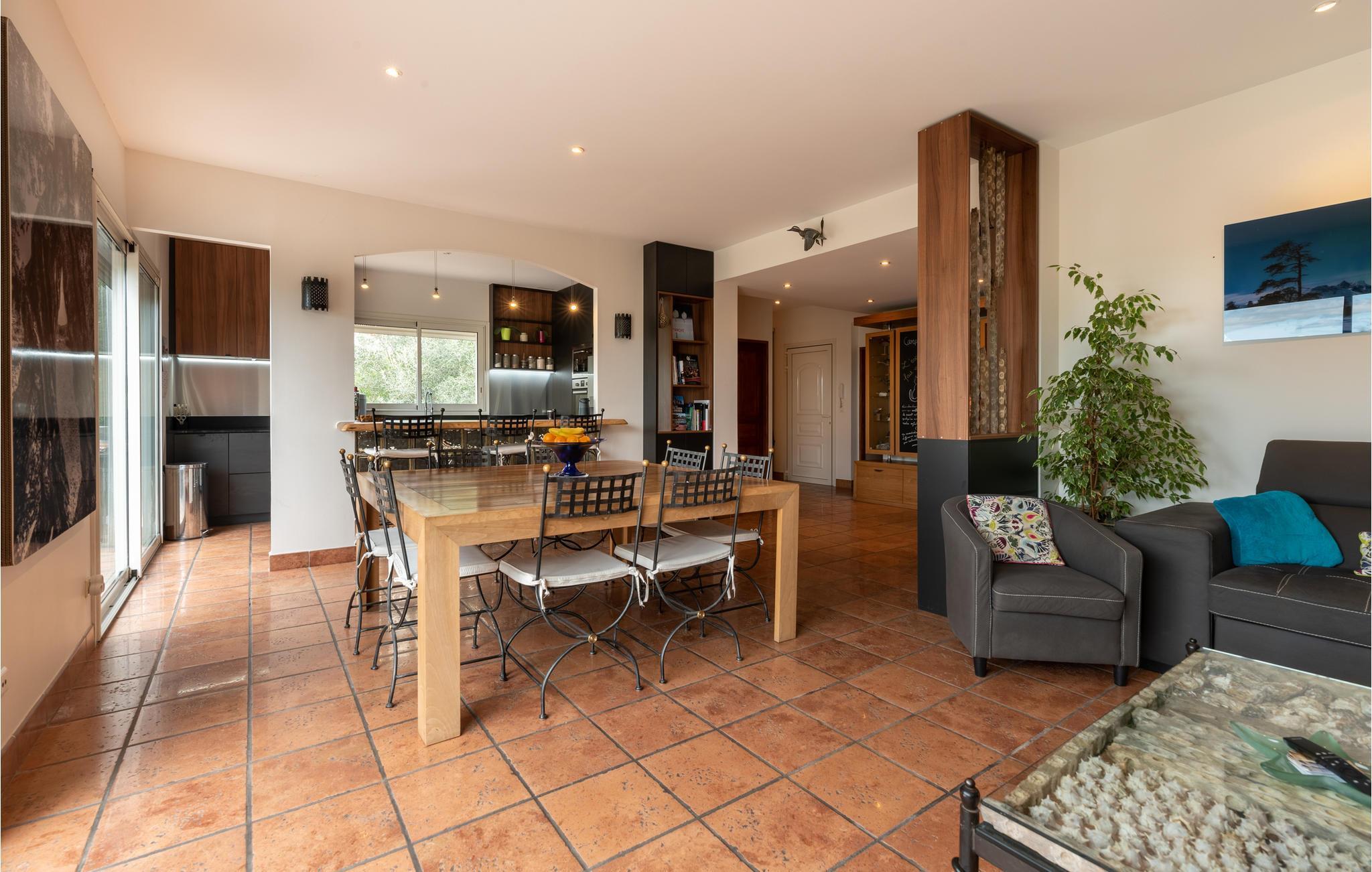 Feriehuset ligger meget roligt og er ideelt til en familieferie. Fra den store, lyse opholdsstue er der adgang til terassen, hvorfra I ser på havnen og poolen og kan nyde fantastiske solnedgange over havet. Ud over 3 soveværelser (herunder en mastersuite) er der et åbent soveplateau, som I når via en trappe uden gelænder. Få tiden til at gå med billard, bordtennis og boule. Poolområdet er forbeholdt gæsterne, og her har I også flere liggestole til rådighed.