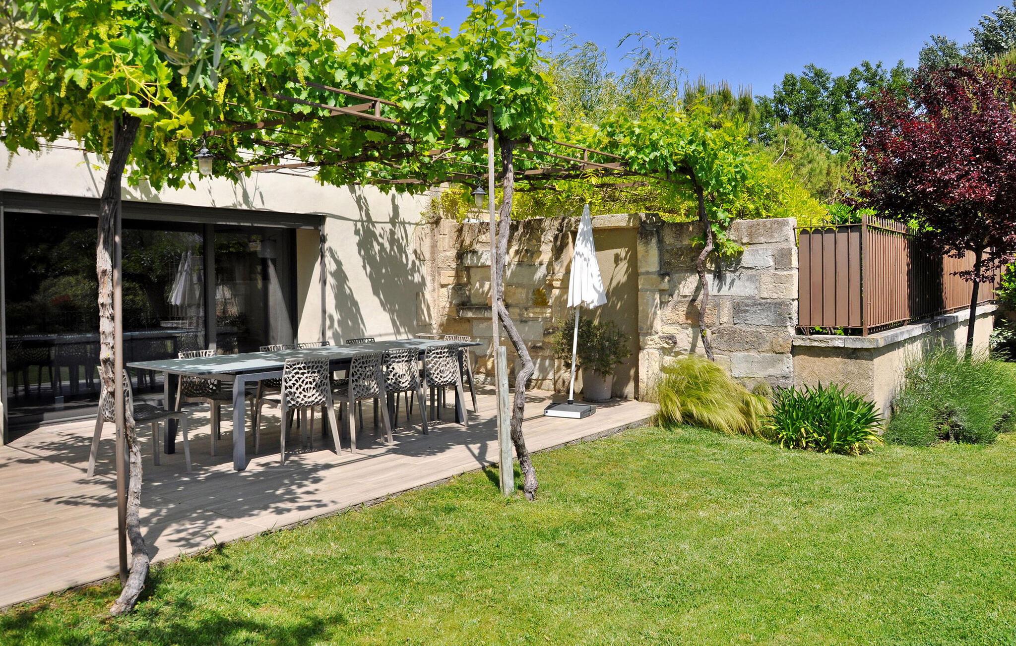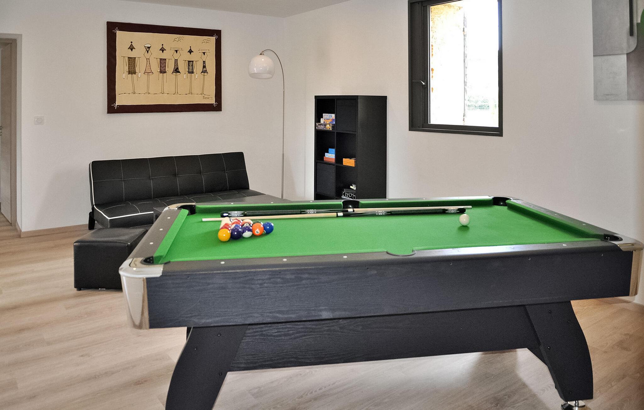 Omfavn lokken ved dette renoverede bondehus, som tilbyder moderne elegance og en raffineret atmosfære. Beliggende på landet nær Barbentane, tæt på Saint Rémy de Provence og klosteret Saint Michel de Frigolet, er dette dejlige tilflugtssted omgivet af bakken 'La Montagnette'. Dette feriehus har et smukt designet interiør og moderne bekvemmeligheder for et behageligt ophold. Stueetagen byder dig velkommen med et veludstyret køkken og spiseplads, en rummelig stue og et praktisk vaskerum. Aircondition sikrer en behagelig atmosfære overalt. Ovenpå kan du opdage et spillelokale og soveværelser, der emmer af komfort og stil. To delte bruserum imødekommer dine behov, mens to af soveværelserne har private bruserum for ekstra bekvemmelighed. Træd udenfor til en charmerende, lukket have med en bowlingbane til underholdning. Den skyggefulde havelounge ved den opvarmede private pool er møbleret med bløde siddepladser og malerisk udsigt. Terrassen, i skyggen af en pergola, byder på et indbydende rum til spisning under åben himmel med en grill og rigelig siddepladser. Den opvarmede pool (12m x 4m) inviterer dig til at slappe af. Stuehuset ligger på landet, ved foden af bakken "La Montagnette", en fredet bakke, hvor du kan gå vandre- eller cykelture. Du vil være 3 km fra Barbentane, hvor du vil finde et bageri, supermarked, restauranter og meget mere. Du kan nemt besøge Avignon, Saint Rémy de Provence, Les Baux de Provence, klosteret Saint Michel de Frigolet, Le Pont du Gard, Uzès. Bemærk venligst, at ejerne bor i et separat hus på den tilstødende ejendom med deres egen swimmingpool og indgang, hvilket sikrer dit privatliv. Derudover ligger en jernbane ca. 500 m væk.