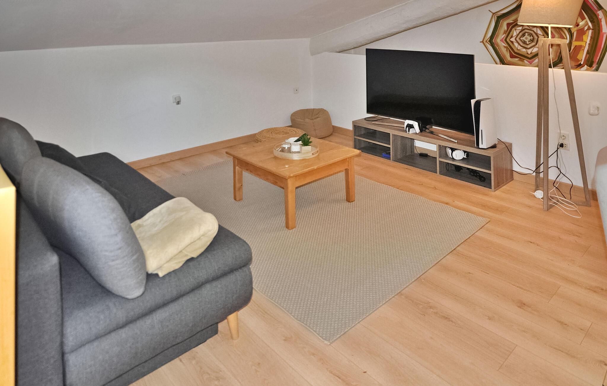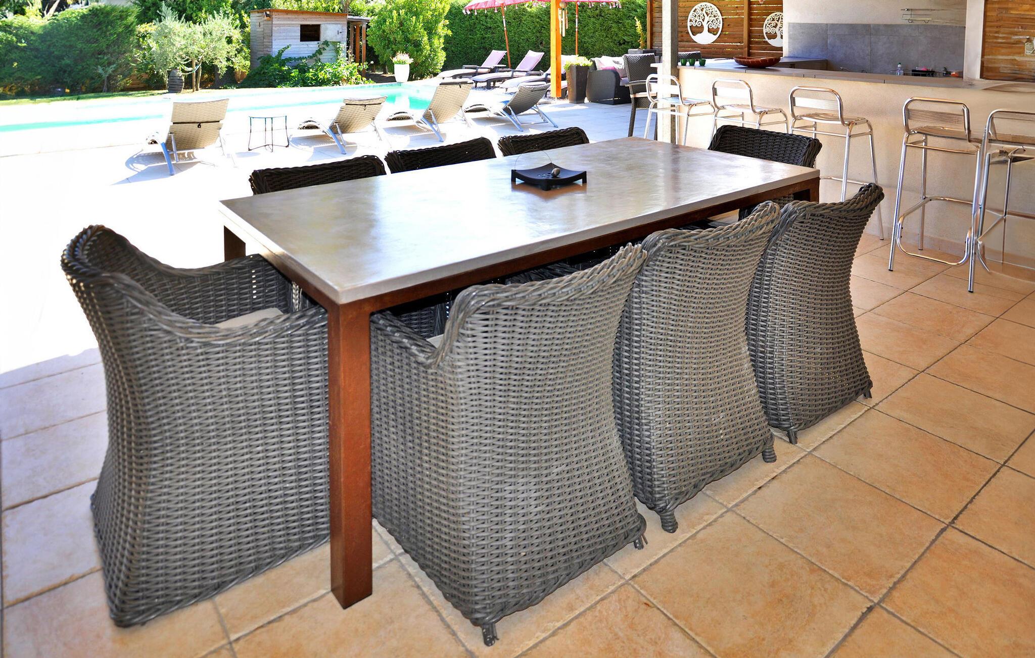 Beliggende i Barbentane, mellem de charmerende steder i Avignon og Saint Rémy de Provence, ligger denne villa for enden af en fredfyldt blind vej og tilbyder naturskøn udsigt over "Montagnette"-bakken. Villaens stueetage har et åbent køkken forbundet til spisestuen og opholdsstuen med aircondition. Et fransk vindue giver adgang til terrassen. Derudover fuldender tre soveværelser stueetagen. Når du stiger op til første sal, finder du loftsværelser med komfortable højder, herunder et soveværelse/legerum med aircondition, møbleret med en sofa, tv, spil og bøger til børn. Udenfor omfatter den lukkede have en overdækket terrasse med et bordtennisbord og en vaskemaskine, sammen med en anden terrasse i skyggen af en pergola. Dette område byder på en grill og en malerisk udsigt over haven og poolen. Den private pool, der måler 10 mx 5 m med en dybde på 1 m 40, er omgivet af liggestole/dækstole. Poolen kan også lukkes med et aftageligt hegn. Sommerkøkkenet giver direkte adgang til poolen og giver bekvemmelighed til udendørs madlavning. Villaen er beliggende i udkanten af landsbyen, i et boligområde, 1 km fra butikkerne. Herfra besøger du Avignon og nyder dens festival i juli, udforske Alpilles: Saint Remy de Provence, Les Baux de Provence og endda opdage Camargue: Arles, Saintes Maries de la Mer. Bemærk venligst, at trappen til første sal er ret stejl, og du kan støde på ejernes kat i haven.
