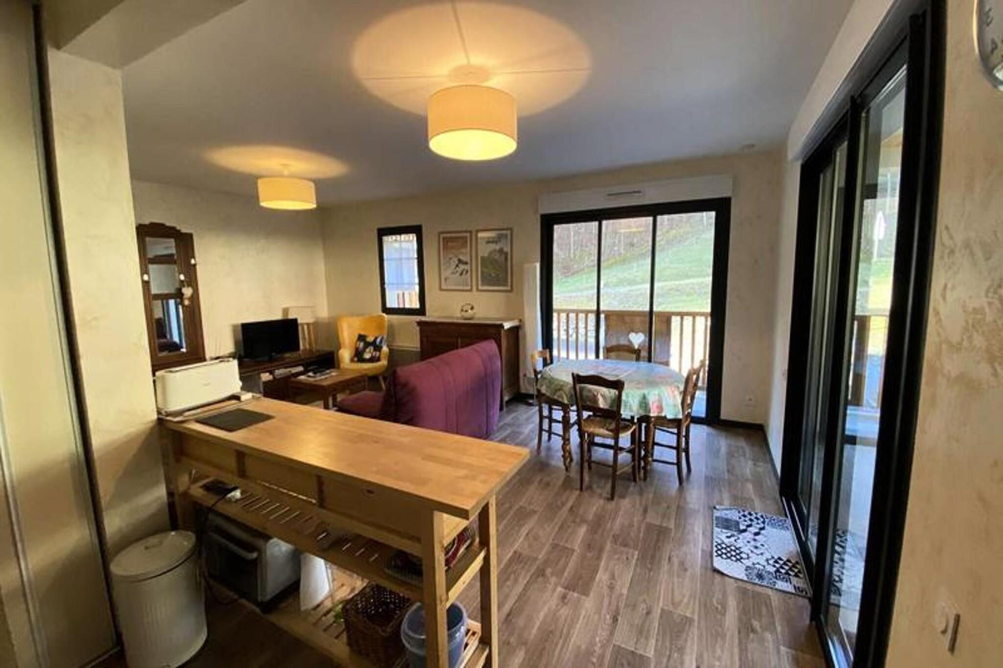 Denne charmerende lejlighed på første sal byder på et dejligt ophold for op til fire gæster, med en sydvendt balkon og overdækket terrasse til afslapning. Ejendommen har to hyggelige soveværelser: det ene med to enkeltsenge (90 cm hver) og det andet med en komfortabel dobbeltseng (160 cm). Et rummeligt opholdsområde med stue og spisestue åbner ud til de udendørs rum, hvilket skaber en perfekt stemning for fritid. Ejendommen er røgfri, kæledyrsfri og tilbyder et skiskab og en sikker garage for ekstra bekvemmelighed. Beliggende 1,2 km fra landsbyens centrum sikrer lejligheden både ro og tilgængelighed. Gæsterne vil nyde letheden ved et skibusstoppested lige ved boligen, der giver problemfri adgang til nærliggende pister og attraktioner. Det omkringliggende område byder på dejlige caféer, lokale markeder og naturskønne steder til udforskning, alt sammen inden for en kort køretur eller afslappet gåtur. Lejligheden har et veludstyret åbent køkken med opvaskemaskine, hvilket gør madlavning til en leg. Et moderne badeværelse med bruser, separat toilet med vaskemaskine og gennemtænkte faciliteter såsom slutrengøring sikrer en behagelig og problemfri oplevelse. Med opvarmning og engangsartikler til rådighed garanterer denne ejendom et hyggeligt og behageligt ophold for alle gæster.