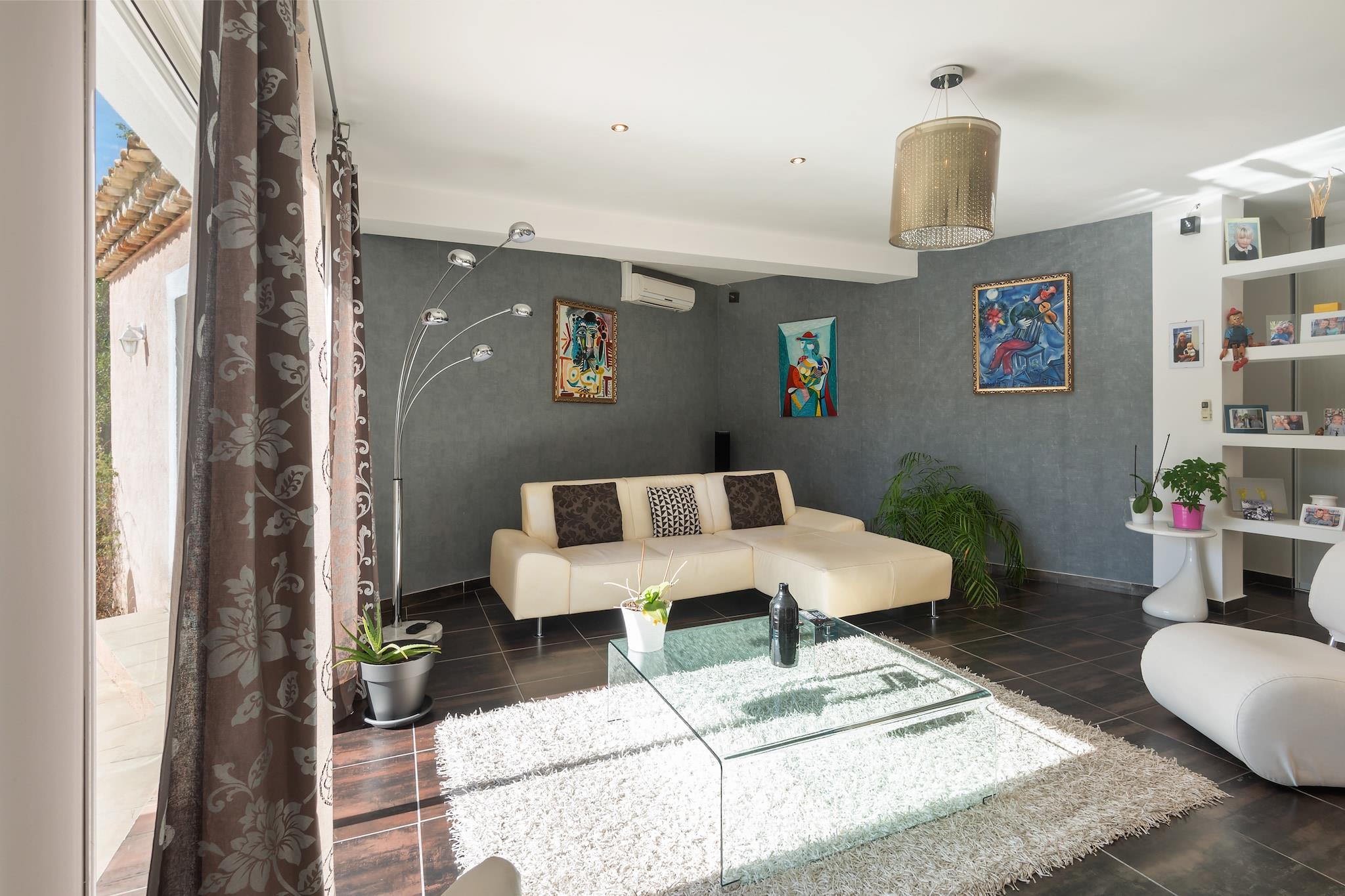 Dette er en villa i Bargemon, Provence med en smuk udsigt over de frodige grønne bakker. Det omfatter en privat swimmingpool, 4 soveværelser, have og terrasse, hvilket gør det ideelt for store familier og grupper. Omgivelserne i Bargemon er smukke. Chancerne er, at du vil møde de rige og berømte her. Det er rart at være ved siden af den tidligere fodboldspiller David Beckham ved bageriet i landsbyen, som har en smuk ejendom nær Bargemon. Du kan også slentre gennem de smukke landsbyer Callas (6 km), Seillans (13 km), Fayence (19 km). Sport kan også nydes i området. Provence Verte har smukke 18-hullers golfbaner, såsom St. Endréol nær La Motte (23 km). For vandsport, gå til den berømte Gorges du Verdon ( 40 km). Denne fritliggende villa ligger kun 2 km fra den gamle, maleriske landsby Bargemon. Her har du en smuk udsigt over de smukke grønne bakker og det blå i din private swimmingpool. Denne villa er fuldt udstyret og har et lyst og behageligt interiør. Om Når du bor i en bolig, kan du være sikker på et unikt sommerhus i ideelle omgivelser til en attraktiv pris. Porteføljen af overnatningssteder består af mere end 40.000 feriehuse i 20 europæiske lande. Interesseret i et weekendophold, en sommer- eller vintersportsferie eller blot en kort pause? Foretrækker du kysten, landskabet eller bjergene? Uanset hvad du foretrækker, er der et -hjem, der opfylder dine behov, fra en hyggelig gîte for to til et slot stort nok til hele familien, fra en lejlighed i hjertet af Rom til en hytte midt i ingenting, fra en simpel træhus til en luksus drømmevilla og fra tæt på hjemmet til den anden side af Europa. Et -hjem giver dig friheden til at nyde morgenmaden i din pyjamas eller fortsætte en god samtale ud i morgentimerne uden at skulle bekymre dig om barens lukketid. Tilbered gourmetmåltider med friske lokale råvarer i dit eget køkken og udnyt