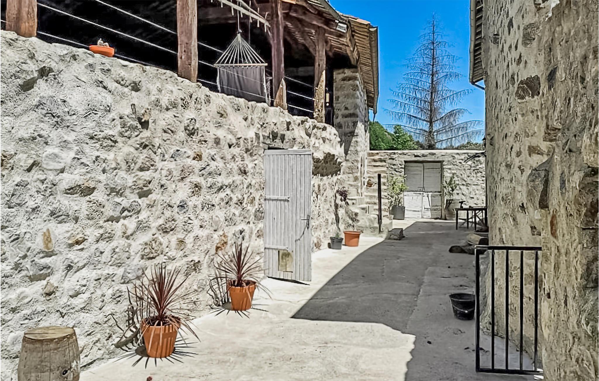 Der bliver rig mulighed for at bade, for I kan både se frem til pool og en lille privat strand ved bredden af ??den vilde Ardèche-flod. Imens kan I nyde udsigten til den lille romerske sø og de skovklædte bjerge. I får også glæde af en stor overdækket træterrasse med bar, sommerkøkken og solterrasser, hvor I kan tilbringe de skønne sommeraftener.