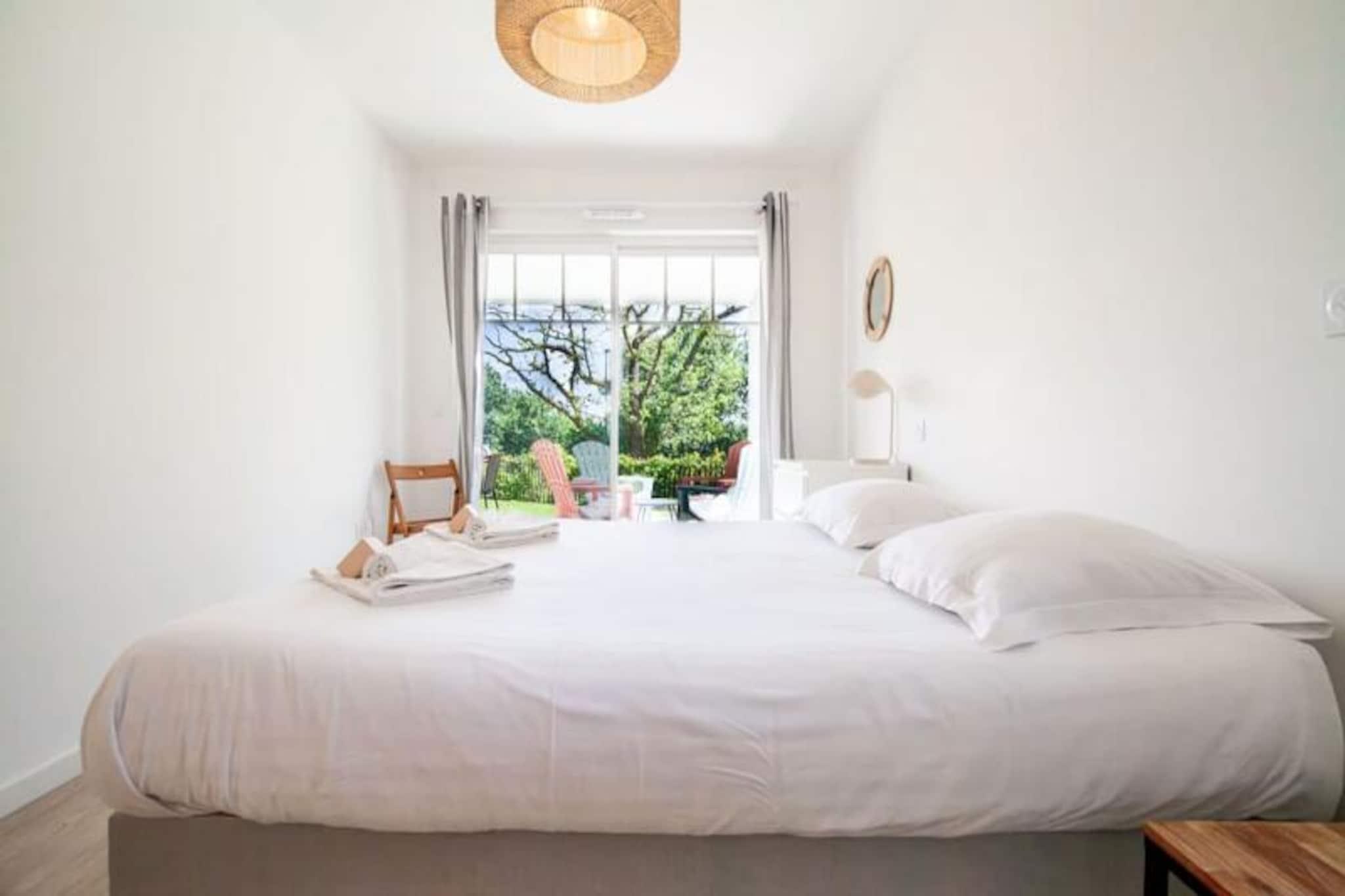 I den fredfyldte landsby Bassussarry tilbyder denne charmerende lejlighed på 65 m² i stueetagen et roligt tilflugtssted for op til fem gæster. Omgivet af frodige grønne områder og kun få skridt fra landsbyens centrum, er det de perfekte rammer for en afslappende ferie med familie eller venner. Uanset om du søger en fredelig flugt eller en aktiv ferie, tilbyder denne ejendom den ideelle balance mellem komfort og bekvemmelighed. Træd indenfor og oplev et lyst og indbydende opholdsrum, der er omhyggeligt designet til at få dig til at føle dig hjemme. Lejligheden har to hyggelige soveværelser: et med en blød dobbeltseng og et andet med tre enkeltsenge, ideelt for familier eller grupper. Det fuldt udstyrede køkken inviterer dig til at tilberede lækre måltider, mens den rummelige stue og spisestue er perfekte til at slappe af efter en dag med udforskning. Moderne faciliteter såsom Wi-Fi, et fladskærms-tv og børnespil sikrer et behageligt og behageligt ophold for alle aldre. Højdepunktet på ejendommen er dens store udendørsområde, herunder en 20 m² terrasse og en privat have på 119 m², hvor du kan sole dig eller nyde udendørs spisning. Denne lejlighed ligger i nærheden af ??Bassussarry golfbane og kun en kort køretur fra de fantastiske strande ved Atlanterhavskysten, og er en indgangsport til det bedste af den baskiske region. Udforsk den charmerende landsbymidte, kun tre minutters gang væk, hvor du finder dejlige butikker og restauranter, der tilbyder lokale specialiteter. For friluftsentusiaster tilbyder den nærliggende golfbane og naturskønne stier uendelige muligheder for eventyr. Biarritz, med sin pulserende kultur og betagende kystlinje, ligger kun 15 minutters kørsel væk, hvilket gør denne ejendom til en fremragende base for at udforske området. Med sin blanding af moderne komfort, naturlig skønhed og nærhed til vigtige attraktioner lover denne lejlighed et uforglemmeligt ophold i hjertet af det franske Baskerland. Lad den fredelige atmosfære og den exceptionelle beliggenhed inspirere din næste ferie.