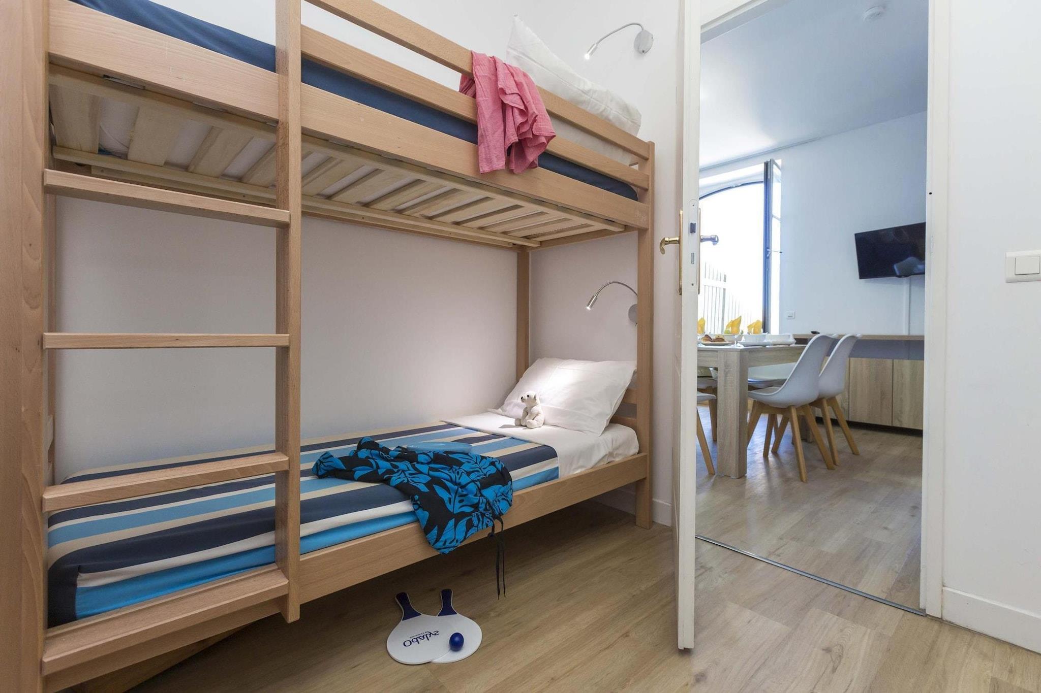 Kystkomfort med familie og pelsede venner i tankerne Gemt i den rolige og grønne Valentin Plage-residens tilbyder denne charmerende lejlighed i Batz-sur-Mer et fredeligt udsnit af den berømte Côte Sauvage. Det er omhyggeligt indrettet med en dobbelt sovesofa, en hyggelig mezzanin med to dobbeltsenge og en sjov køjeseng og er komfortabelt vært for familier eller grupper op til otte. Det fuldt udstyrede tekøkken og to badeværelser sikrer bekvemmelighed, mens den private terrasse er perfekt til solrig morgenmad eller stjerneklare vintoaster. Og ja - dine kæledyr er mere end velkomne her! Få skridt fra Sand, Sea & Scenic Walks Blot en kort gåtur fra La Baule-bugten bringer dit ophold dig minutter fra gyldne strande, forrevne kyststier og pinjeskyggede stier, der er ideelle til morgenvandringer - med eller uden din hvalp. Boligens 2 hektar store grønne område indbyder til picnic, leg og fredelig afslapning. I weekenden finder lokale sælgere og pop-up-kæledyrsbegivenheder ofte sted på nærliggende strandmarkeder, hvor kæledyr i snor er hjerteligt velkomne. For ekstra bekvemmelighed er der gratis parkering på stedet på den fælles grund. Spis som en lokal - Hundeskål valgfri! Inden for 10 minutters gang finder du charmerende spisesteder som La Roche Mathieu og Le Jardin Secret, hvoraf mange tilbyder udendørs, hundevenlig siddepladser. Snup pandekager og cider under stjernerne, eller udforsk Batz's skaldyrperler, alt imens din hvalp ligger ved siden af dig. Gå ikke glip af den kæledyrsvenlige café i nærheden af Saint-Nudec, hvor hunde bliver behandlet med gratis kiks og mavegnidninger!