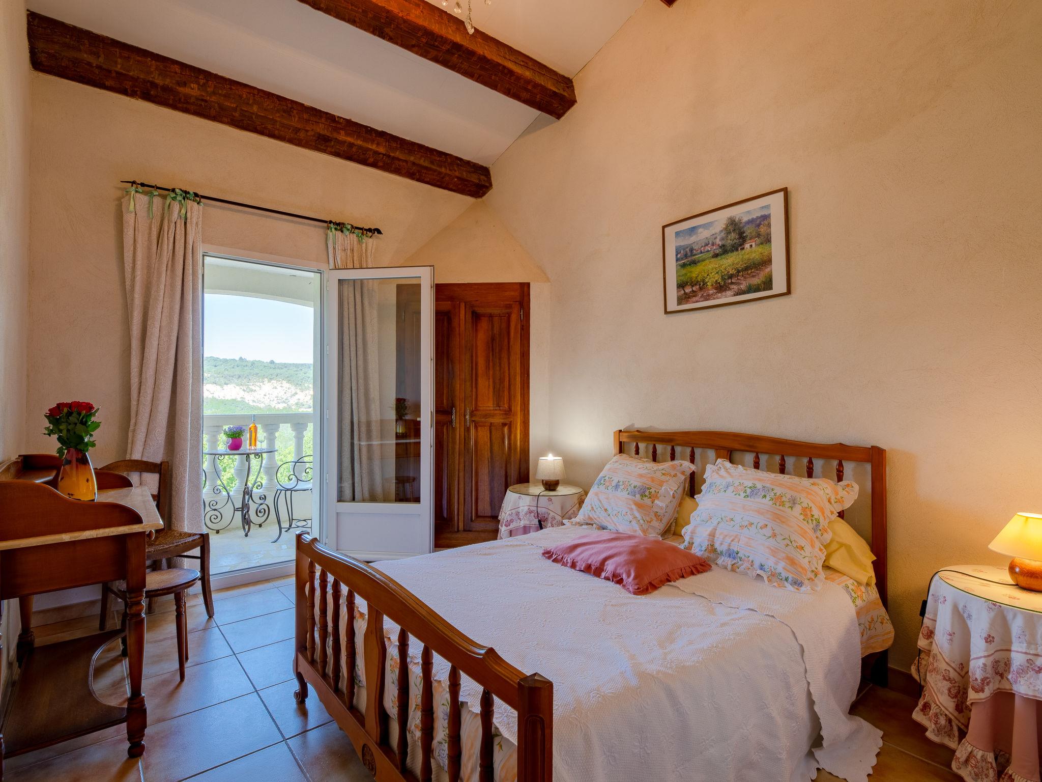 Rustic country house "Campagne les Oliviers", surrounded by trees and fields. 4 apartments in the property. In the hamlet Font Castellan 2.5 km from the centre of Bauduen, 17 km from the centre of Aups, in a secluded, sunny, elevated position on a slope, 200 m from the lake. For shared use: large, well-kept terraced garden, 3'000 m2 (not fenced) with plants and trees, meadow. In the house: washing machine (for shared use). Steep motor access to the house (ramp). Parking on the premises. Shop 2 km, bus stop 14 km, swimming bay 800 m, lake Lac de Sainte Croix 200 m. Walking paths from the house 50 m. Nearby attractions: Moustier 30 km. Hiking paths: Gorges du Verdon 20 km. Please note: Additional accommodations can be booked.