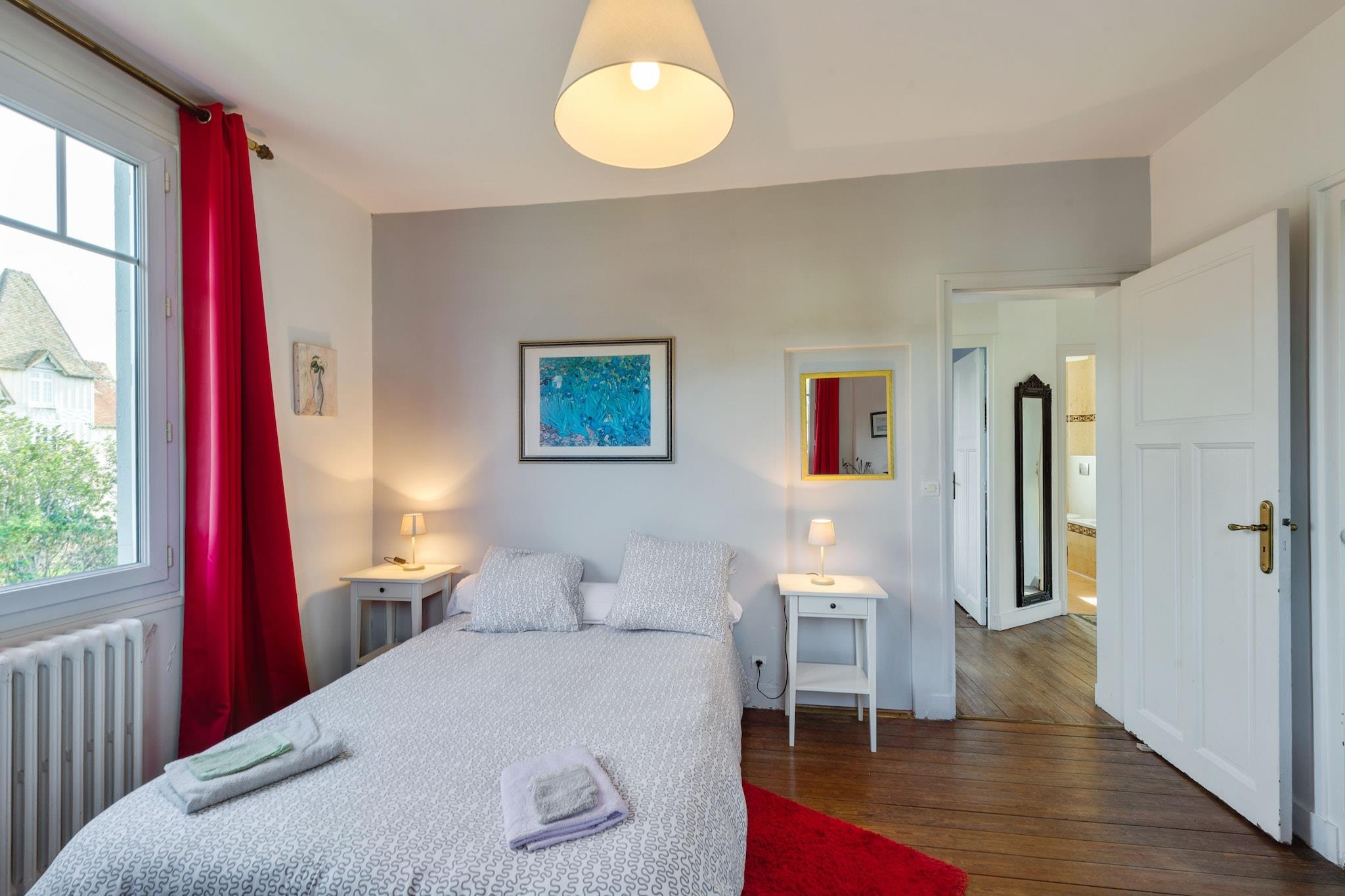 Smukt hus i centrum af Bayeux, overfor det berømte Tapisserie. Denne rummelige indkvartering er blevet fuldstændig renoveret i 2012 og tilbyder store værelser og tre badeværelser. Alle værelser har komfortable senge og masser af naturligt lys. Foruden gården har denne ejendom en gårdhave med en have, terrasse og parkering. Alle faciliteter i det autentiske centrum er inden for gåafstand. Boutiques, restauranter og gamle facader sætter scenen. Bayeux har udover sit charmerende udseende, er et antal turistattraktioner som det berømte tæppe og den smukke katedral, men også andre museer og monumenter værd at besøge. Fra ud af Bayeux kan du nemt besøge Caen og Mont Saint Michel. Du finder brochurer med ideer til udflugter og aktiviteter i stuen og kun 500m væk fra dit ophold finder du turistkontoret. Kort sagt: En komfortabel, rummelig moderniseret ejendom med en ideel beliggenhed.