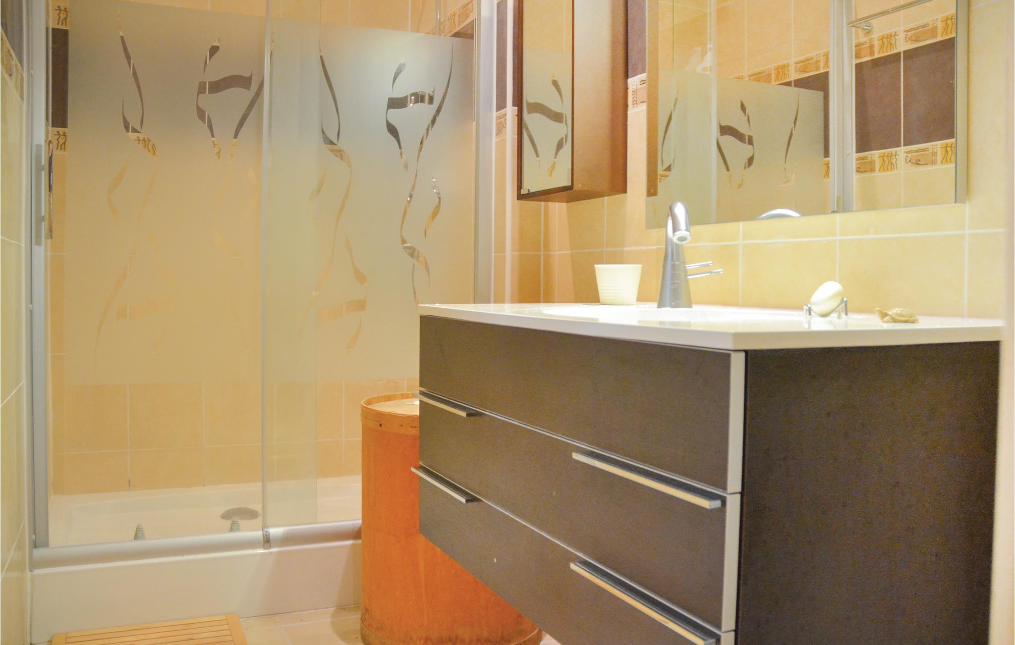 Badeværelse (nr. 1) - Varmt og koldt vand. Bruser og badekar