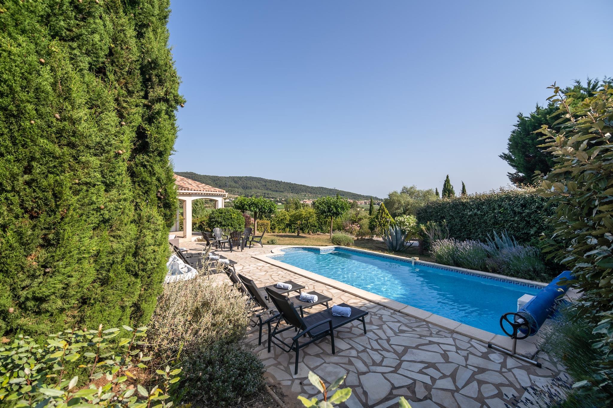 Elegant familieferiested med privat pool og boblebad Træd ind i luksus i denne smukt vedligeholdte 3-værelses villa i Beaufort, ideel til familier eller små grupper på op til 6 gæster. Den private opvarmede swimmingpool og det beroligende boblebad tilbyder den perfekte tilflugtssted for at slappe af og slappe af. Rummelige opholds- og spiseområder blander sig problemfrit med et moderne åbent køkken, mens aircondition sikrer komfort under hele dit ophold. Charmerende landsby beliggenhed nær søer og strande Villaen ligger kun 450 meter fra lokale restauranter og tilbyder nem adgang til dejlige madoplevelser med regionale retter. Den lokale købmand er bekvemt placeret 2 km væk til dine daglige fornødenheder. Naturelskere kan tilbringe en dag ved den nærliggende sø, kun 3 km væk, og nyde rolige gåture eller picnics ved vandet. For mere eventyr, er sandstrandene i Béziers og Narbonne inden for en kort køretur, perfekt til dagsture fyldt med sol og hav. Slap af og genoplad i din private oase Start din morgen med morgenmad i den møblerede have, og nyd den friske luft og rolige omgivelser. Aftener er perfekte til at slappe af på terrassen med et glas vin eller en god bog. Villaen inkluderer parkering for din bekvemmelighed, hvilket sikrer et problemfrit ophold. Indtjekning er fleksibel mellem kl. 16.00 og 23.00, og udtjekning er mellem kl. 08.00 og 09.00, designet til at passe til dine rejseplaner.