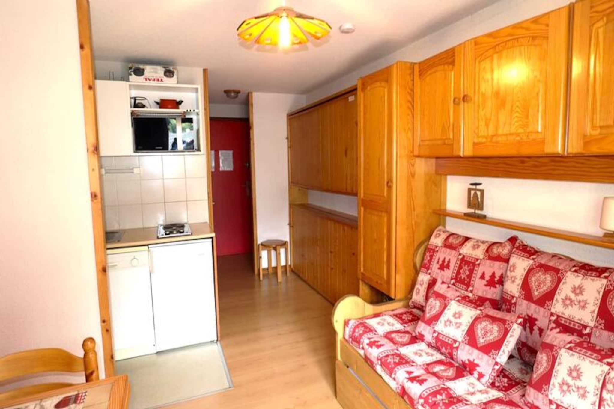 I hjertet af den maleriske landsby Arèches-Beaufort tilbyder dette hyggelige alpine tilflugtssted den perfekte blanding af charme og bekvemmelighed til din næste bjergferie. Med sin sydvendte balkon med panoramaudsigt over den majestætiske Savoie Mont-Blanc-region er denne dejlige lejlighed med et soveværelse ideel til par eller små familier, der søger en fredelig flugt i de franske alper. Kun 100 meter fra skiløjperne og lokale butikker kan du nyde ubesværet adgang til både vintersport og landsbyliv. Lejligheden, der er bedømt med 2 stjerner, er omhyggeligt designet til komfort og funktionalitet. Den er 24 m² stor og har en lys stue med tv, et veludstyret tekøkken med opvaskemaskine og et charmerende soveværelse med en hyggelig dobbeltseng. Entréhallen har udtrækskøjesenge, perfekt til børn eller ekstra gæster. Et moderne badeværelse med bruser og separat toilet bidrager til bekvemmeligheden. I sommermånederne kan gæsterne benytte sig af den fælles swimmingpool i boligen, hvilket gør den til en destination året rundt. Arèches-Beaufort er et paradis for friluftsentusiaster. Om vinteren henvender de nærliggende pister sig til skiløbere på alle niveauer, mens sommeren forvandler området til et paradis for vandrere og cyklister. Selve landsbyen er fyldt med autentisk alpin charme og tilbyder lokale butikker, restauranter og kulturelle oplevelser. Der er parkering i ejendommen, og yderligere tjenester såsom leje af linned og slutrengøring sikrer et problemfrit ophold. Uanset om du søger spændende eventyr eller rolige øjeblikke omgivet af betagende natur, lover denne charmerende lejlighed i Arèches-Beaufort en uforglemmelig alpin oplevelse.