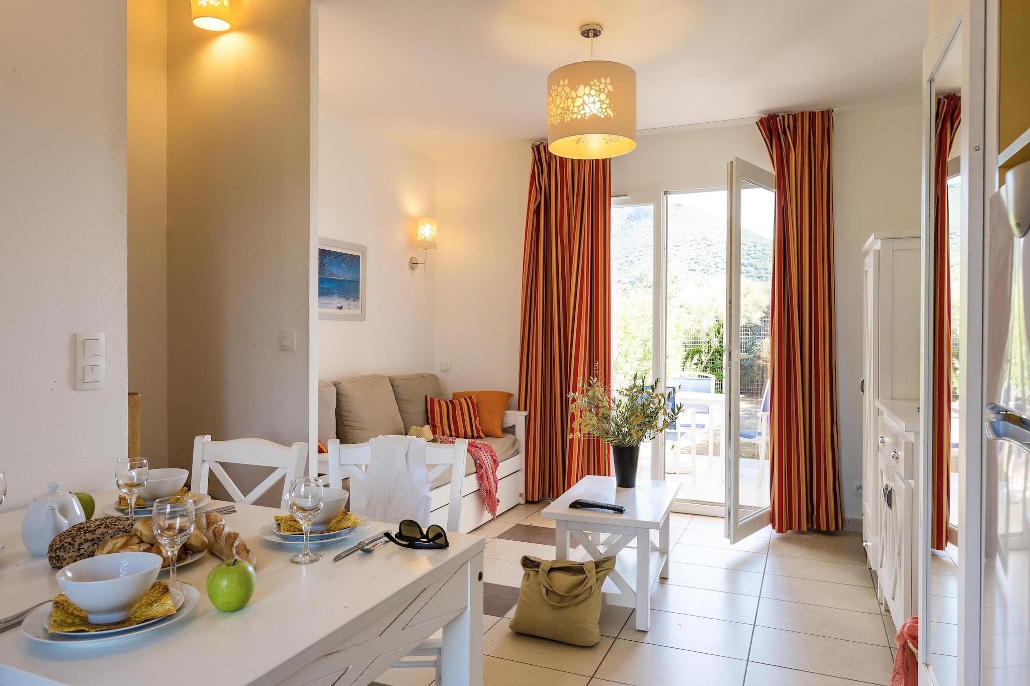 Charmerende kystferiehuse Beliggende i den fredfyldte skønhed i Korsikas Lozari-område tilbyder denne indbydende feriepark stilfulde, velindrettede hjem til 4 til 8 gæster. Hvert dobbelthus er gennemtænkt designet med aircondition for komfort og en privat møbleret terrasse til udendørs spisning eller afslapning. Lyse opholdsrum, komfortable soveværelser og fuldt udstyrede tekøkkener gør disse hjem ideelle til både korte ferier og længere ophold. Afslapning møder eventyr Tilbring dine dage med at slappe af ved den fælles opvarmede pool, åben fra maj til september, eller udforsk de uberørte strande i Lozari, kun få minutter væk. Uanset om du vælger det hyggelige 4-personers hjem, den rummelige 6-personers mulighed eller det større 8-personers retreat med en mezzanin, vil du nyde et indbydende rum til at genoplade efter en dag med udforskning. Parkens indretning i små klynger sikrer en fredelig atmosfære og masser af privatliv. Perfekt placeret til opdagelse Ejendommen ligger i Belgodère og tilbyder nem adgang til øens fantastiske landskaber, fra sandstrande til naturskønne vandrestier. I nærheden finder du charmerende caféer, fiskerestauranter og lokale markeder, der serverer friske korsikanske specialiteter. Med sin blanding af komfort, bekvemmelighed og middelhavscharme er dette den perfekte base for en afslappende, solbeskinnet korsikansk flugt - uden at gå på kompromis med stil eller beliggenhed.