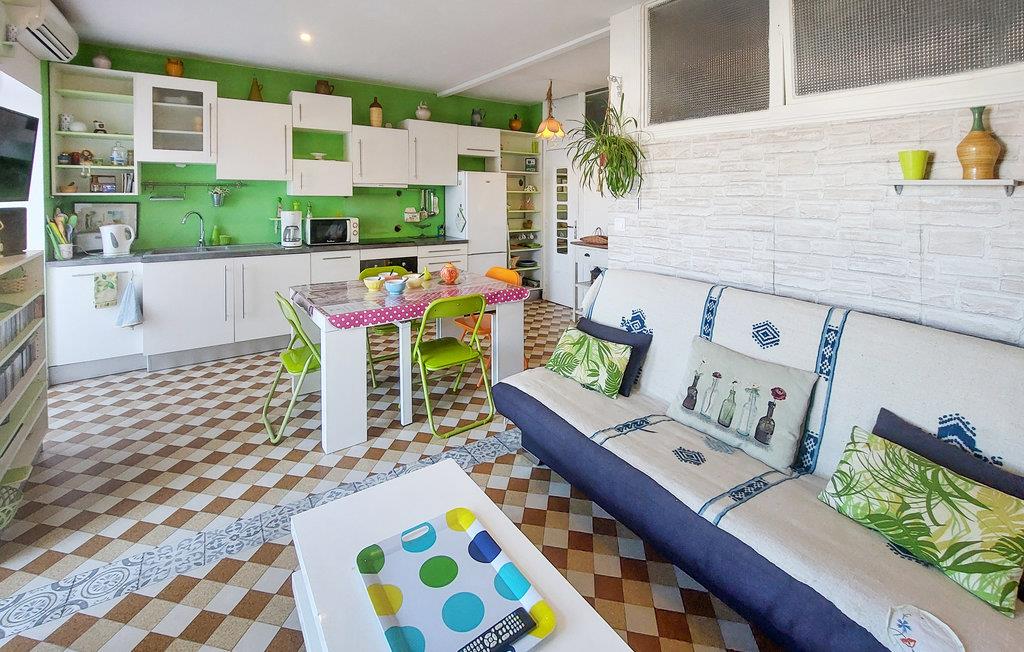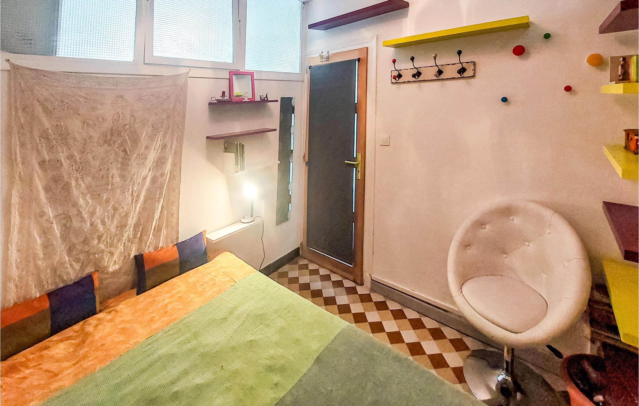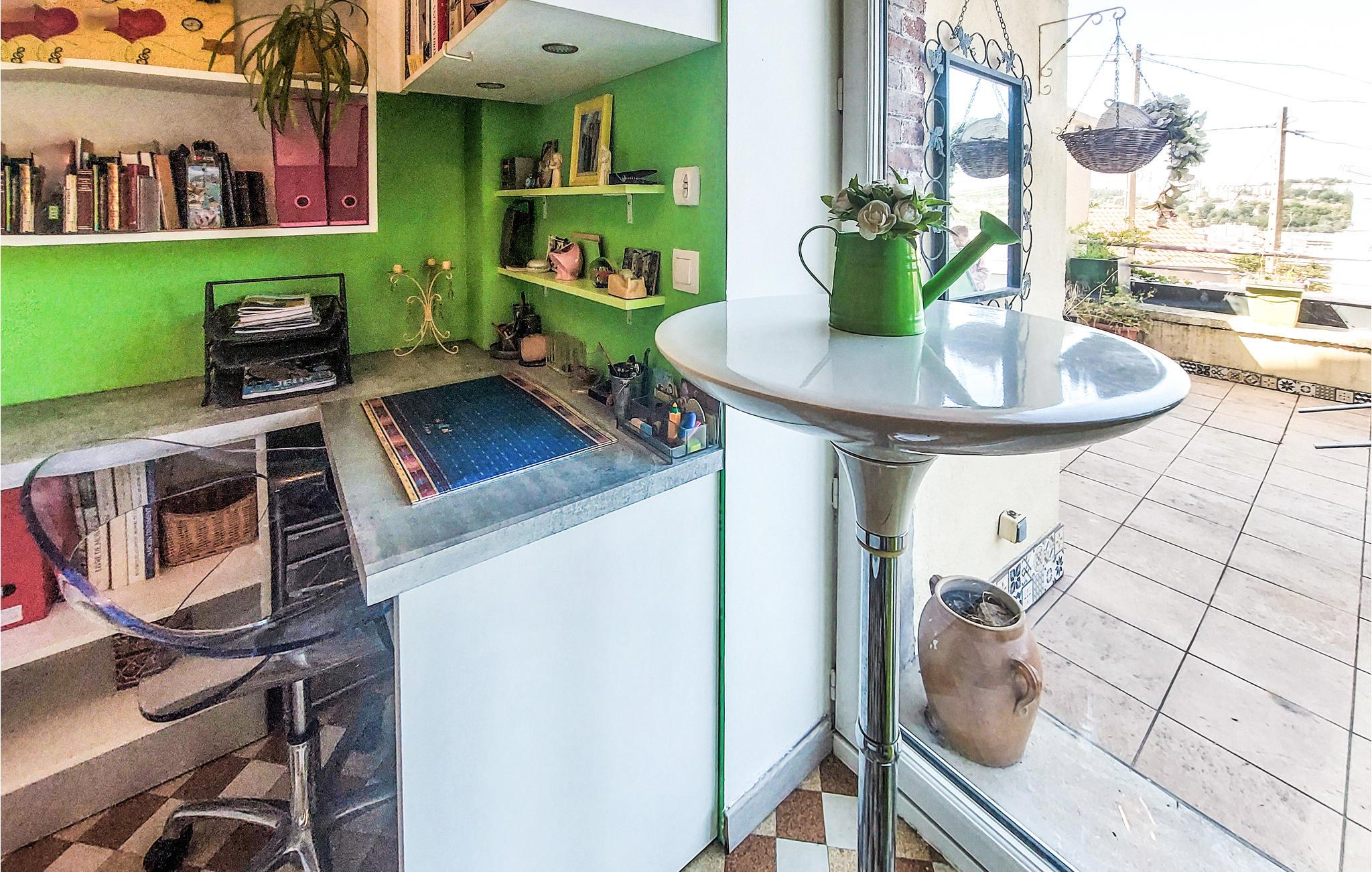I et grønt og roligt kvarter byder denne farverige ferielejlighed med stor terrasse jer velkommen.
