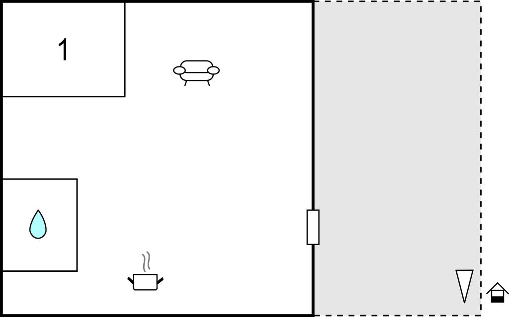 Opholdsstue 20m2 - 2 Sovepladser. (Sofa, madras eller lignende).